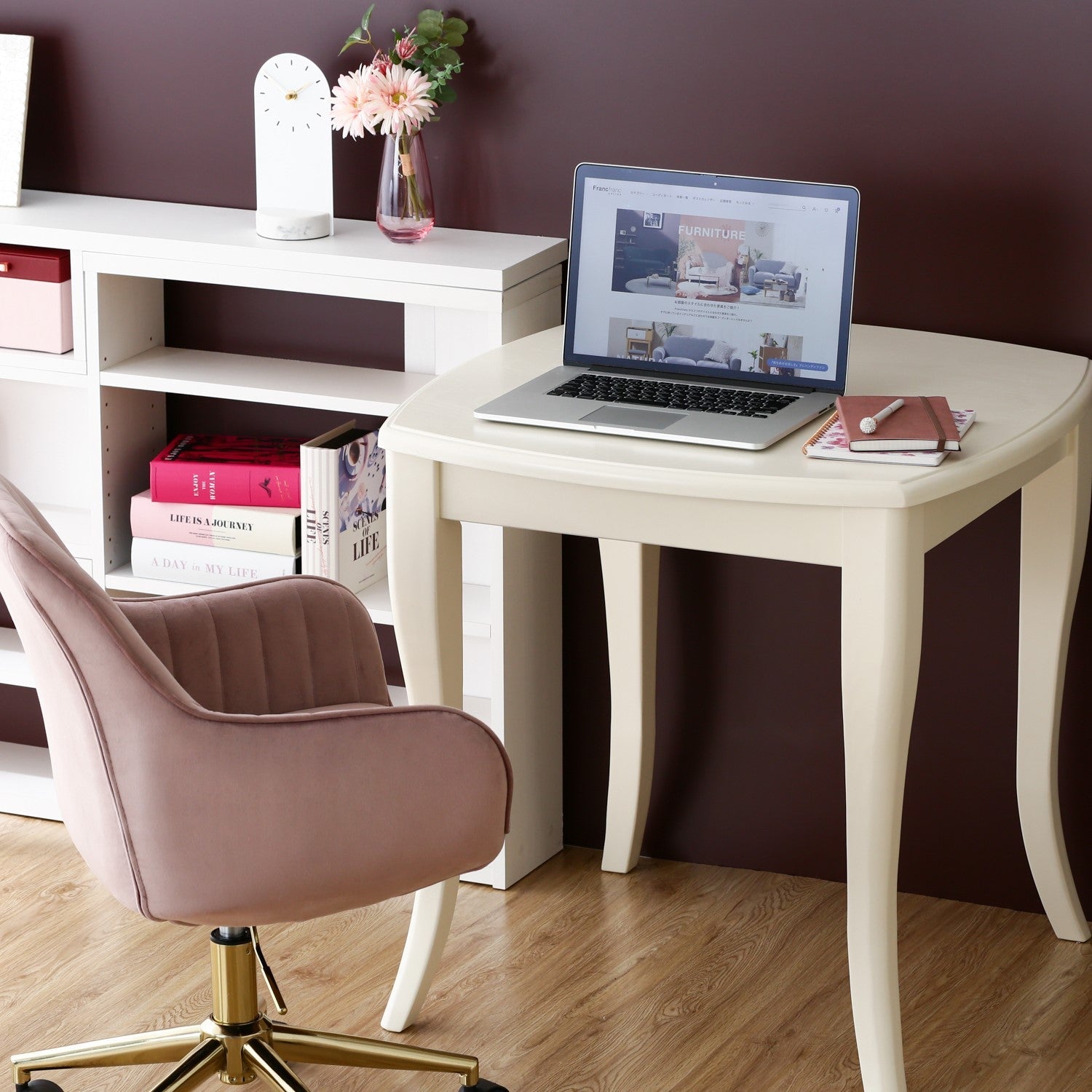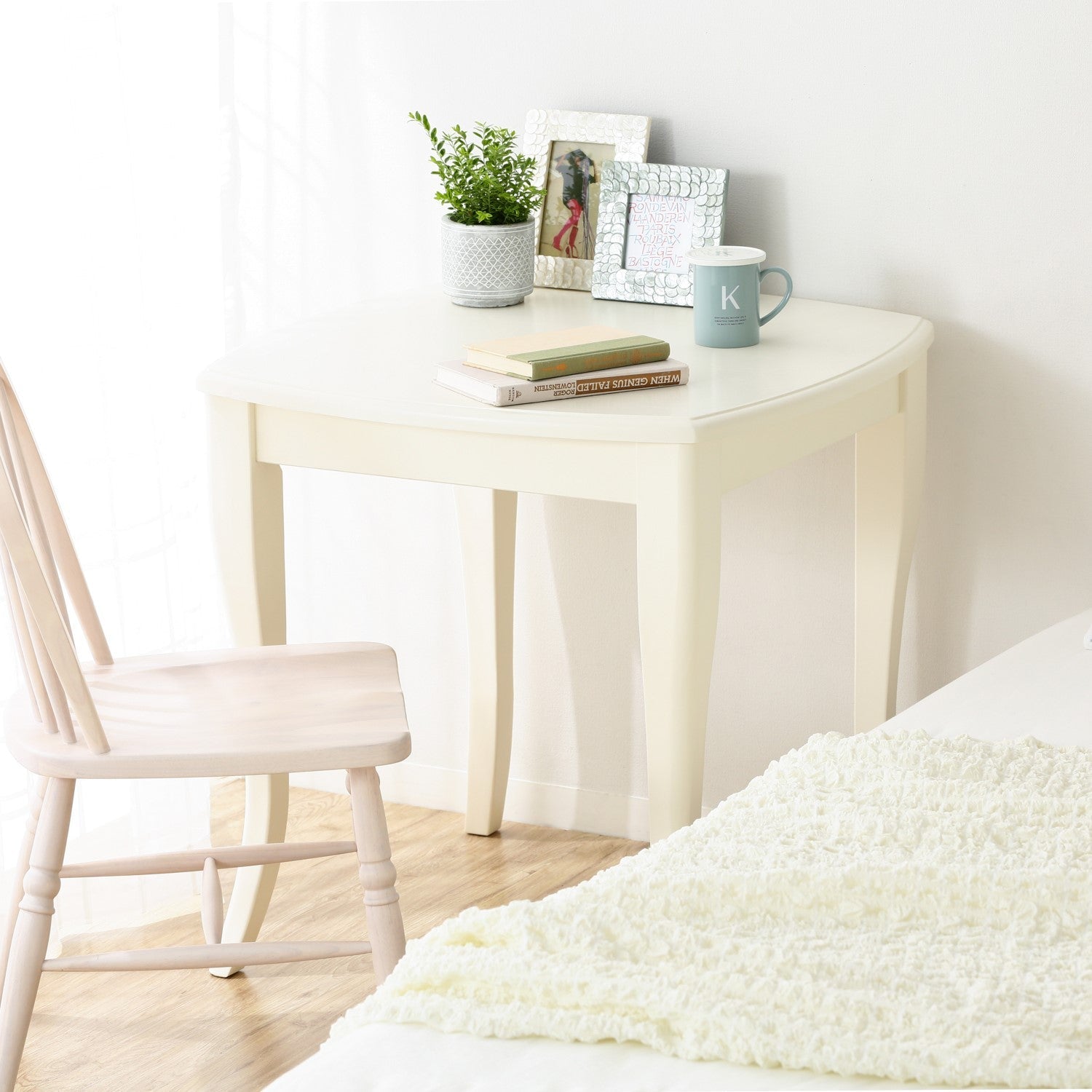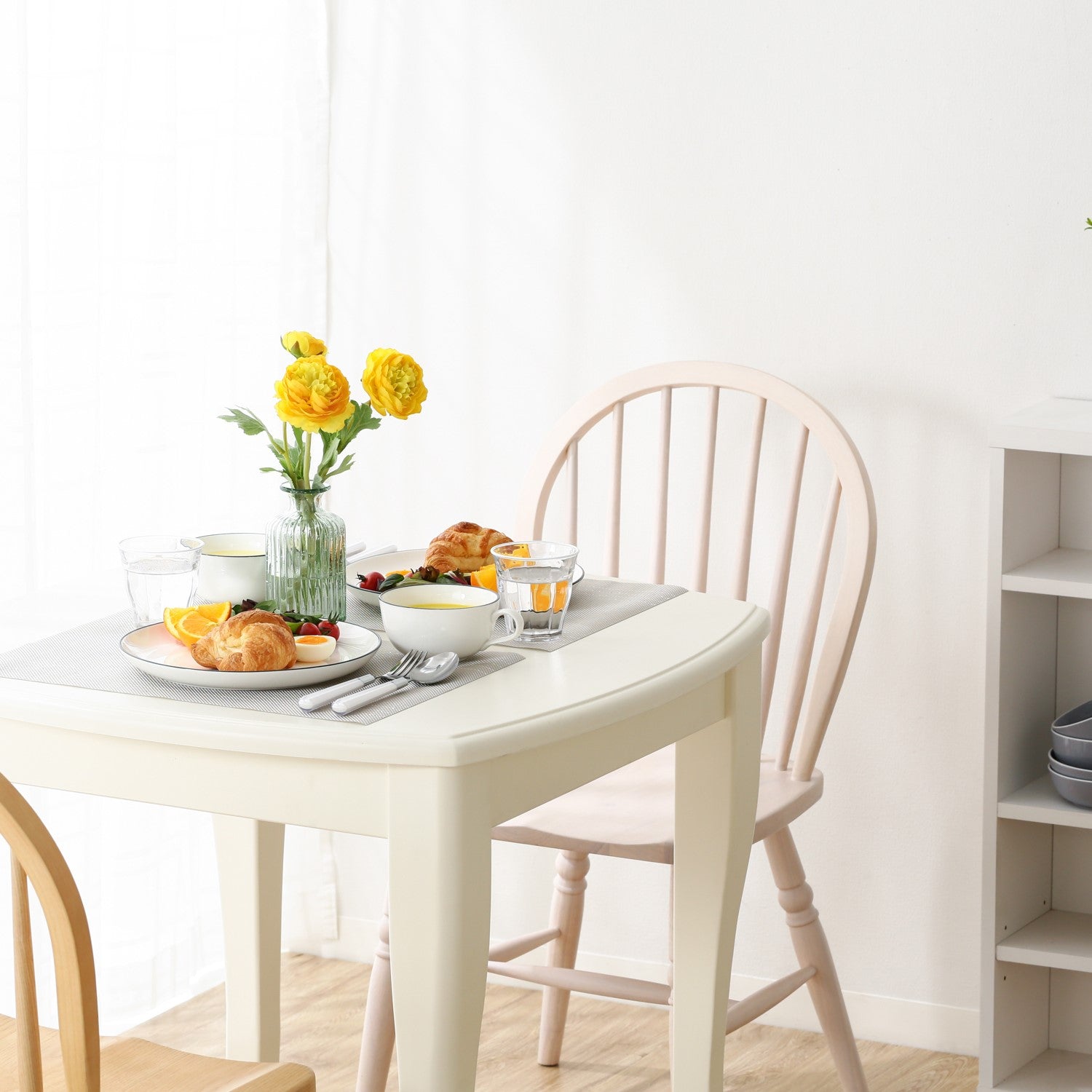 一人暮らし女性にぴったりなフェミニンデザインのダイニングテーブルです。コンパクトサイズなので、1Rや1DKなど1人暮らしのお部屋に丁度良いサイズ。繊細な雰囲気を持たせる、細くしなやかな曲線の脚部は、猫脚ラインで女性らしくクラシカルなデザイン。天板表面の最終仕上げはアクリル樹脂塗装ですが、下地にUV塗装を施すことにより、塗膜の強度が非常に高く、耐摩耗性、耐薬品性、耐溶剤性、耐熱性などにとても優れていて、汚れも拭き取りやすいのが特徴です。