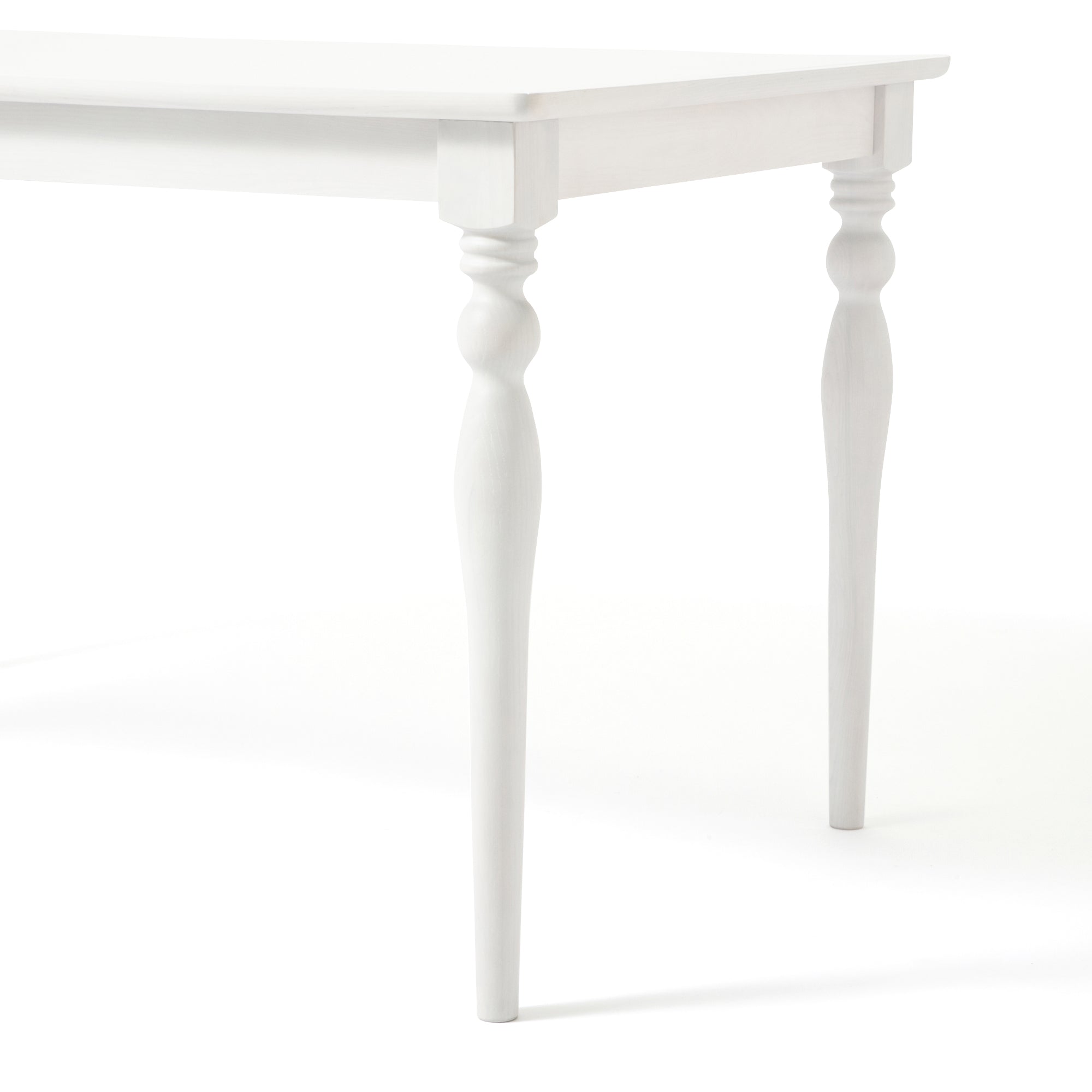 透き通ったハープの音色をイメージした、エレガントなダイニングテーブルです。 洗練されたデザインはそのまま、今までの少しピンク味のあるホワイトから、よりお部屋に馴染みやすいホワイトにリニューアルしました。 目を奪われる曲線美 脚部には精密な旋盤加工を駆使し、品格漂う個性的な曲線を表現しました。 都会的なモダンなお部屋とも、上品なクラシックなお部屋とも相性がよく、コーディネートしやすいデザインです。 心地よい木のぬくもり 女の子の憧れを形にした、エレガントな白いダイニングテーブル。 天板にはアッシュ材の突板をランダムに貼り分け、まるで無垢板を使用したような仕上がりに。木口は無垢材で縁取りをして木材の温かみを表現しました。 脚部と幕板には木目の綺麗なホワイトアッシュ材を使用。あえて木目を見せる仕上げにすることで木本来の素材感が楽しめます。 アジャスター機能搭載 脚部裏には高さが調整できるアジャスターを装着しています。 凹凸のあるフローリングで使用しても、テーブルの下にラグを敷いたりしても、がたつきなく快適にお食事を楽しむことが可能です。