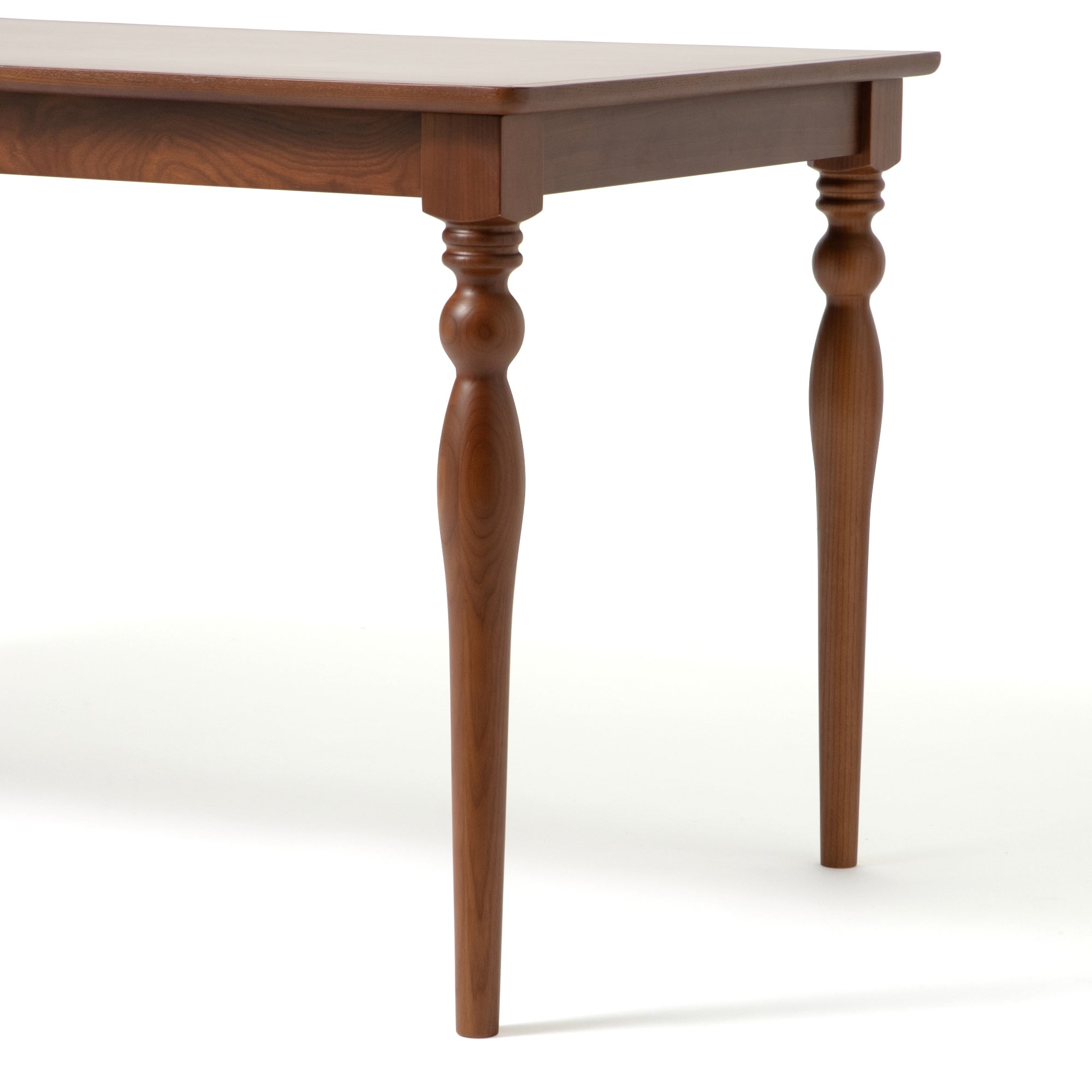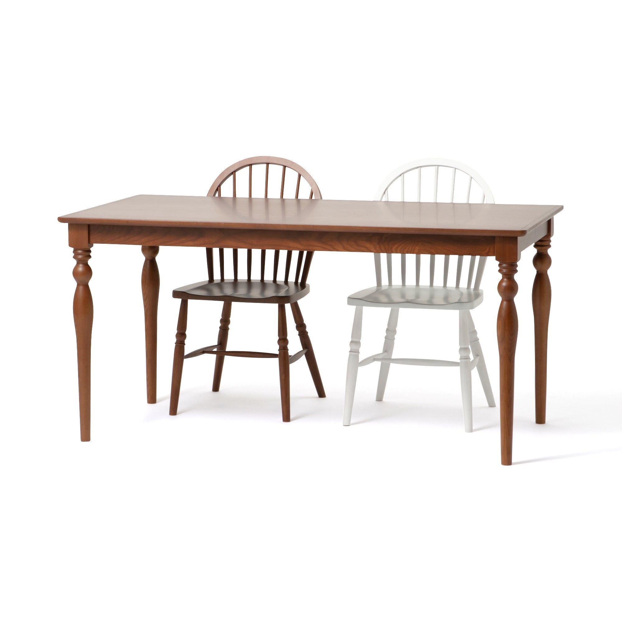 透き通ったハープの音色をイメージした、エレガントなダイニングテーブルです。 トレンドカラーであるビビットなカラーのテーブルコーディネートとも相性がいいブラウンカラーが仲間入りしました。 奥行きを感じるダークな色ですが、椅子や小物で彩りを加えて大人可愛いコーディネートを組むのもおすすめです。 目を奪われる曲線美 脚部には精密な旋盤加工を駆使し、品格漂う個性的な曲線を表現しました。 都会的なモダンなお部屋とも、上品なクラシックなお部屋とも相性がよく、コーディネートしやすいデザインです。 心地よい木のぬくもり 奥行きを感じるダークなブラウンカラーのダイニングテーブル。 天板にはアッシュ材の突板をランダムに貼り分け、まるで無垢板を使用したような仕上がりに。木口は無垢材で縁取りをして木材の温かみを表現しました。 脚部と幕板には木目の綺麗なアッシュ材を使用。あえて木目を見せる仕上げにすることで木本来の素材感が楽しめます。 アジャスター機能搭載 脚部裏には高さが調整できるアジャスターを装着しています。 凹凸のあるフローリングで使用しても、テーブルの下にラグを敷いたりしても、がたつきなく快適にお食事を楽しむことが可能です。