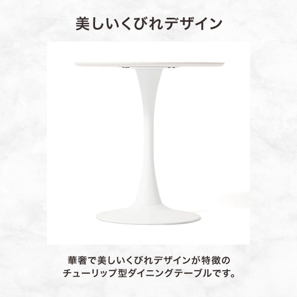 2~4人でご使用いただける、マットな質感のシンプルなチューリップ型のダイニングテーブルです。どんなお部屋・店舗の内装にも合わせやすく、様々なデザインの食器と合わせてお使いいただけます。マーレシリーズと同色のため、リビング・ダイニングのトータルコーディネートが叶います。美しいくびれのあるデザインと彩りある華やかなダイニングシーンをイメージして、「デリカ(delicat/フランス語)=華奢な、優美な(delica/英語)=総菜」と名付けました。直径70cmと80cmの2サイズをご用意。お部屋の広さや用途に合わせてお選びいただけます。