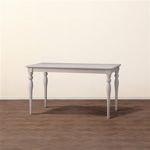 透き通ったハープの音色をイメージした、エレガントなダイニングテーブルです。フェミニンなエッセンスを取り入れながらもガーリーになりすぎず、洗練された大人の女性の暮らしにふさわしいアイテムに仕上げました。目を奪われる曲線美脚部には精密な旋盤加工を駆使し、品格漂う個性的な曲線を表現しました。都会的なモダンなお部屋とも、女性らしいクラシックなお部屋とも相性がよく、コーディネートしやすいデザインです。心地よい木のぬくもり女の子の憧れを形にした、エレガントな白いダイニングテーブル。天板にはアッシュ材の突板をランダムに貼り分け、まるで無垢板を使用したような仕上がりに。木口は無垢材で縁取りをして木材の温かみを表現しました。脚部と幕板には木目の綺麗な北米産のホワイトアッシュを使用しています。用途に適した素材を選択することで、木のぬくもりをたっぷりと味わえる仕上がりになりました。アジャスター機能搭載脚部裏には高さが調整できるアジャスターを装着しています。凹凸のあるフローリングで使用しても、テーブルの下にラグを敷いたりしても、がたつきなく快適にお食事を楽しむことが可能です。