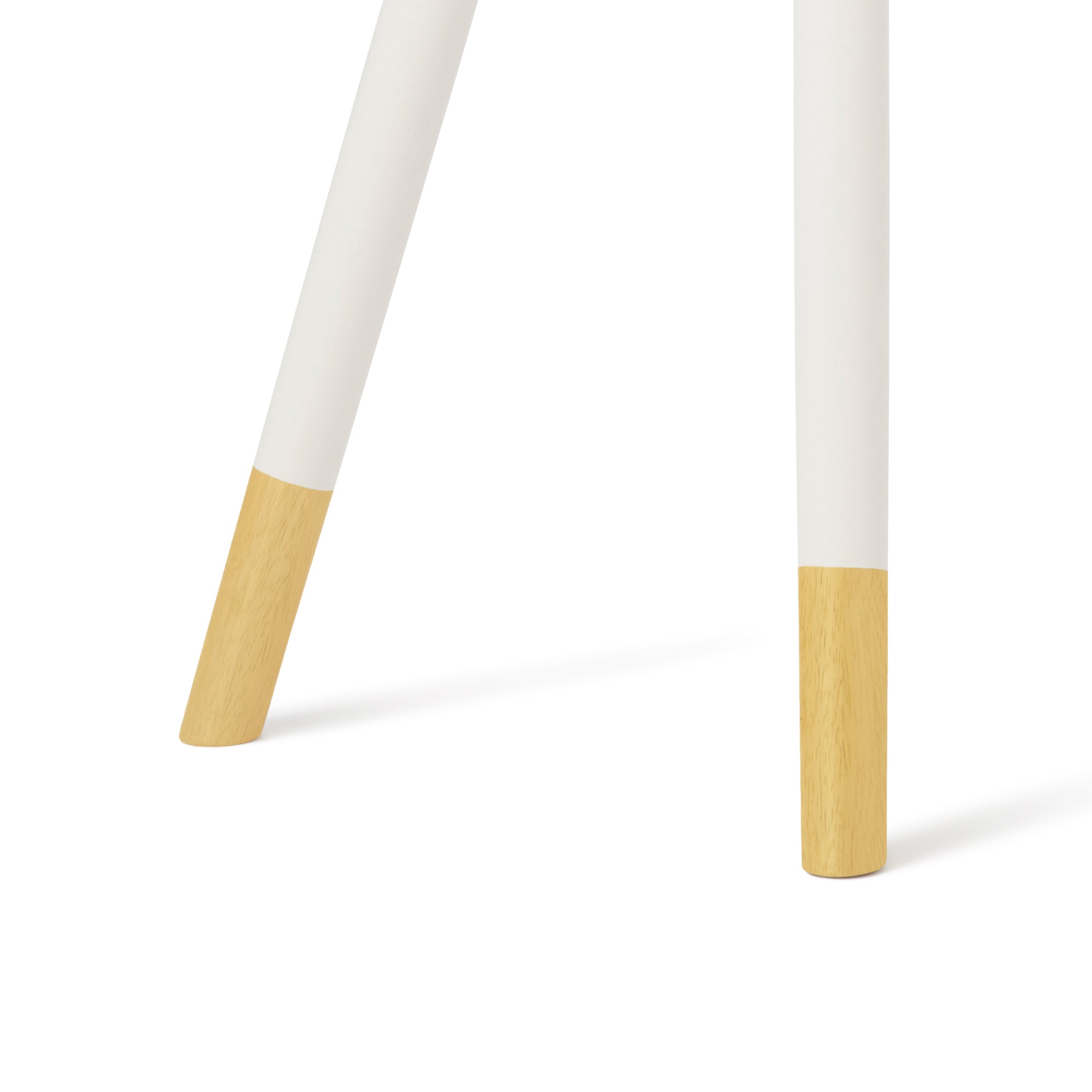 ソファにぴったり合う高さで、ソファでの時間が長く快適になるフェミニンなカフェテーブルです。高さはありますが、あえて小棚等は設けずひざ下空間を広くとり、ゆったりすっきりご使用いただけます。脚部に丸みをつけ柔らかい印象に仕上げました。先端はナチュラルウッドカラーで、インテリアに馴染みやすいデザインです。