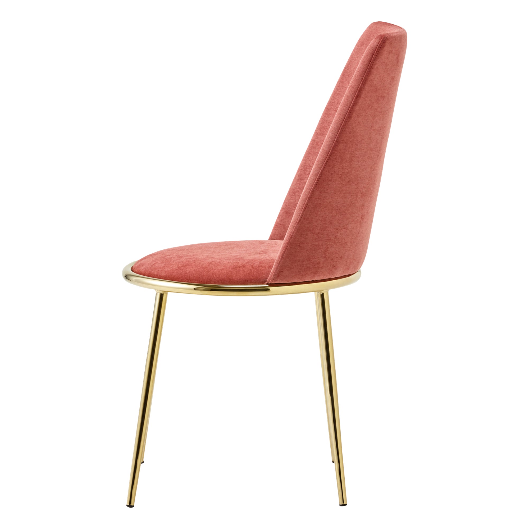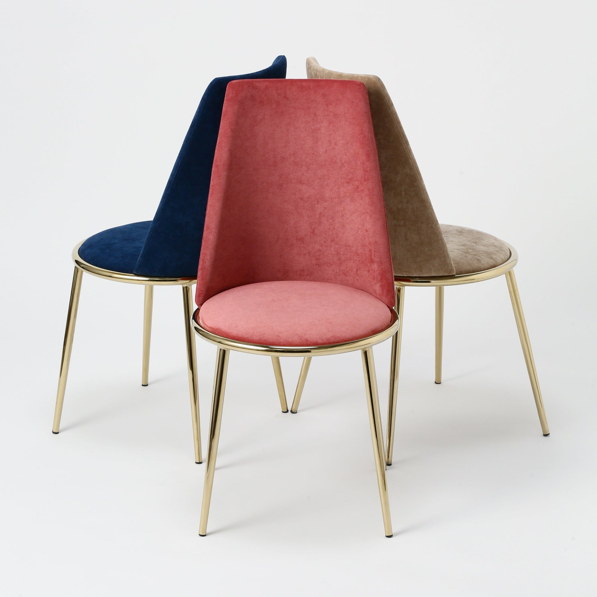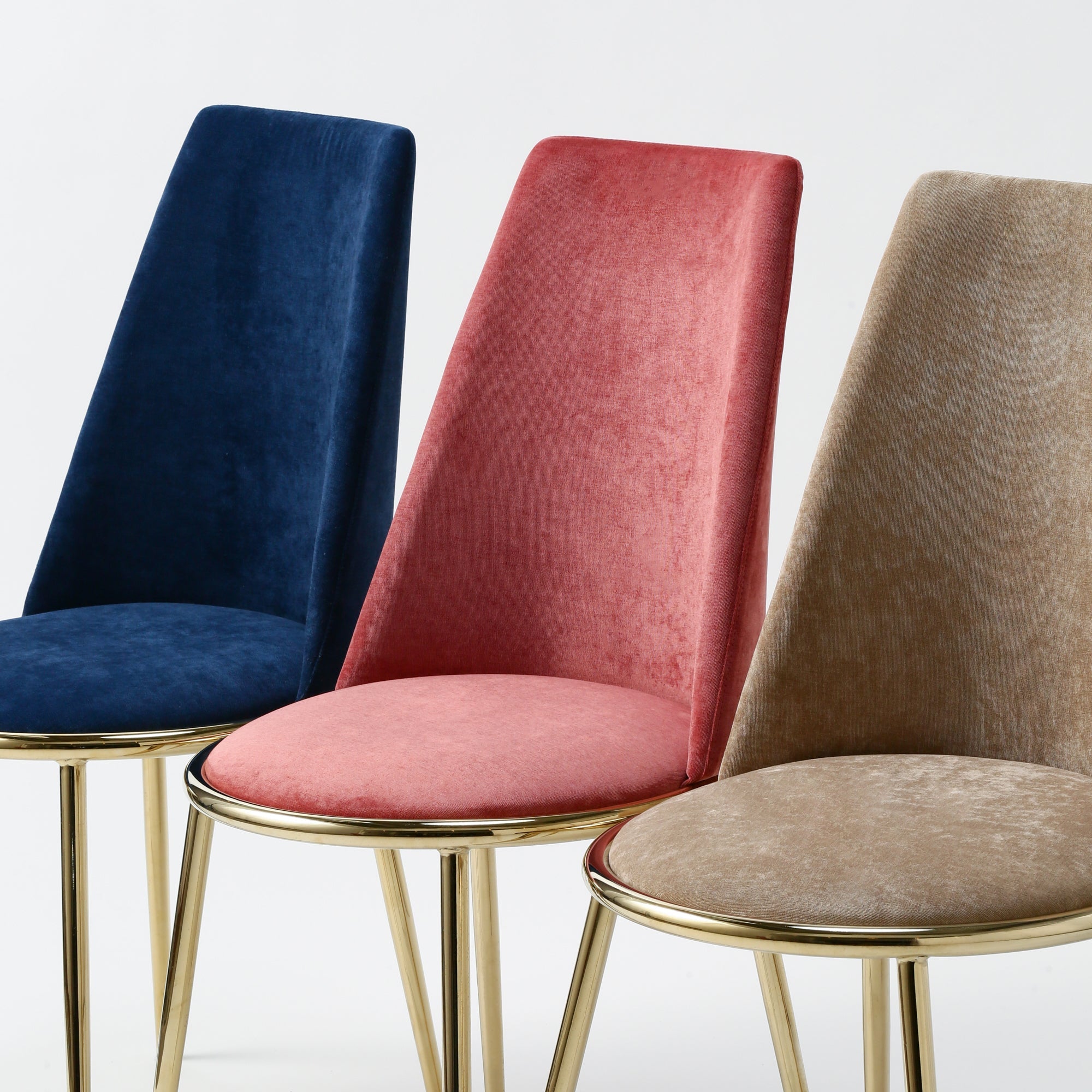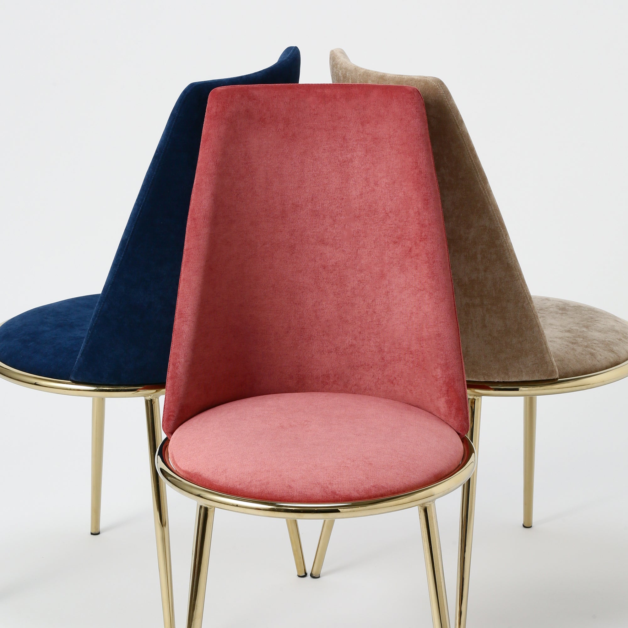 人気のフェリシテチェアがリニューアルしました。高級感のある起毛生地に指輪のようなゴールドのフレームが特徴のチェアです。背もたれを高くし、フィット感を持たせることですわり心地がよく、リラックスの出来るチェアに仕上げました。包み込まれる座り心地ゆったりとした斜めの背もたれに、包み込まれるようなホールド感のあるチェアです。普段ダイニングでくつろいだりTVをゆったり見るなど、家族や友人とダイニングで過ごす事が多い方におすすめです。またダイニングチェアとしてだけでなく、デスクチェアとしてなど様々な使用が出来ます。指輪のリングのようなフレーム高級感のある起毛生地に、指輪のような光沢のあるチェアを包むゴールドのフレームが特徴です。ワントーンのシーンにアクセントで差し込んだり、女性らしいテーブルにゴールドをワンポイントに入れた食器やテーブルランナー、ランチマットなどで宝石箱のような空間を提案できます。色の組み合わせが楽しめるカラーバリエーションピンクとベージュで落ち着いた中にもピンクで可愛らしさを出したり、ブルーとピンクでより華やかさのあるダイニングシーン、ブルーとベージュで大人らしい雰囲気の空間など組み合わせ次第でさまざまなシーンにあわせられます。