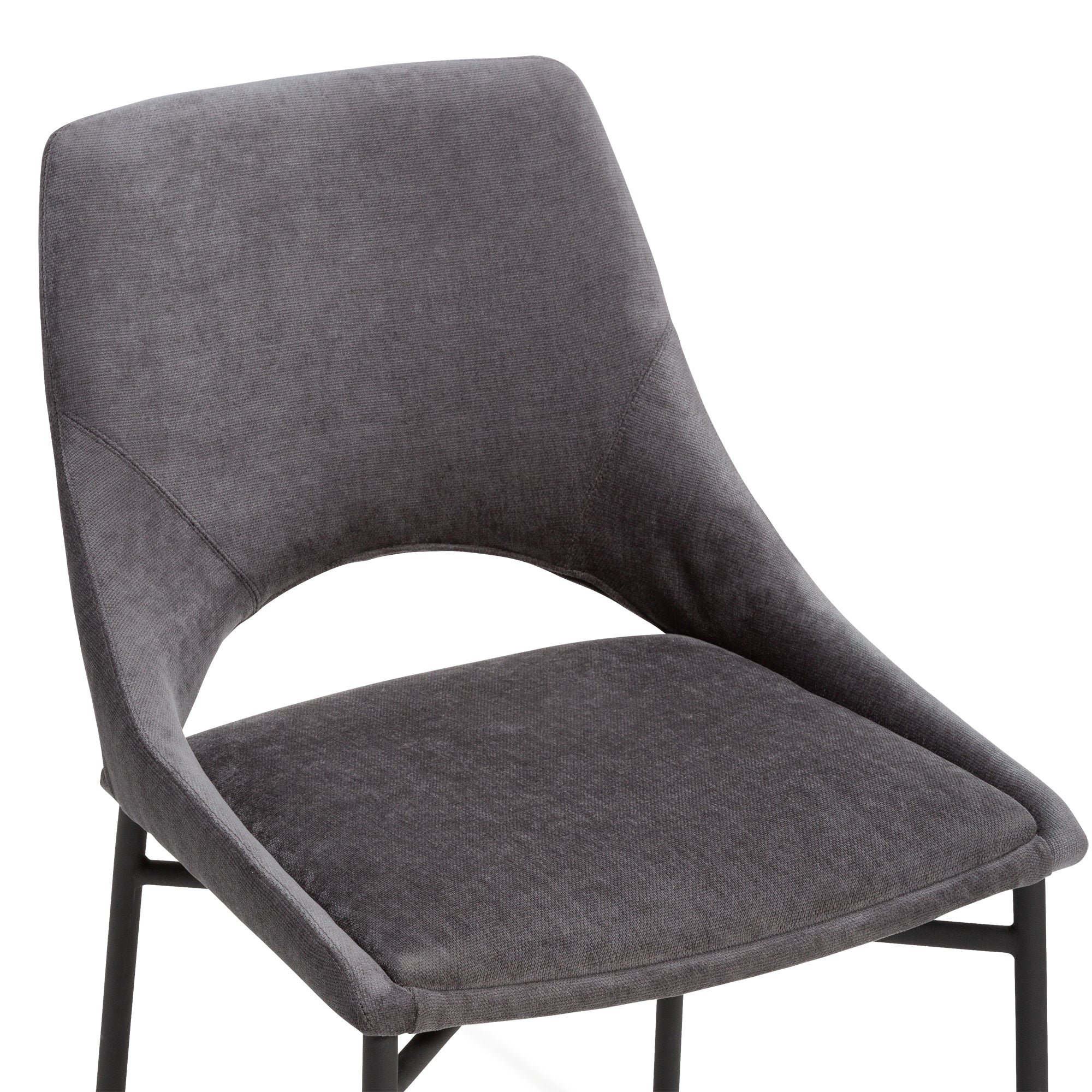 高級感のある起毛生地に艶消し黒色の細身脚部を使用することでシックで落ち着いた雰囲気のあるチェアです。座り心地にもこだわり軽いホールド感を持たせ、リラックスの出来るチェアです。背のトップから座面の両側へ緩やかに延びた背もたれのラインが特徴的で、軽くホールド感のあるチェアです。ダイニングテーブルのチェアとしてだけでなく、デスクのチェアとしてなど様々な使用が出来るチェアです。普段ダイニングで談笑したりテレビをゆったり見るなど家族や友人とダイニングで過ごす事が多い方におすすめです。クッションはしっかりとした硬さがあるので、柔らかいクッションとは違い長時間座っても快適に過ごせるようになっています。背と座面に隙間ががある事でホコリ溜まりが出来づらくお掃除も快適です。ペットと触れ合うような心地よさが得られる起毛生地。お部屋で長い時間寛げるよう考えられています。様々な方向に起毛が向き、光が当たることで単調にならない濃淡の色合いの表現ができます。