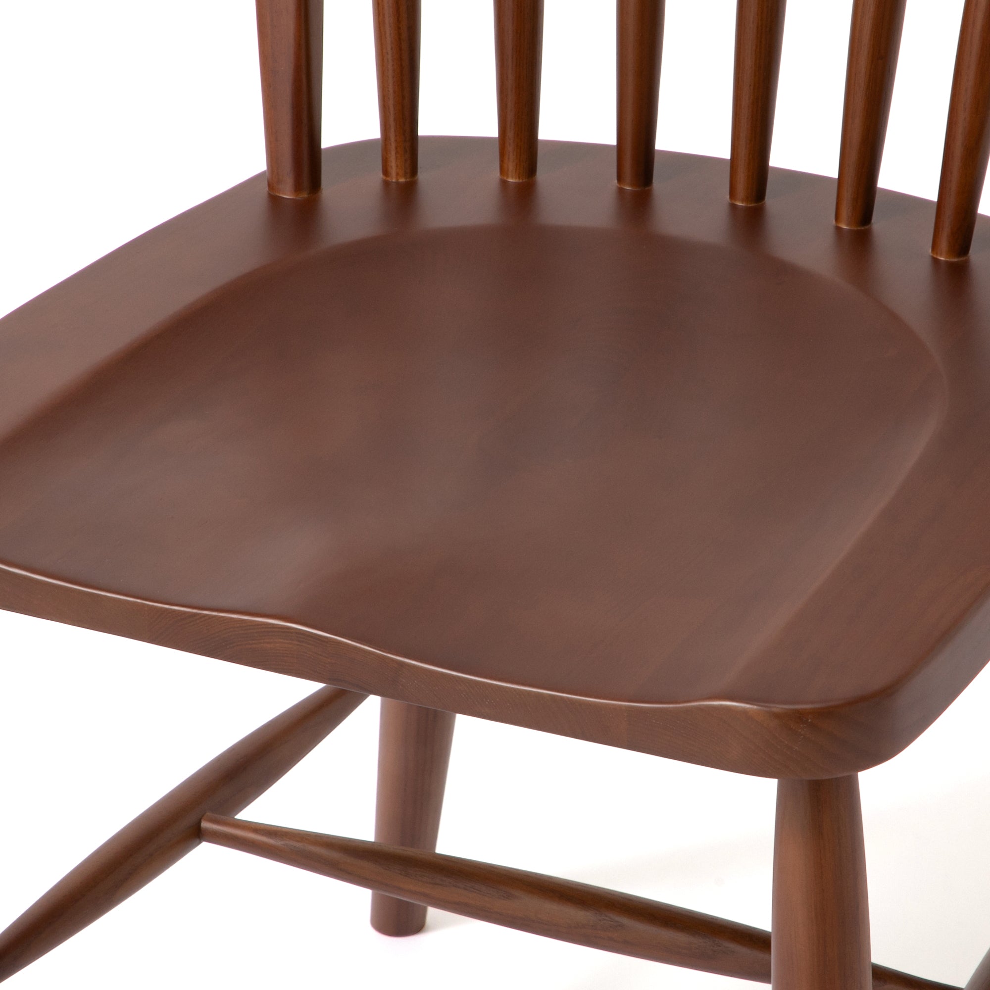 アルパ ダイニングテーブルに合わせたウィンザーチェアです。 トレンドカラーであるビビットなカラーのテーブルコーディネートとも相性がいいブラウンカラーが仲間入りしました。 テーブル同様、脚部の品格漂う個性的な曲線が美しいデザイン。座面には自然と体に馴染むように座繰り加工を施してあり、板座にも関わらず体を包み込むような座り心地を実現しています。 アッシュ材を使用しており、あえて木目を見せる仕上げにすることで木本来の素材感が楽しめます。 同色で揃えるのも統一感が出せて素敵ですが、あえて別の色と組み合わせるのもおすすめです。