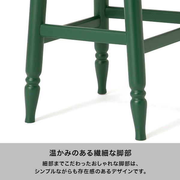 使い勝手のいい、ロータイプのウィンザースツールです。ラバーウッドの無垢材を使用した、クラフト感のあるナチュラルなデザイン。キッチンやダイニング、リビングでも、様々なシーンでお使いいただけます。お花やグリーンポットにも合う深みのあるグリーンは、こなれ感を演出してくれます。アースカラーでナチュラルにまとめたお部屋や、カラフルでポップな雰囲気のお部屋に相性抜群です。