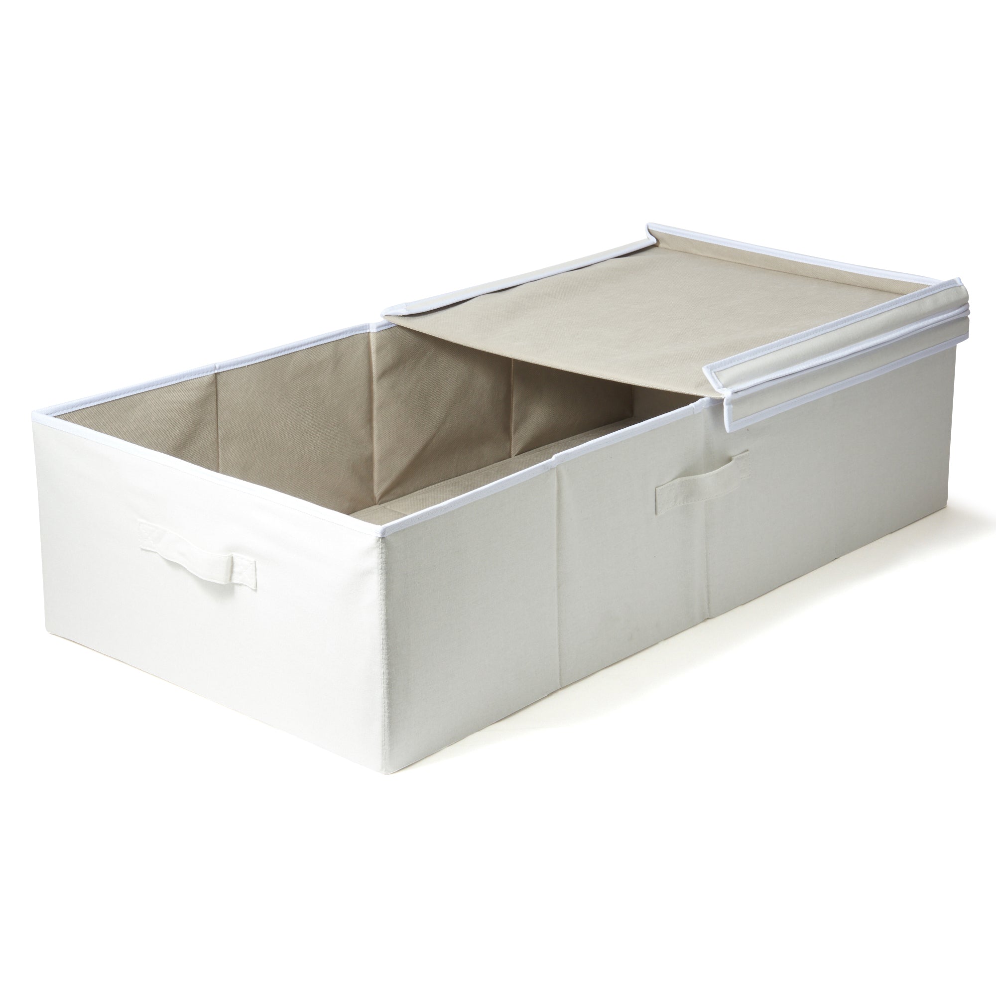 ベッド下収納で使用できる簡易的な収納BOXです。シンプルで、コーディネートに取り入れやすいホワイトとグレーの2色をご用意しました。縦置きでは4つ、横置きでは2つを収納可能です。蓋中央に折れ線を入れているので、全て引き出さなくても収納物が取り出せます。ベット下のスペースを利用することですっきりとした収納が叶います。また、折り畳み可能なので引越しの際などもかさばらないアイテムです。