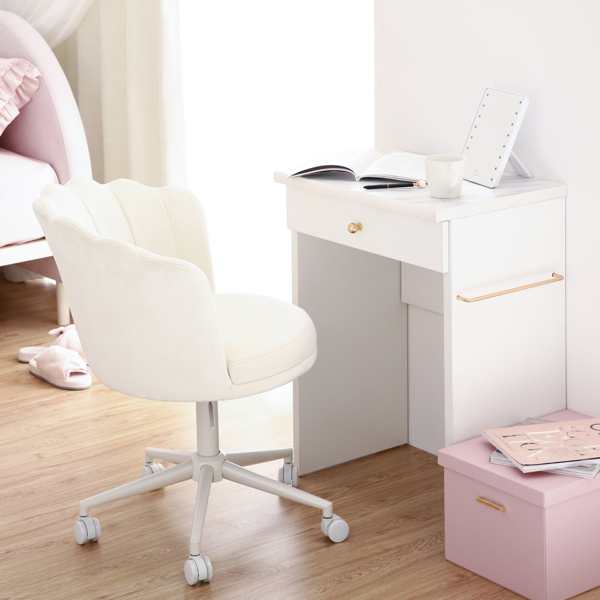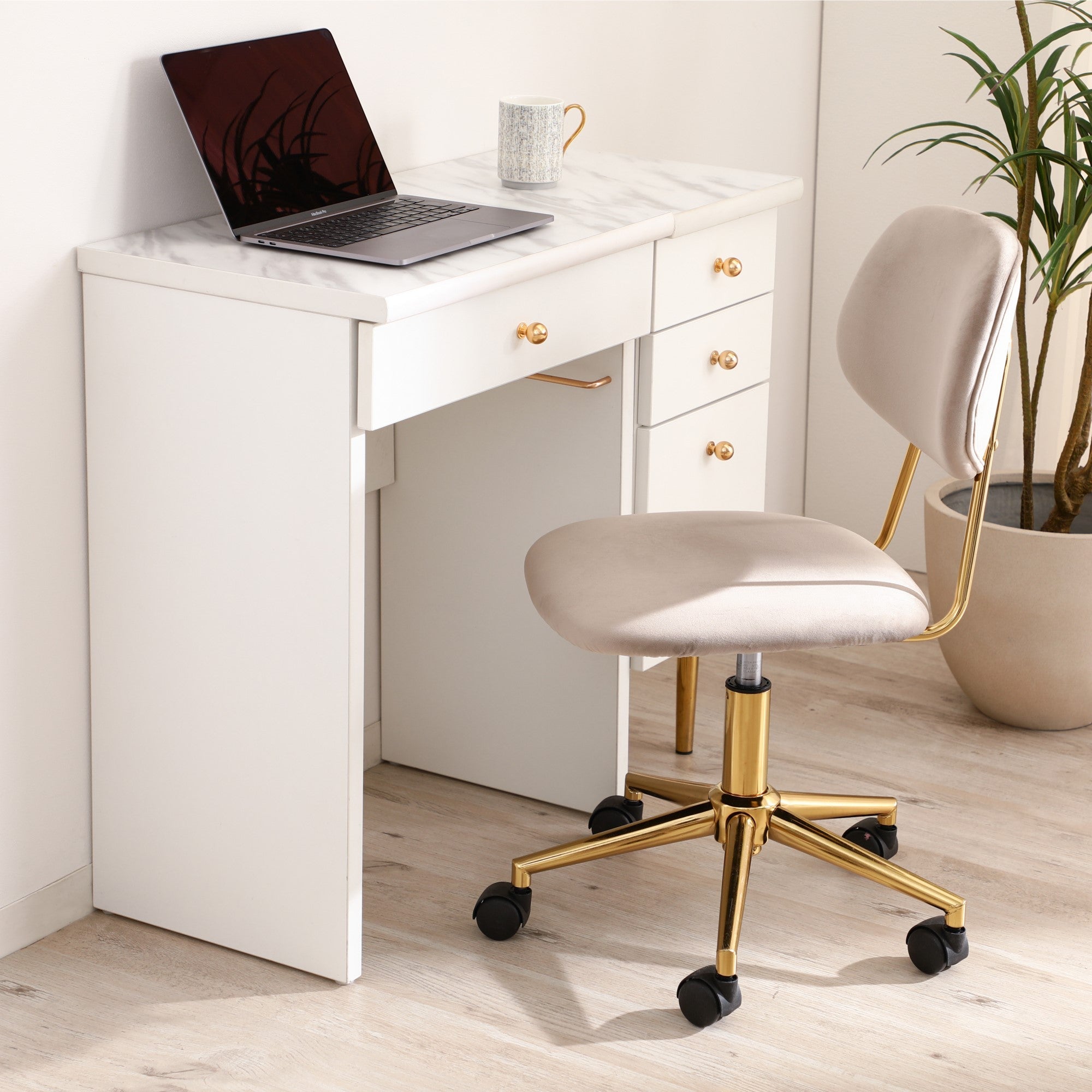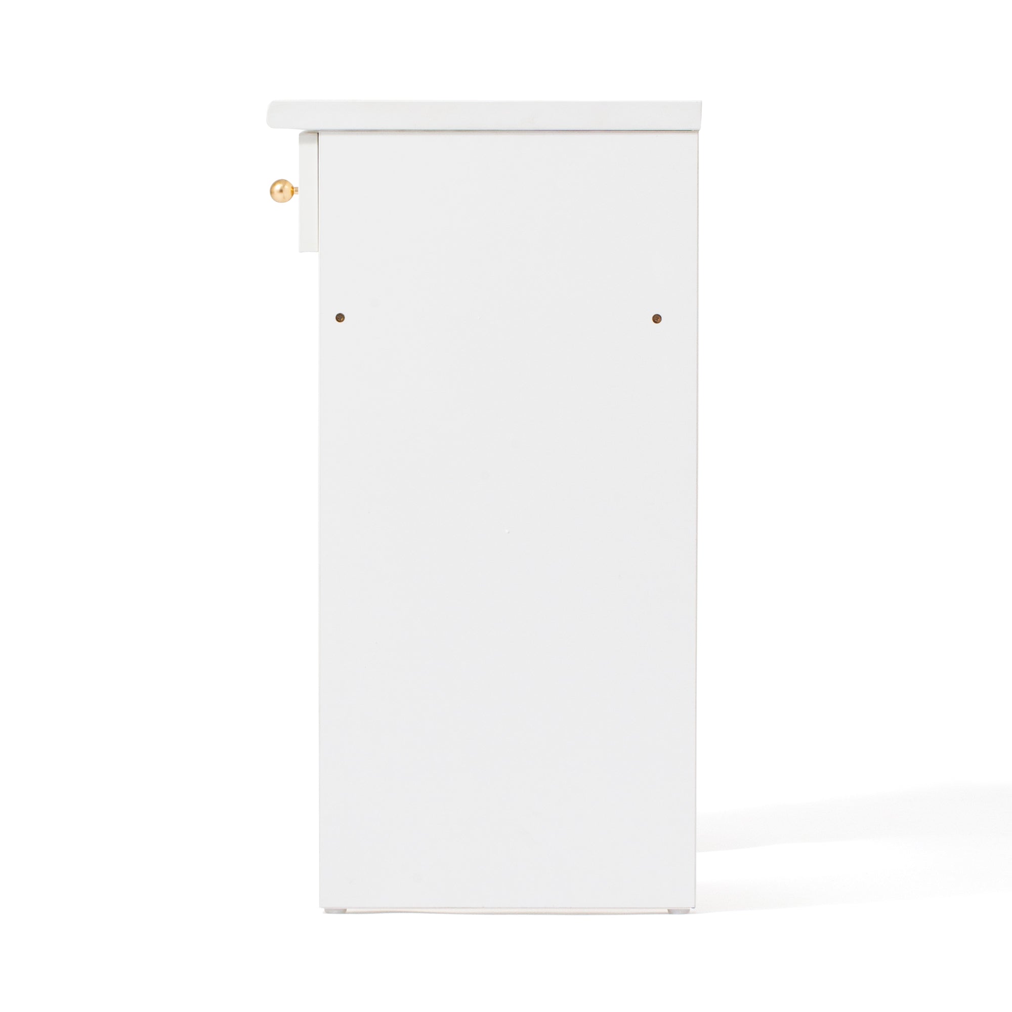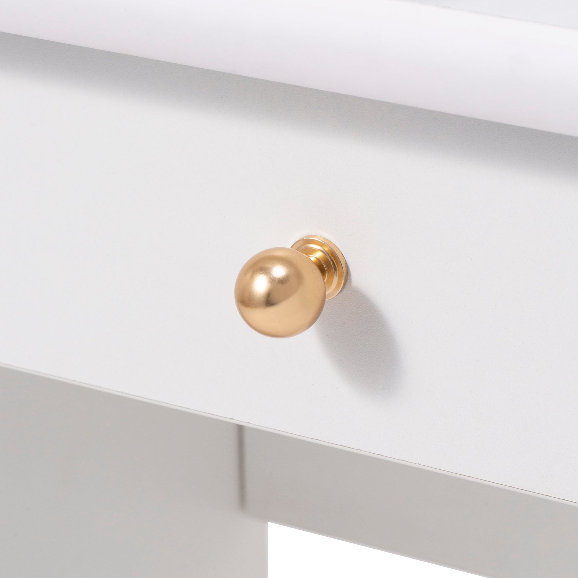 【エルドラドシリーズの仕様変更について】 この商品は2024年8月までに生産されたモデルです。2024年9月以降に生産された商品には一部仕様の変更がございます。新仕様品と組み合わせて使用する際はご注意ください。 詳しくは商品ページ下部の【仕様変更箇所について】をご確認ください。 ============ ワークデスクとしても使用できるコンパクトなドレッサーです。 汚れに強いメラミン天板、引出し、コンセントもついて使い勝手のいい機能が充実しています。 別売りのLED付ミラーをセットすることで、コンパクトながらも大きなミラーでゆったりメイクをお楽しみいただけます。 デザインは清潔感のあるホワイトに、大理石柄の天板、ゴールドの取手がエレガントさを演出します。 コンパクトサイズで一人暮らしのお部屋にもフィットします。 コンセントタップが付属しており、ドライヤーやヘアアイロンなどもご使用いただけます。 引き出しのサイドにはドライヤーが掛けられるハンガーもついていてぬかりありません。 なくしてしまいがちなリップなどの小物も引き出しにまとめて収納できます。 ミニデスクとしてもご使用いただけます。 お部屋に置いても圧迫感がなく、作業スペースとして大活躍。 別売りのLED付ミラーをセットすれば、気分も高まるドレッサーに。 お気に入りのコスメやスキンケア用品を並べて、毎日のメイク時間を快適に。 ▼あわせて使える女優ミラーはこちら エルドラド ハリウッドミラー 【仕様変更箇所について】 商品サイズに大きな変更はございませんが、新旧モデルを並べて使用する際は以下の点に特にご注意ください。 ①天板の厚みと天板エッジ前面のカーブ 新:25mm、カーブが弱い 旧:27mm、カーブが強い ※総高は同じです。 ②取手、脚、ハンガーバーのメッキの色 新:パーツそれぞれの色味を統一しました。 旧:パーツごとに若干色味が異なります。 ※パーツごとに多少の色差はございます。 ③チェストベッドのスライド天板の奥行、レールの色 新:奥行 最大32.5cm、黒 旧:奥行 最大28.5cm、シルバー