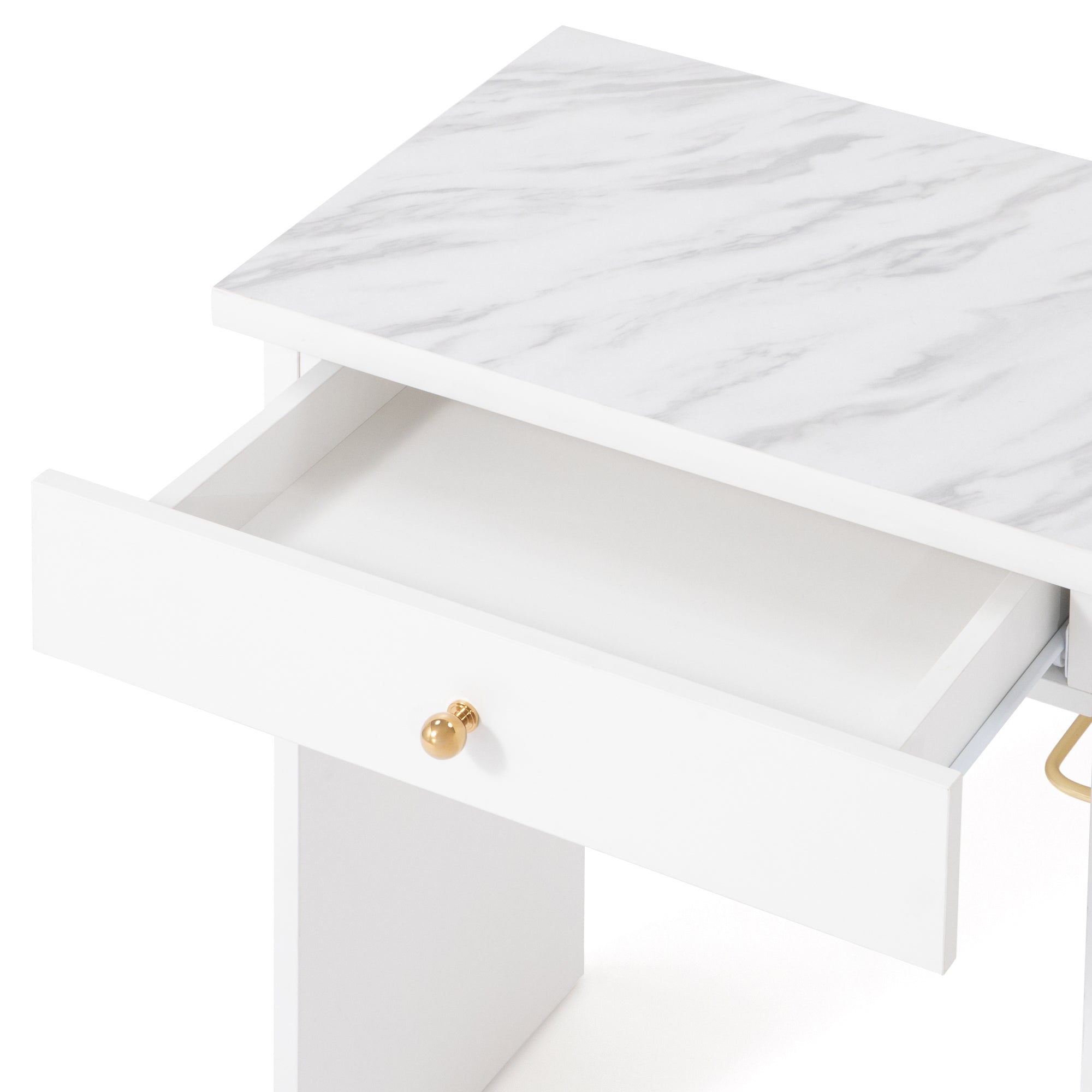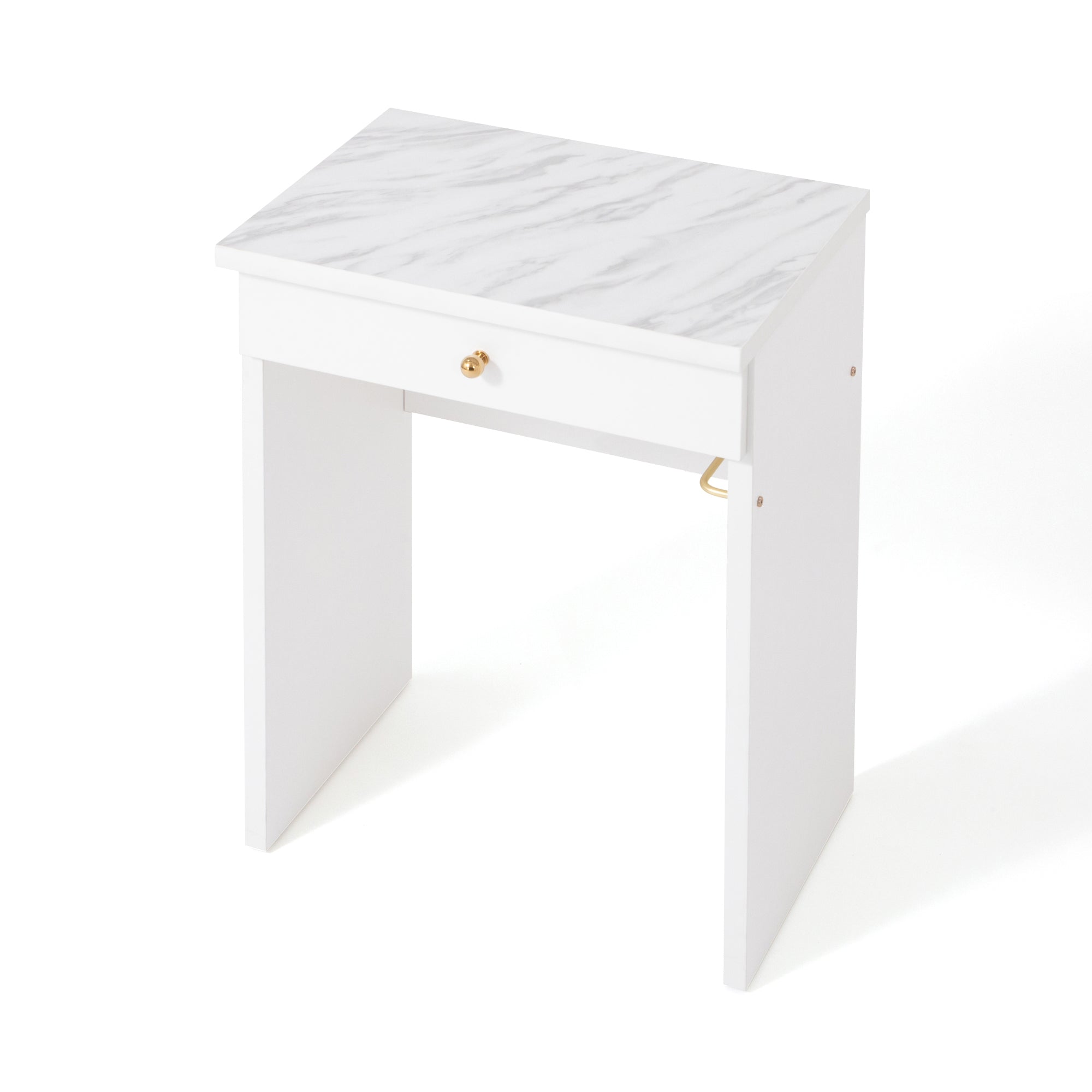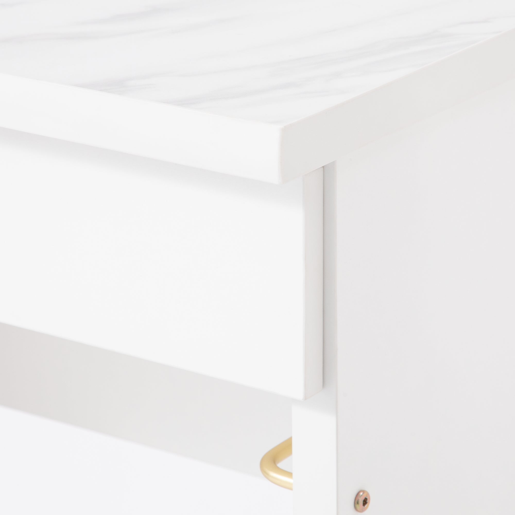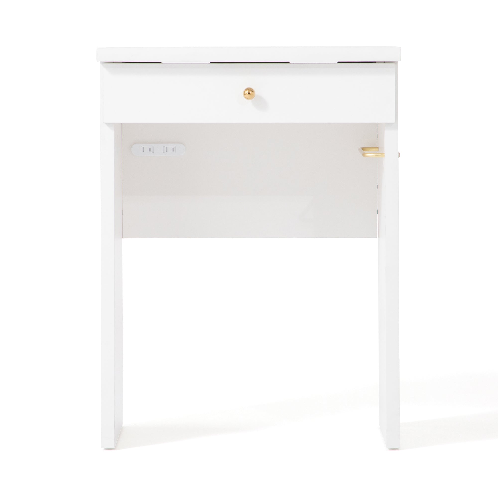 【エルドラドシリーズの仕様変更について】 この商品は生産時期によって一部仕様が異なります。2024年8月以前に生産されたシリーズと組み合わせて使用する際はご注意ください。 詳しくは商品ページ下部の【仕様変更箇所について】をご確認ください。 ============ ワークデスクとしても使用できるコンパクトなドレッサーです。 汚れに強いメラミン天板、引出し、コンセントもついて使い勝手のいい機能が充実しています。 別売りのLED付ミラーをセットすることで、コンパクトながらも大きなミラーでゆったりメイクをお楽しみいただけます。 デザインは清潔感のあるホワイトに、大理石柄の天板、ゴールドの取手がエレガントさを演出します。 コンパクトサイズで一人暮らしのお部屋にもフィットします。 コンセントタップが付属しており、ドライヤーやヘアアイロンなどもご使用いただけます。 ▼あわせて使える女優ミラーはこちら エルドラド ハリウッドミラー 【仕様変更箇所について】 商品サイズに大きな変更はございませんが、新旧モデルを並べて使用する際は以下の点に特にご注意ください。 ①天板の厚みと天板エッジ前面のカーブ 新:25mm、カーブが弱い 旧:27mm、カーブが強い ※総高は同じです。 ②取手、脚、ハンガーバーのメッキの色 新:パーツそれぞれの色味を統一しました。 旧:パーツごとに若干色味が異なります。 ※パーツごとに多少の色差はございます。 ③チェストベッドのスライド天板の奥行、レールの色 新:奥行 最大32.5cm、黒 旧:奥行 最大28.5cm、シルバー