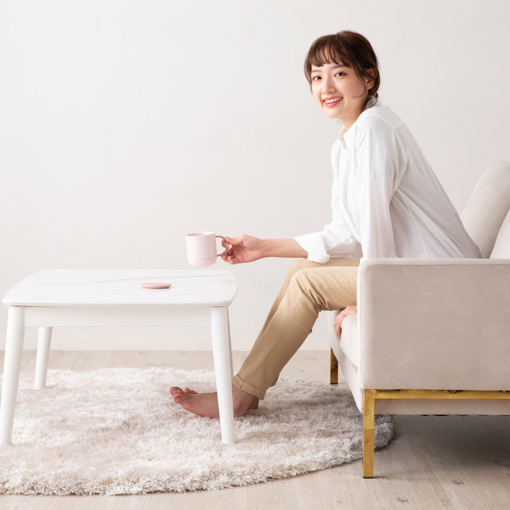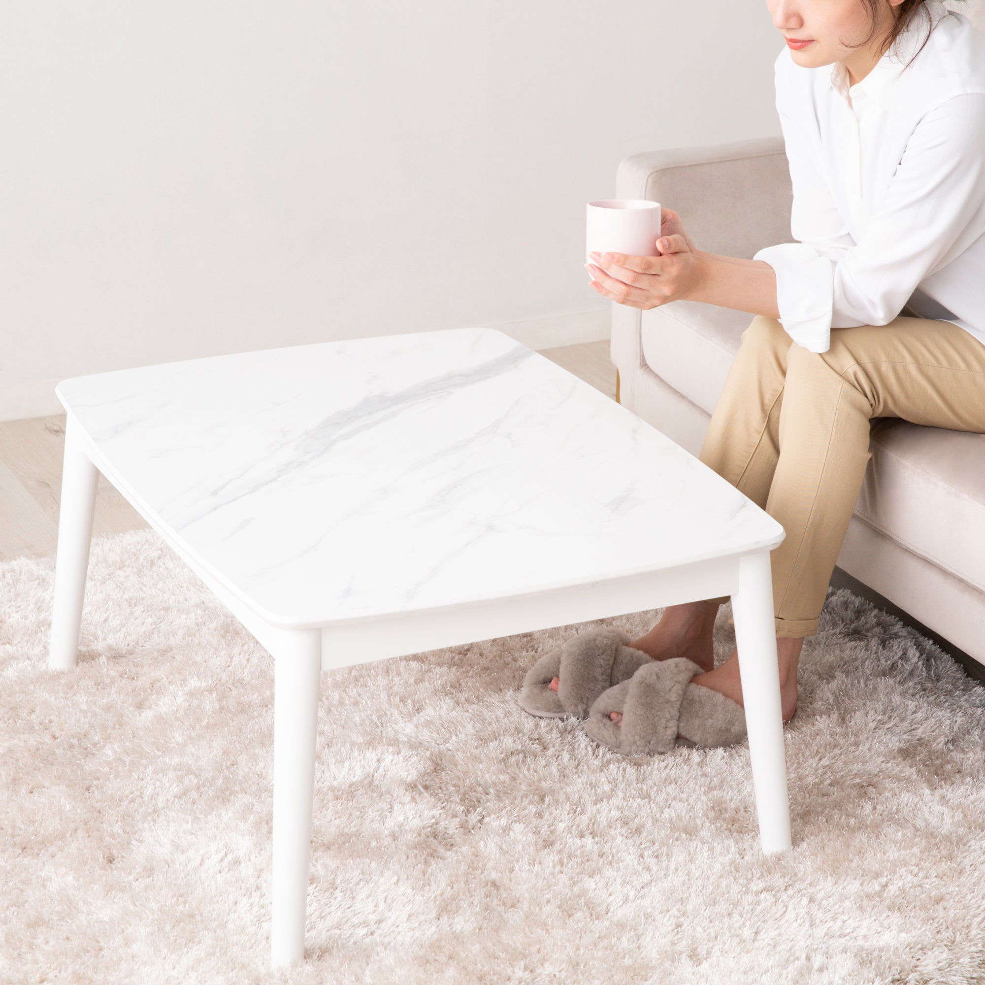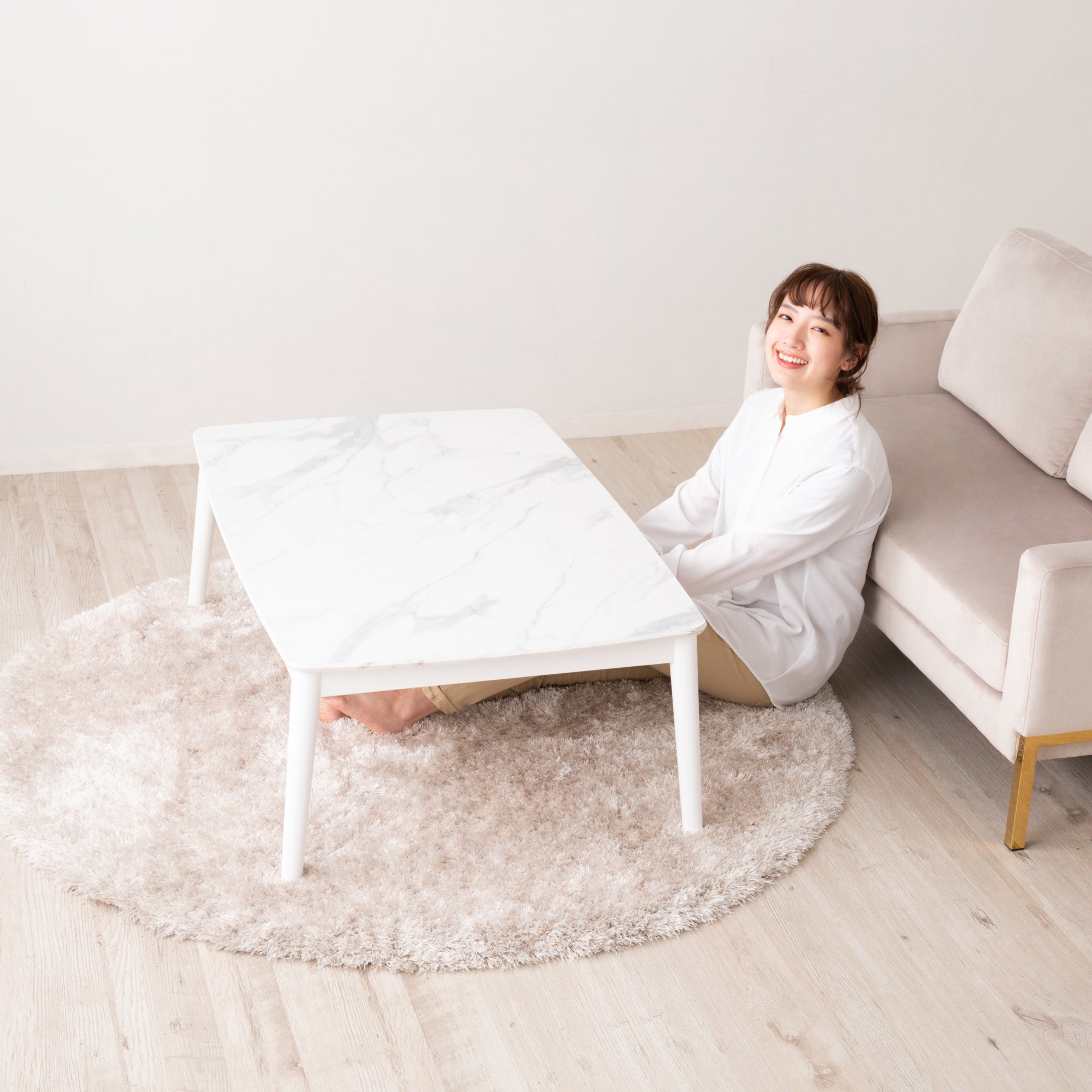 一年中使えるすっきりとしたフォルムのおしゃれなこたつテーブルです。 体の芯からじんわり温めてくれる石英管ヒーター内蔵で、冬はこたつとして大活躍。ぽかぽかの幸せな気分にしてくれます。 こたつテーブルにはめずらしい大理石調の天板は、メラミン樹脂なので傷もつきにくく丈夫でお手入れも簡単。 脚部は細く圧迫感のないデザインで、オフシーズンにはコーヒーテーブルとして違和感なくインテリアになじみます。 ※画像はSサイズを使用しています。 コーヒーテーブルとして使うときは天板をねじで固定できるので、ずれることなく安全にお使いいただけます。 Lサイズは2~4人で使える広々サイズです。作業するのにちょうどいい高さで使い勝手抜群です。 ※こちらの商品はテーブル単品です。こたつ布団は別売りです。 ※天板の柄の出方は一点ずつ個体差があり、写真と実際の商品は異なる場合がございます。予めご了承ください。 ※天板固定ネジは仮止めしてから締め上げてください。詳細は取扱説明書をご覧ください。 ▼このテーブルサイズにおすすめの組み合わせ ▼合わせて使えるこたつ布団はこちら こたつ布団・敷布団【長方形】一覧 ▼シーズンオフのこたつ布団をかわいく収納! クッションになる布団収納ケース