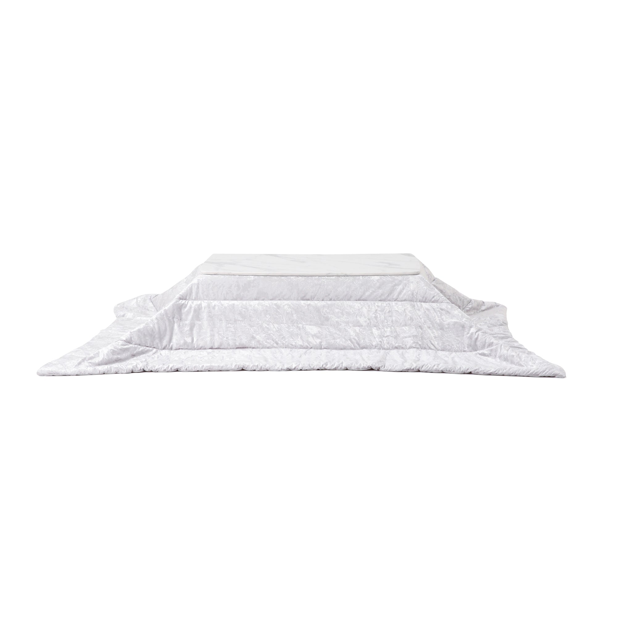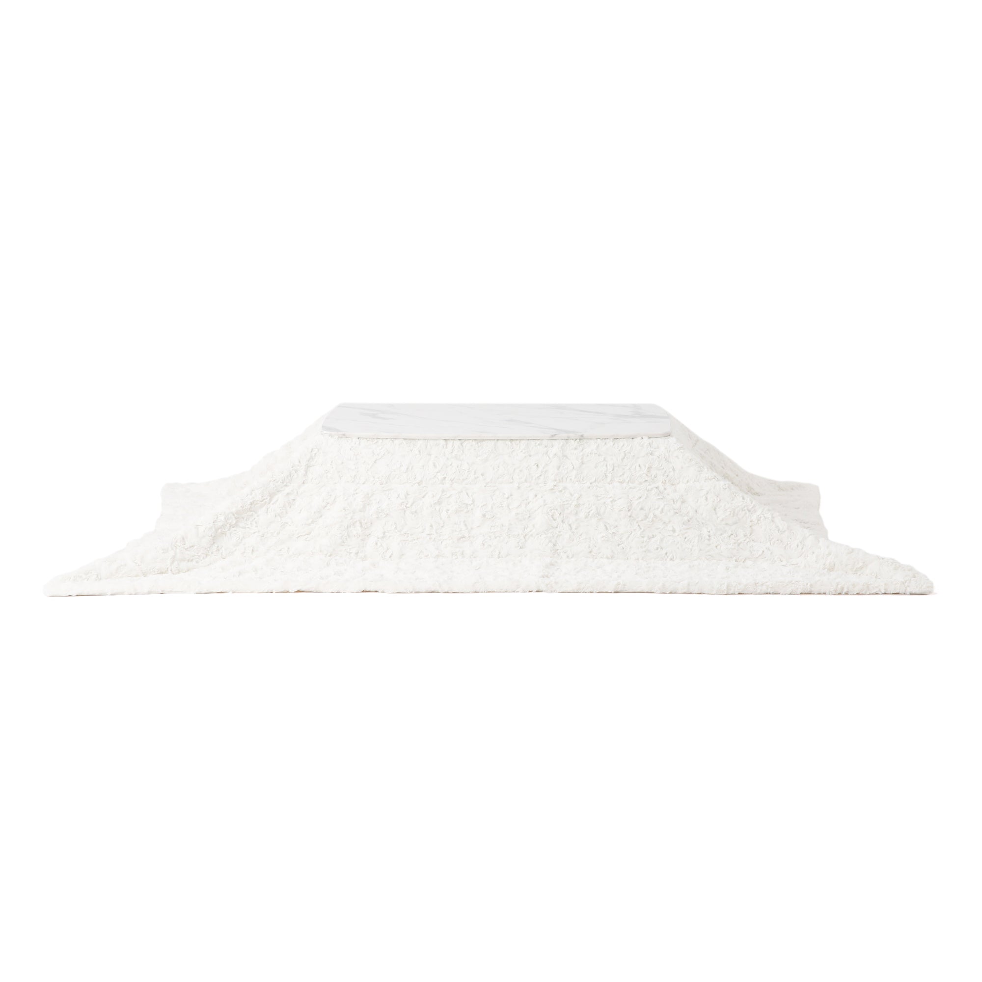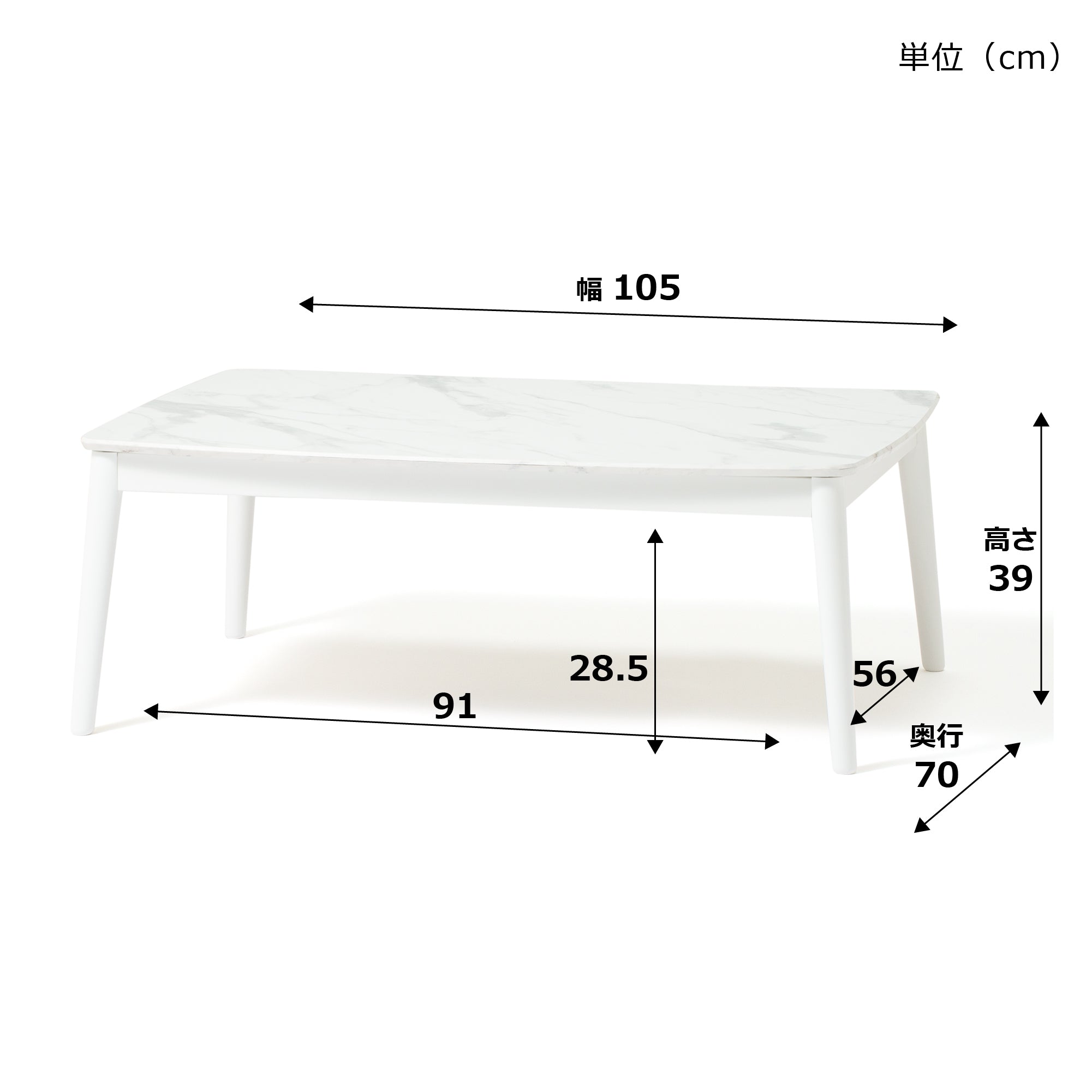 一年中使えるすっきりとしたフォルムのおしゃれなこたつテーブルです。 体の芯からじんわり温めてくれる石英管ヒーター内蔵で、冬はこたつとして大活躍。ぽかぽかの幸せな気分にしてくれます。 こたつテーブルにはめずらしい大理石調の天板は、メラミン樹脂なので傷もつきにくく丈夫でお手入れも簡単。 脚部は細く圧迫感のないデザインで、オフシーズンにはコーヒーテーブルとして違和感なくインテリアになじみます。 ※画像はSサイズを使用しています。 コーヒーテーブルとして使うときは天板をねじで固定できるので、ずれることなく安全にお使いいただけます。 Lサイズは2~4人で使える広々サイズです。作業するのにちょうどいい高さで使い勝手抜群です。 ※こちらの商品はテーブル単品です。こたつ布団は別売りです。 ※天板の柄の出方は一点ずつ個体差があり、写真と実際の商品は異なる場合がございます。予めご了承ください。 ※天板固定ネジは仮止めしてから締め上げてください。詳細は取扱説明書をご覧ください。 ▼このテーブルサイズにおすすめの組み合わせ ▼合わせて使えるこたつ布団はこちら こたつ布団・敷布団【長方形】一覧 ▼シーズンオフのこたつ布団をかわいく収納! クッションになる布団収納ケース