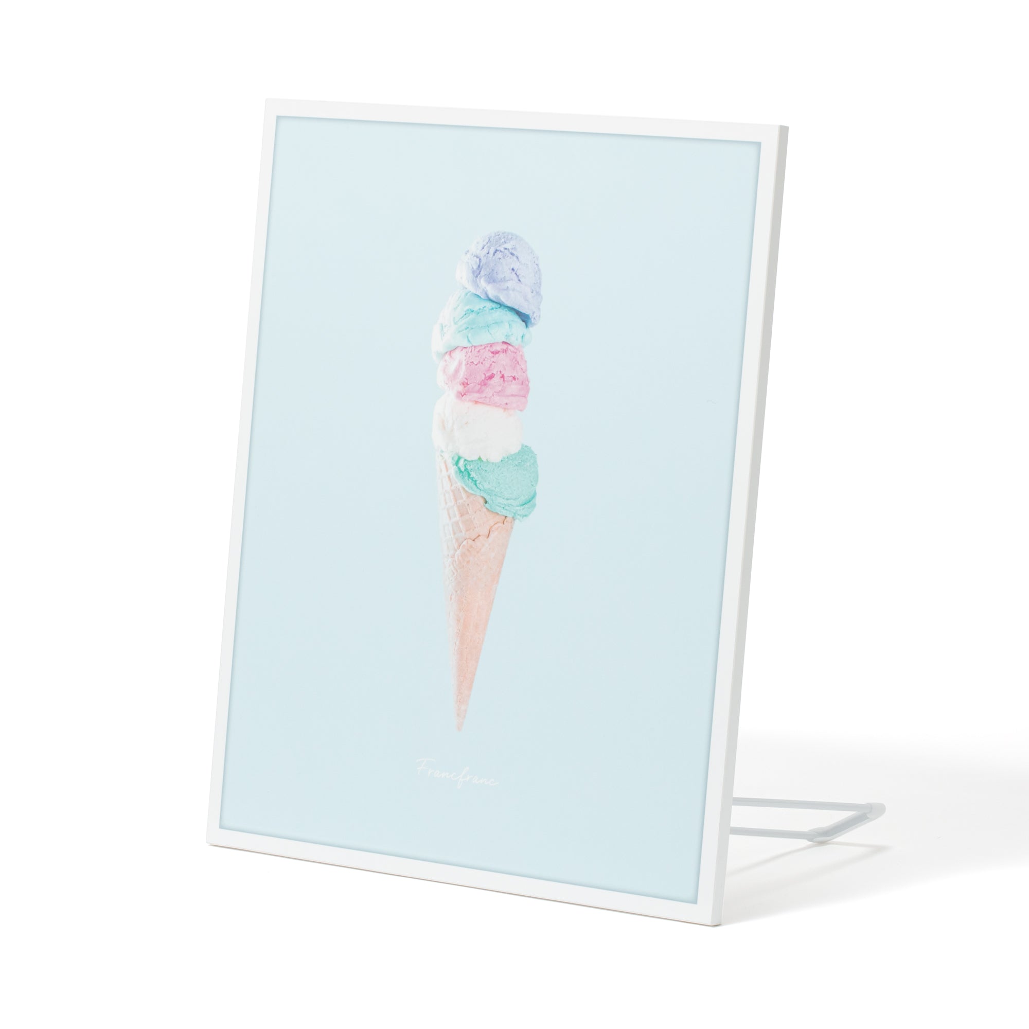 使わない時には立て掛けて、絵画のようにお部屋を飾れる折りたたみ式のテーブルです。15mmのしっかりした厚みを持つ天板は高光沢仕上げで光が反射され、まるで本物のアートのよう。立体的に見える額縁も実際はフラットなつくりなので、端まで広々使えます。幅60cm×奥行48cmでひとり暮らしのお部屋や来客用にひとつあるとちょうどいいサイズ感。メインにも、サブテーブルとしても便利です。折りたたみも簡単でこんなにコンパクトに。そのままアートとして出しておけるので収納スペースにも困りません。インテリアとしてもテーブルとしても、急な来客やホームパーティーなどで大活躍すること間違いなしです。北欧風や鮮やかなグラフィック、モノトーンテイストなど全8種類のデザインをご用意しているので、お部屋のインテリアに合わせてお選びください。
