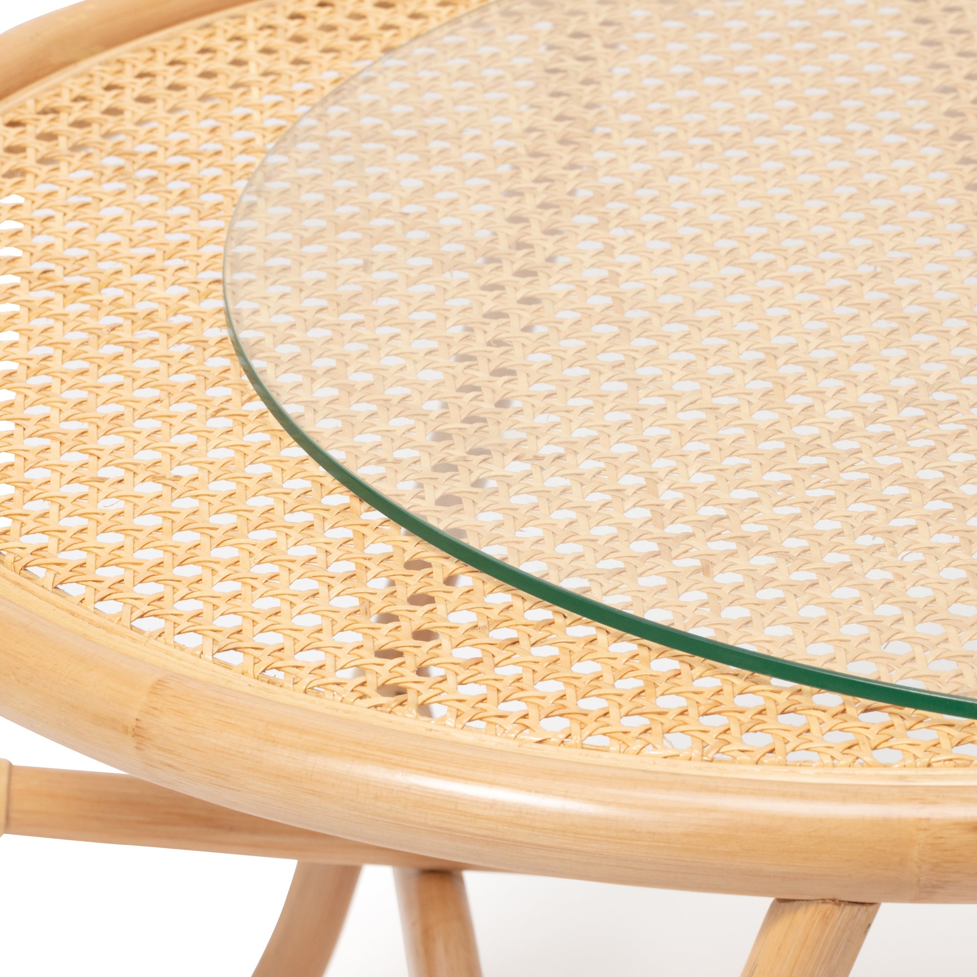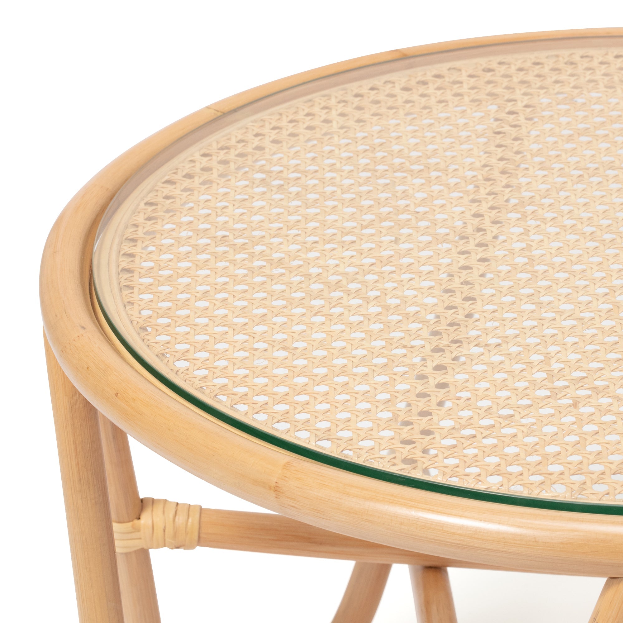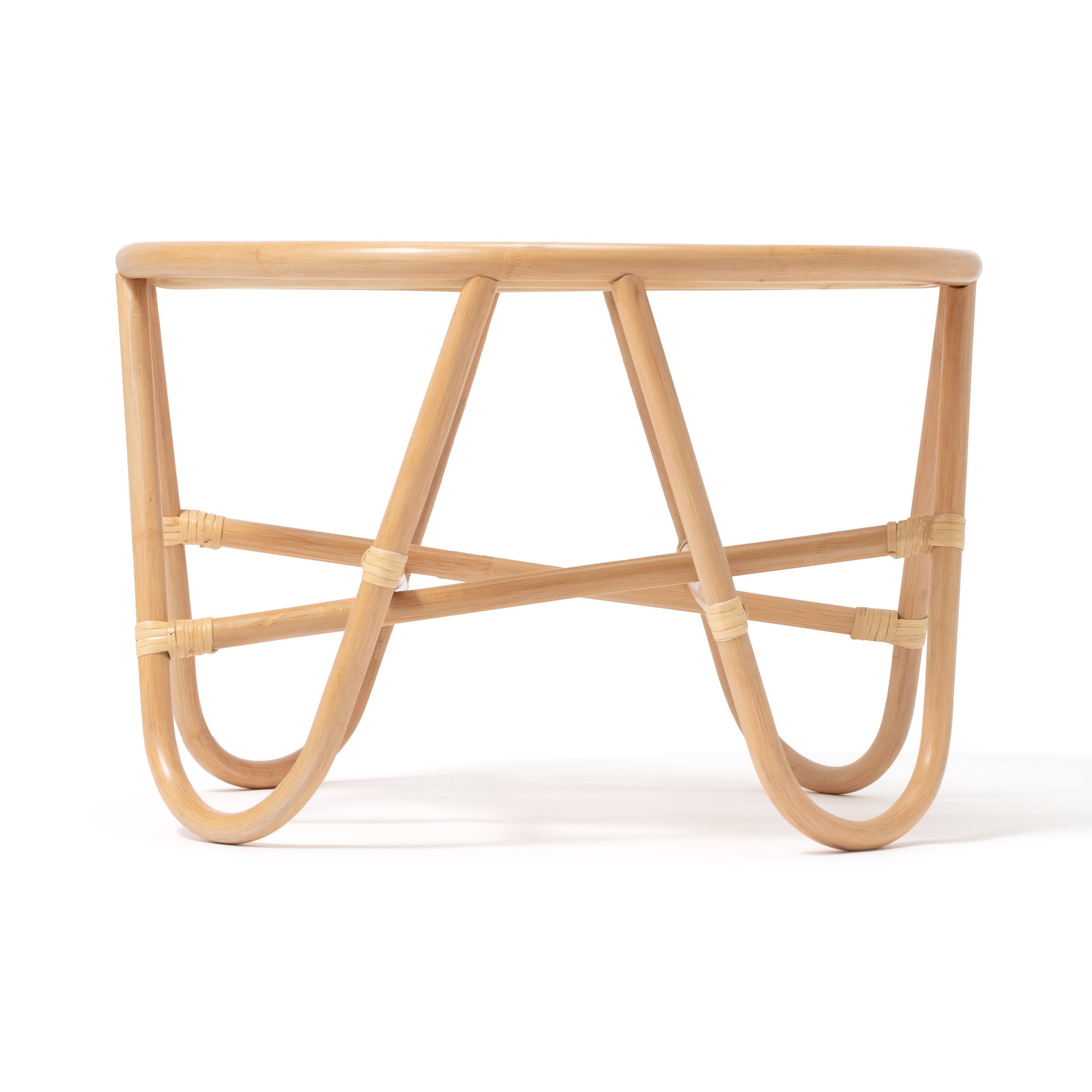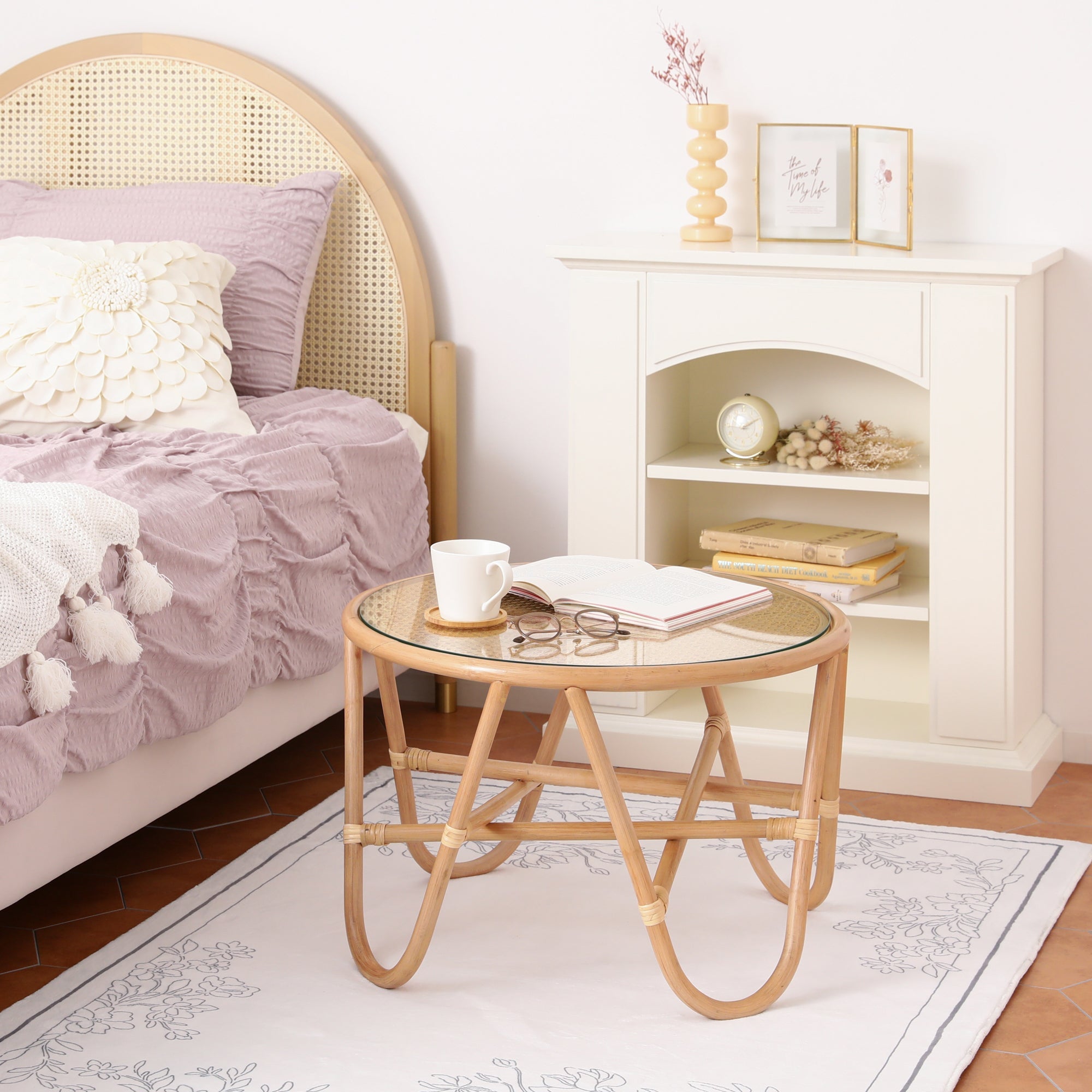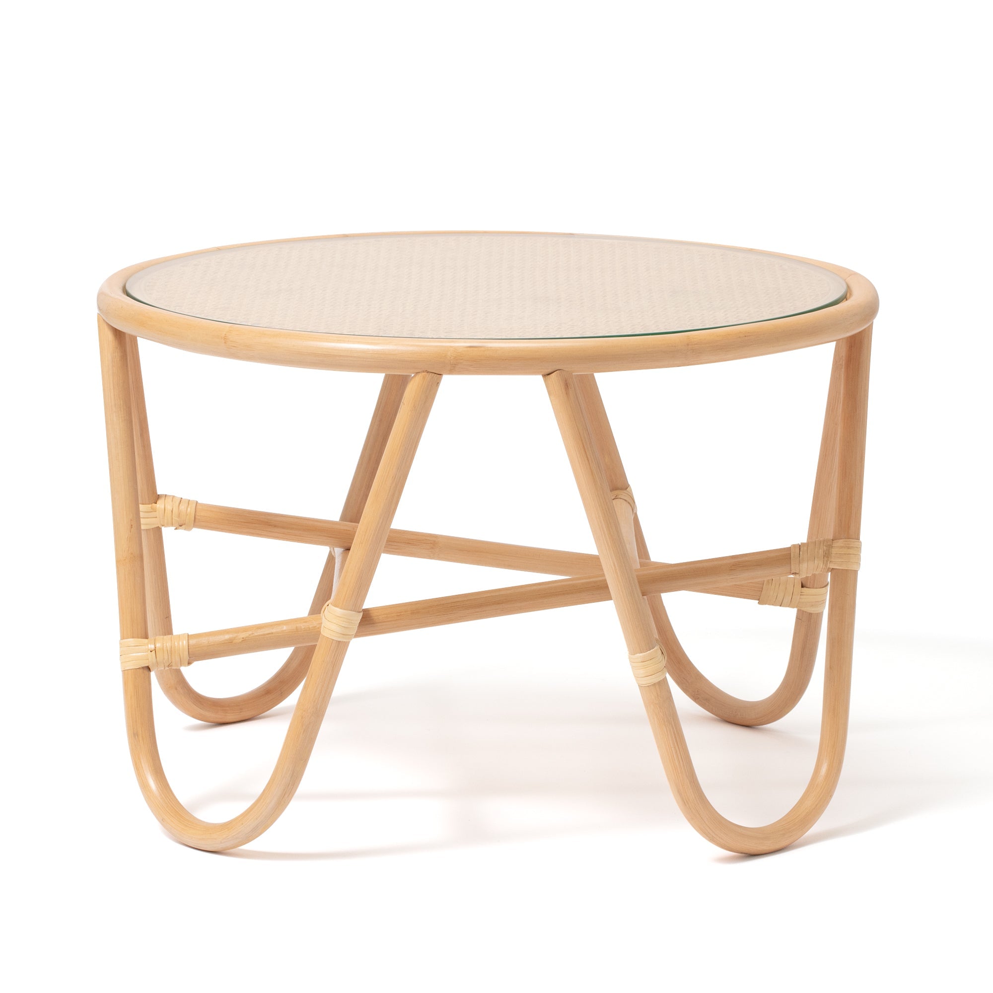 ラタンのカゴメ編みにガラス天板を合わせた、抜け感のあるラウンドテーブルです。存在感がありながらナチュラルな雰囲気で、幅広いコーディネートに取り入れやすいアイテムです。脚部までラタン製で素材の特性を活かした、しなやかなカーブが特徴的です。やわらかな、あたたかみのある印象をプラスしています。天板のカゴメ編みが繊細で美しく、ガラス天板は枠に置くだけなので設置も簡単です。ラタン(籐)は、「軽く」「柔らかく」「強い」という素材の特徴があります。天然素材がもつ繊細な質感とナチュラルな色合いが調和された籐家具は、使っていくうちに生まれる絶妙な味わいが空間にさりげない気品をもたらします。同じカゴメ編みが施されているモーティスシリーズの家具やデザインプリントラグとのコーディネートもおすすめです。