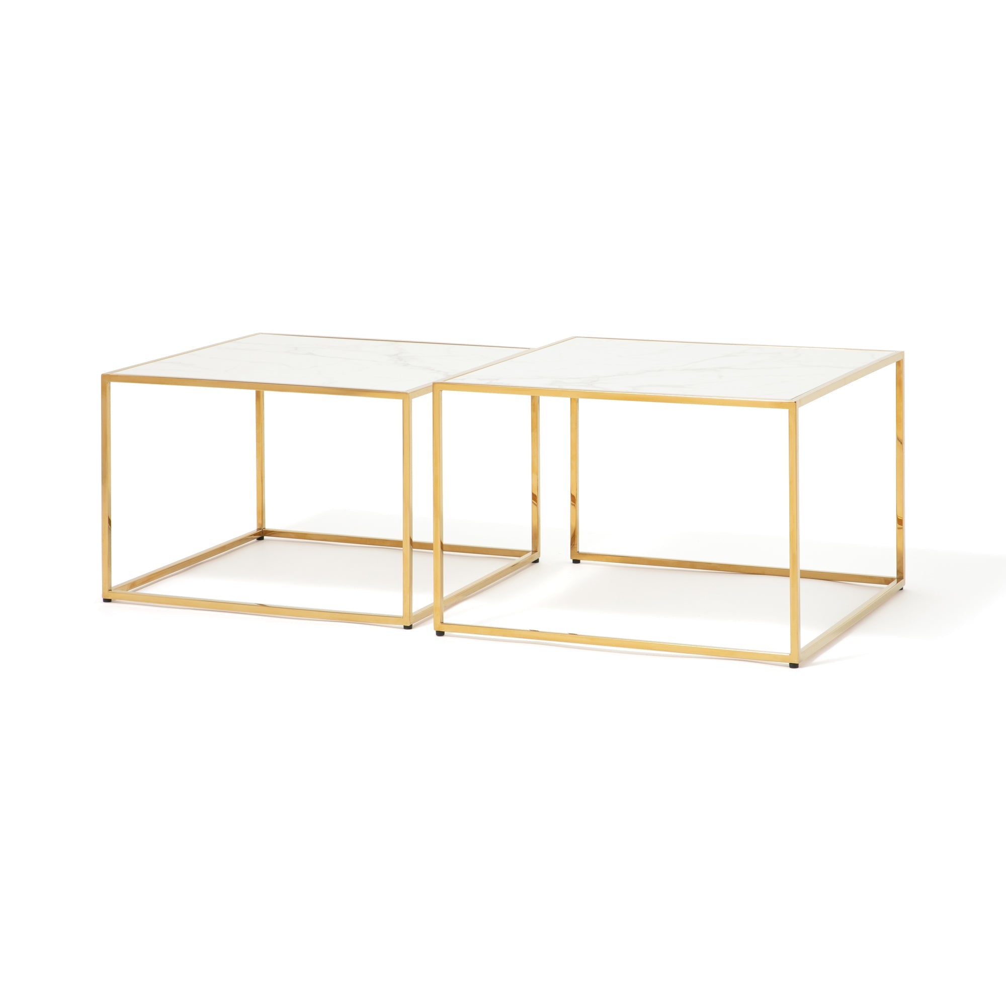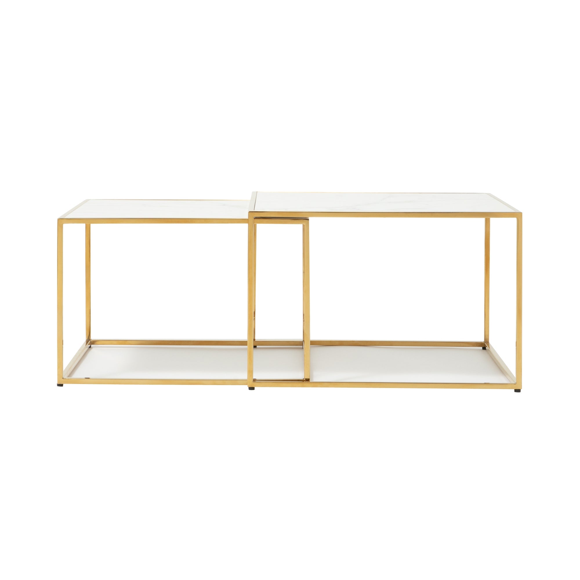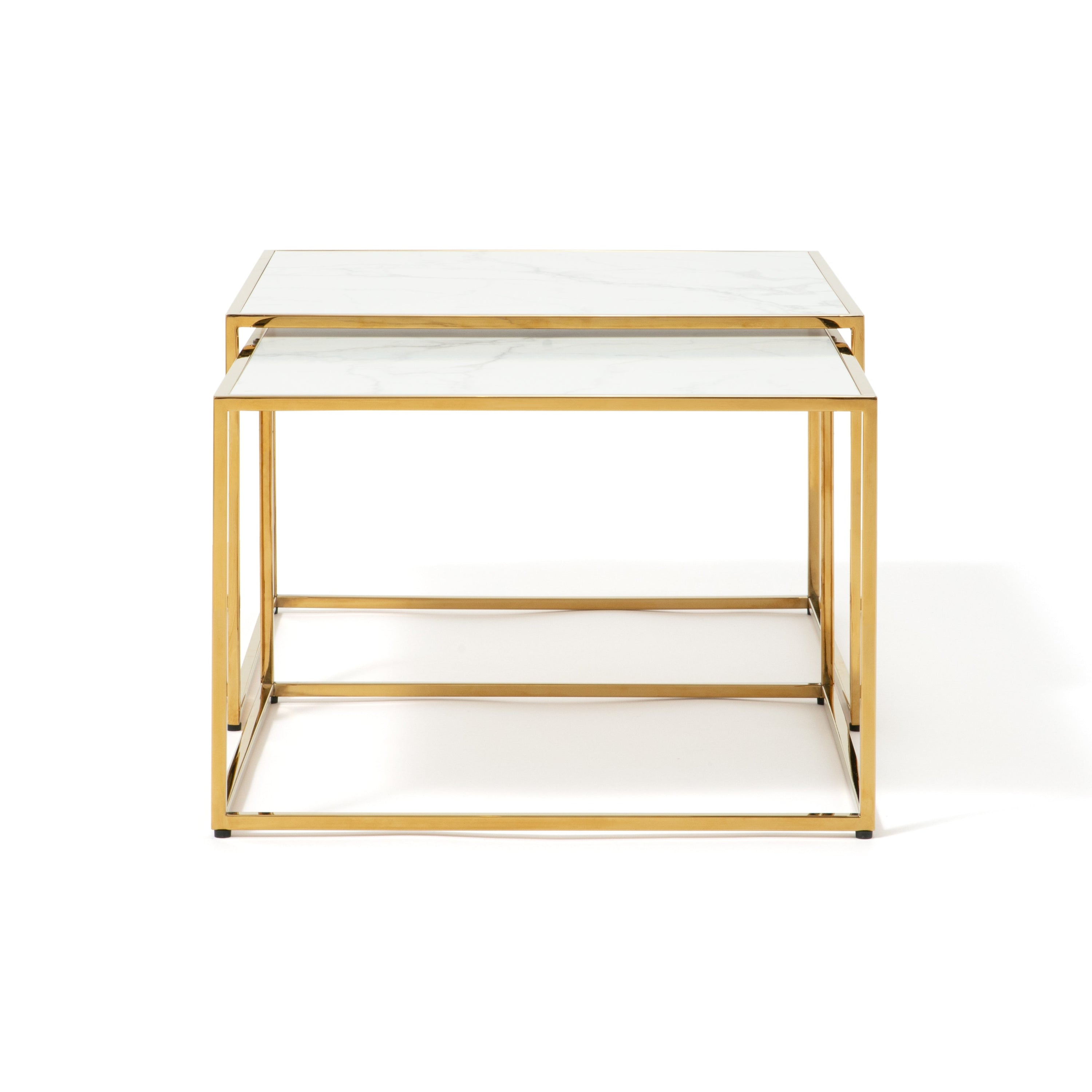 細身のゴールドフレームに大理石柄のシートを組み合わせた、高級感あふれるネストテーブルです。コンパクトなサイズと圧迫感を抑えたフレームが一人暮らしのお部屋にぴったり。お気に入りのソファと合わせてセンターテーブルとしてお使いいただくのがおすすめです。エレガントなデザインがお部屋をラグジュアリーに彩ります。