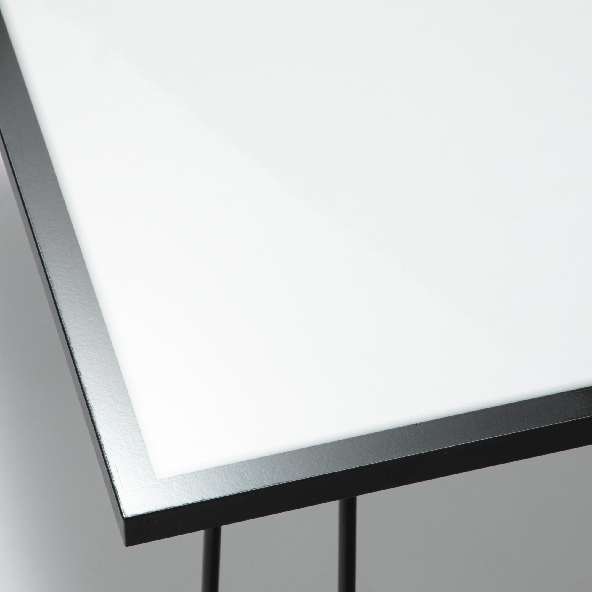 使わない時には立て掛けて、絵画のようにお部屋を飾れる折りたたみ式のテーブルです。15mmのしっかりした厚みを持つ天板は高光沢仕上げで光が反射され、まるで本物のアートのよう。縁に装飾がないシンプルでフラットなつくりなので端まで広々使えます。幅60cm×奥行48cmでひとり暮らしのお部屋や来客用にひとつあるとちょうどいいサイズ。急な来客やホームパーティーなどできっと活躍してくれるアイテムです。