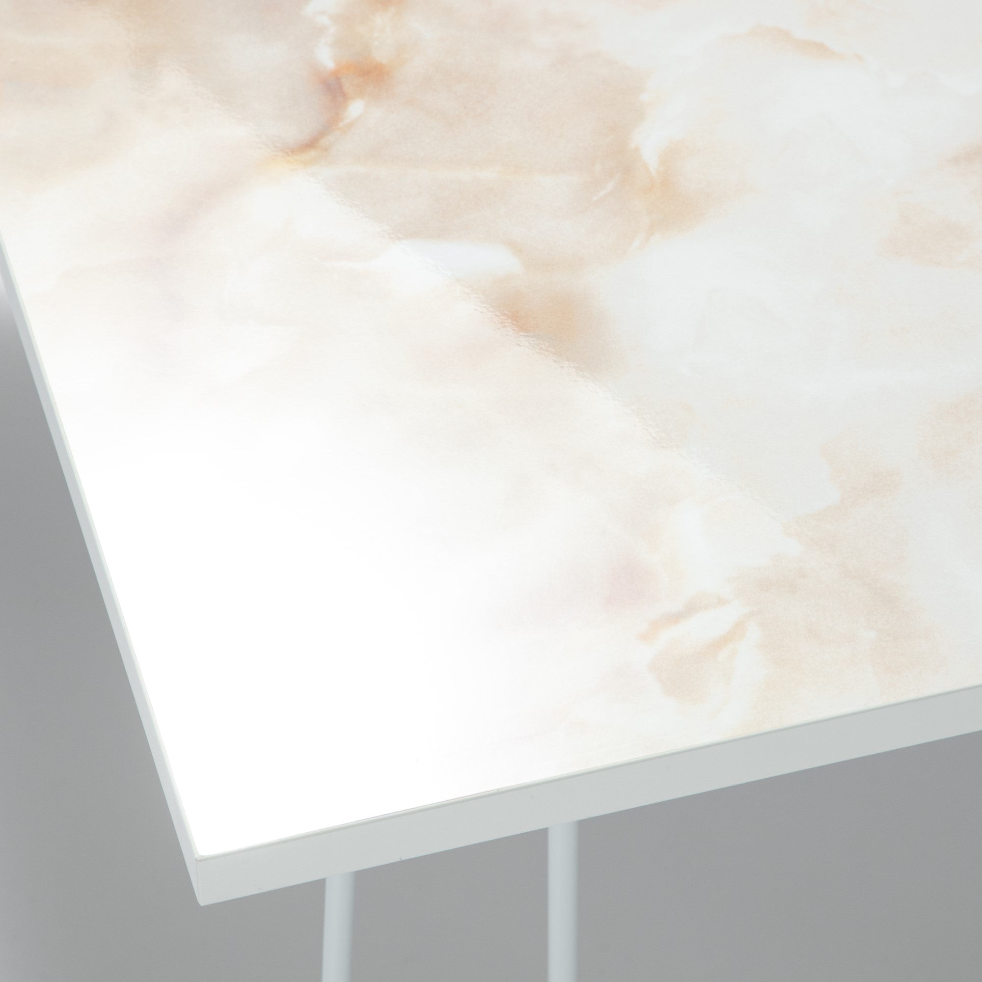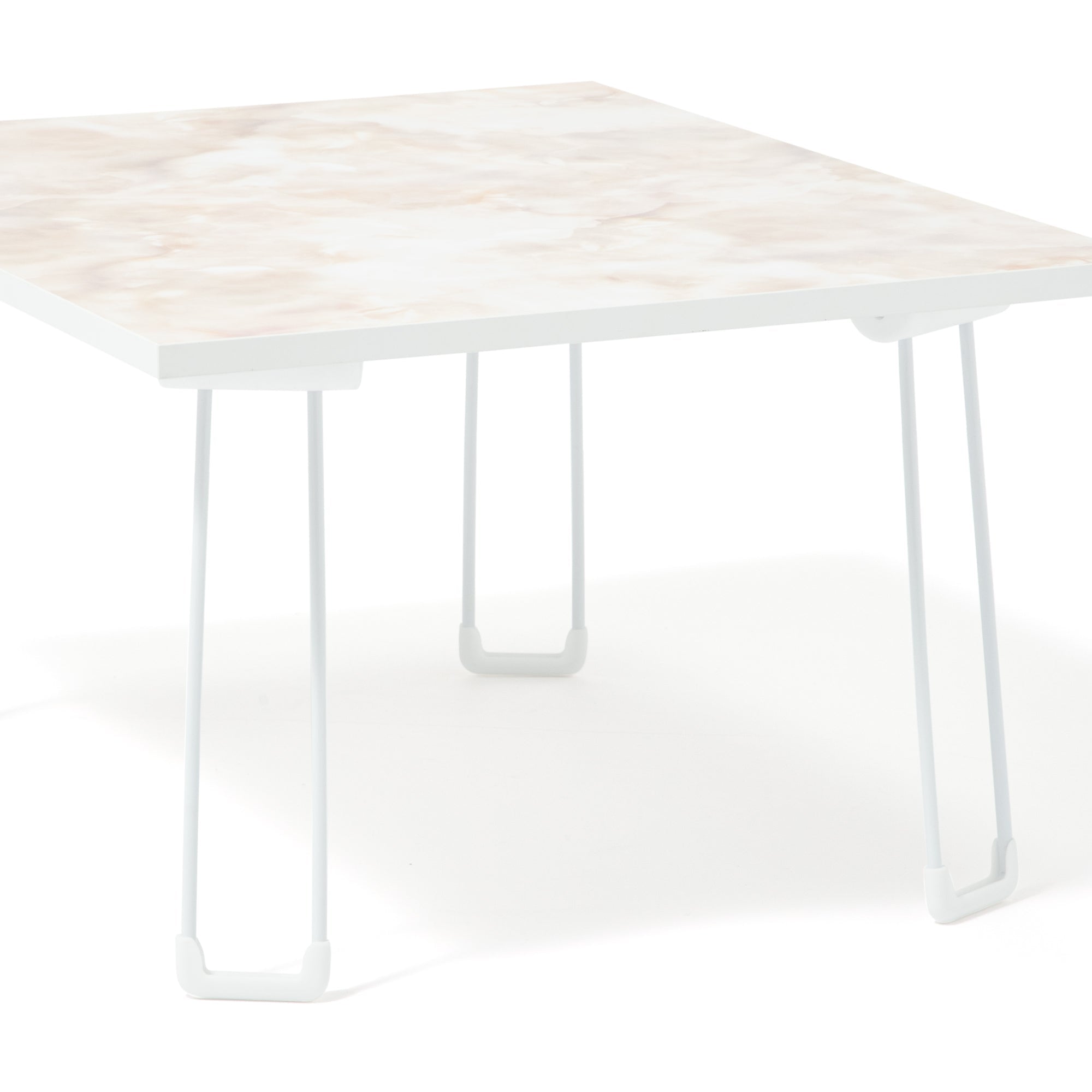 使わない時には立て掛けて、絵画のようにお部屋を飾れる折りたたみ式のテーブルです。15mmのしっかりした厚みを持つ天板は高光沢仕上げで光が反射され、まるで本物のアートのよう。縁に装飾がないシンプルでフラットなつくりなので端まで広々使えます。幅60cm×奥行48cmでひとり暮らしのお部屋や来客用にひとつあるとちょうどいいサイズ。急な来客やホームパーティーなどできっと活躍してくれるアイテムです。