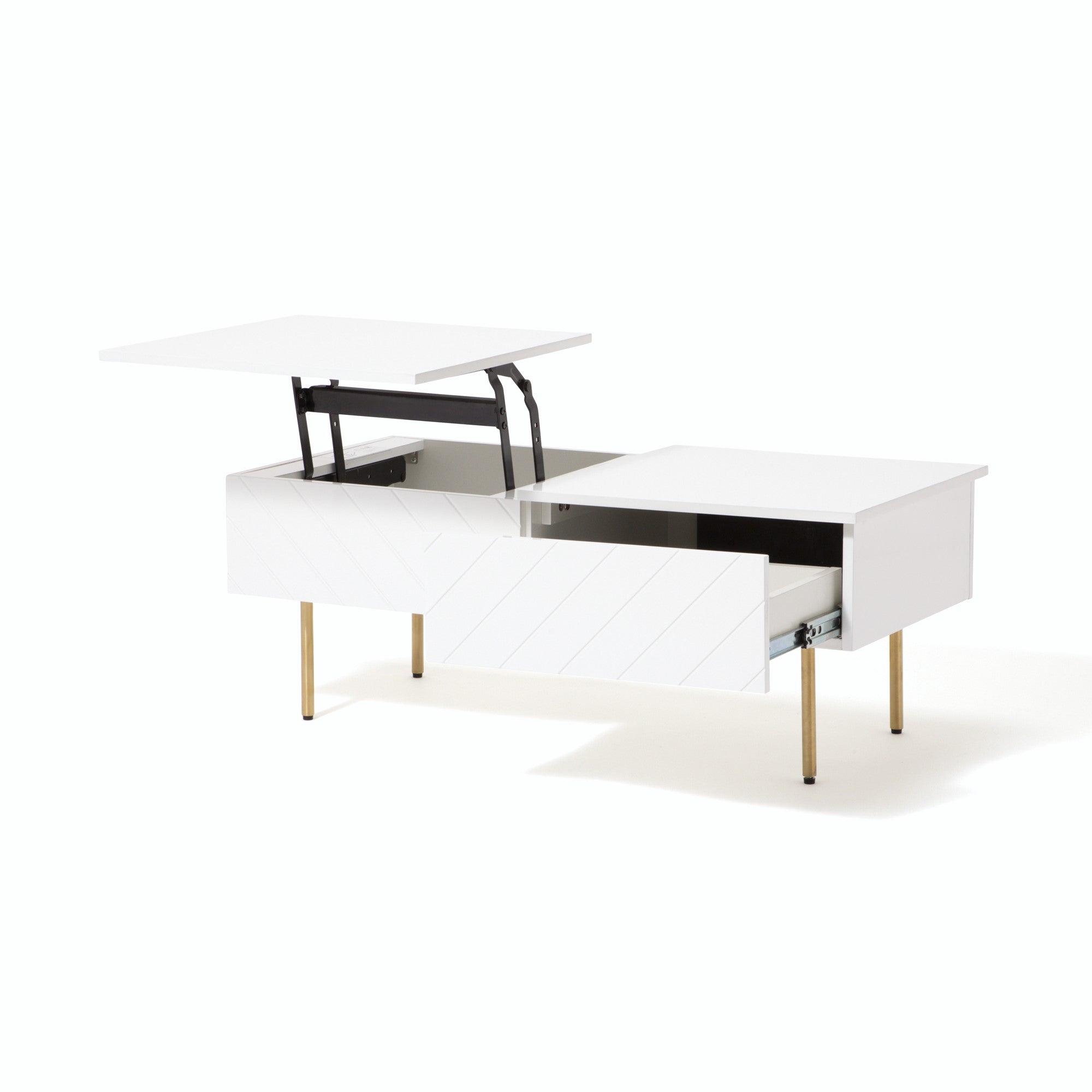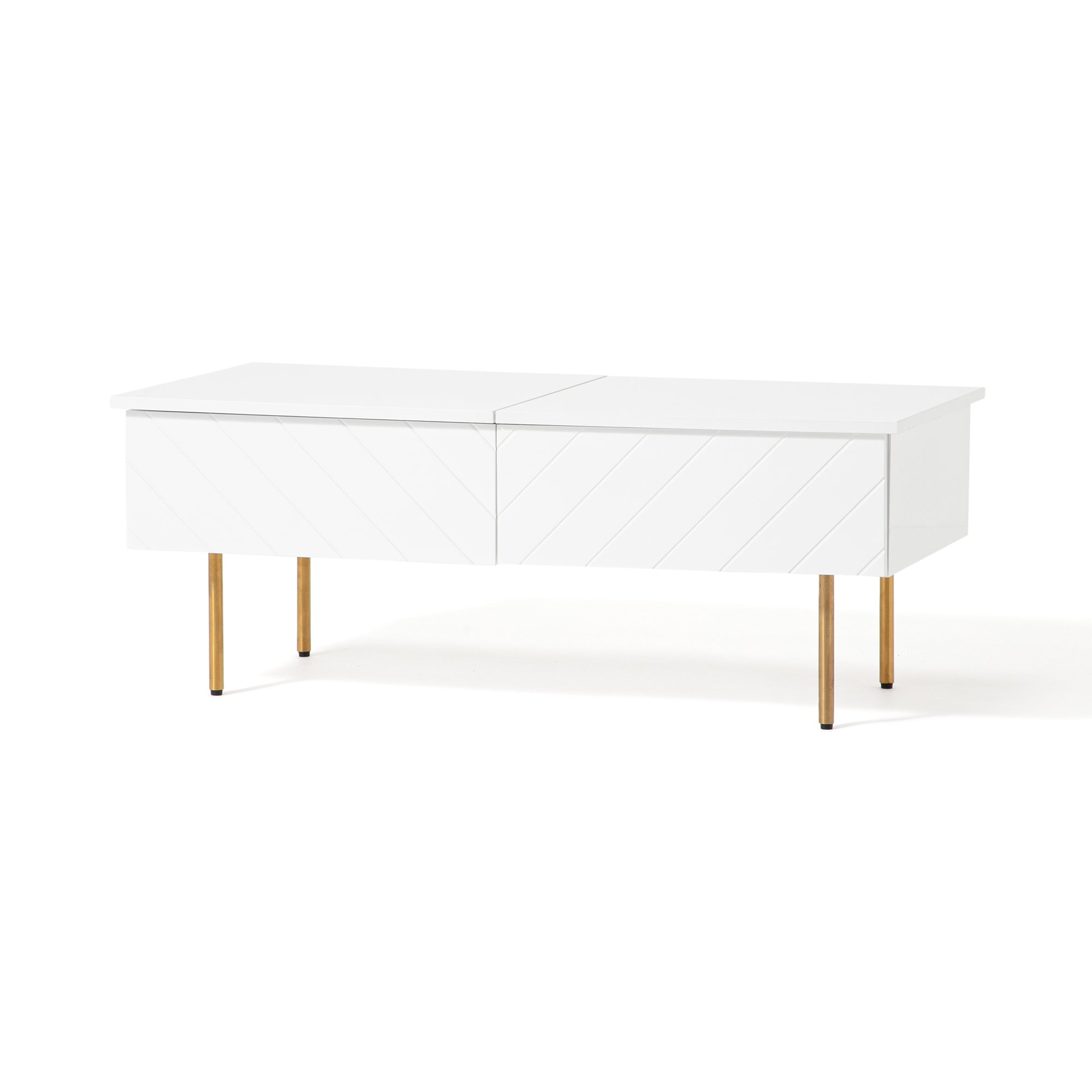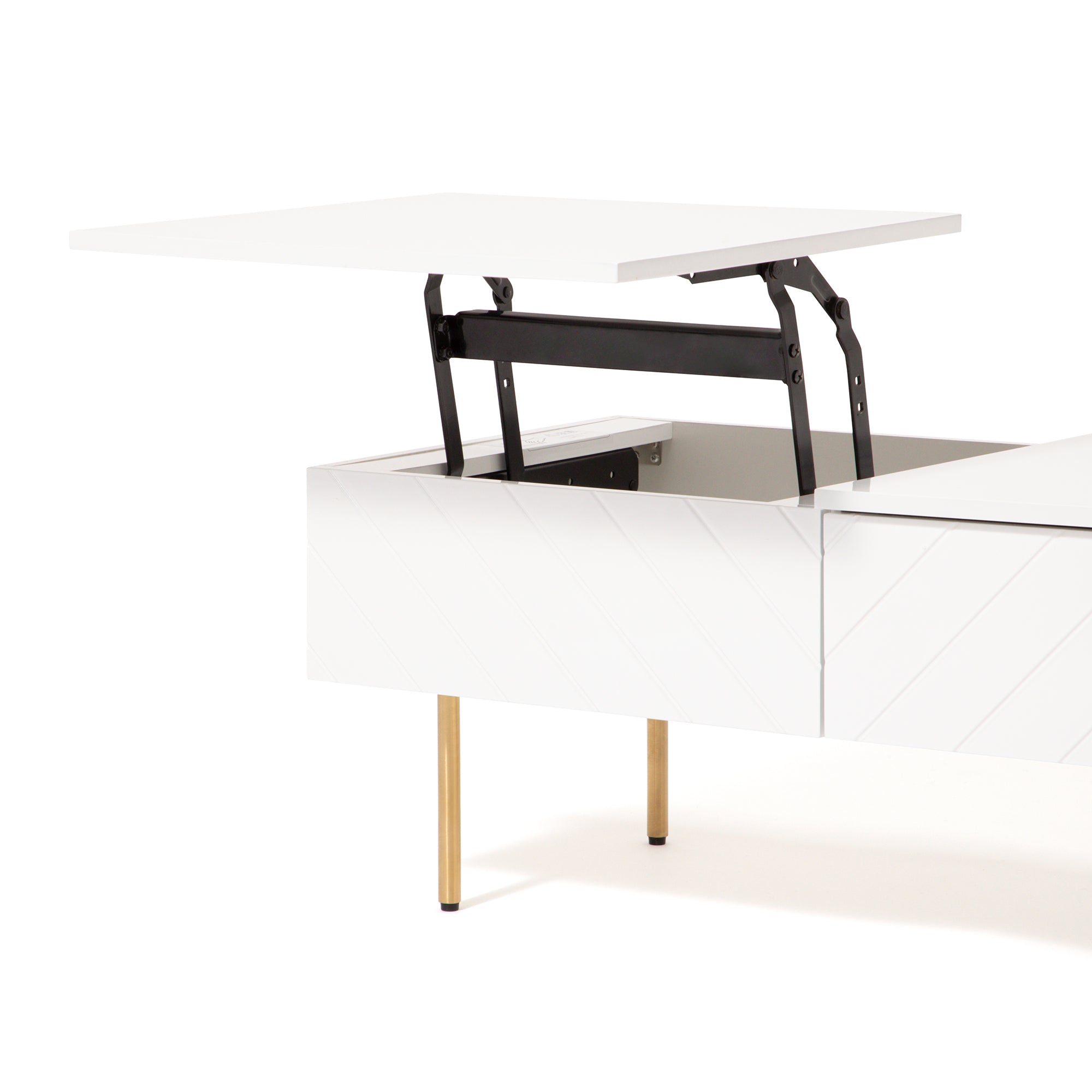前板のデザインとゴールド脚が特徴的な高級感のあるリフティングテーブルです。 食事や作業をする時に快適な高さに天板を持ち上げることができ、ソファの生活をより快適にできるテーブルです。 機能は求めつつしっかりとデザインを追及したテーブルです。