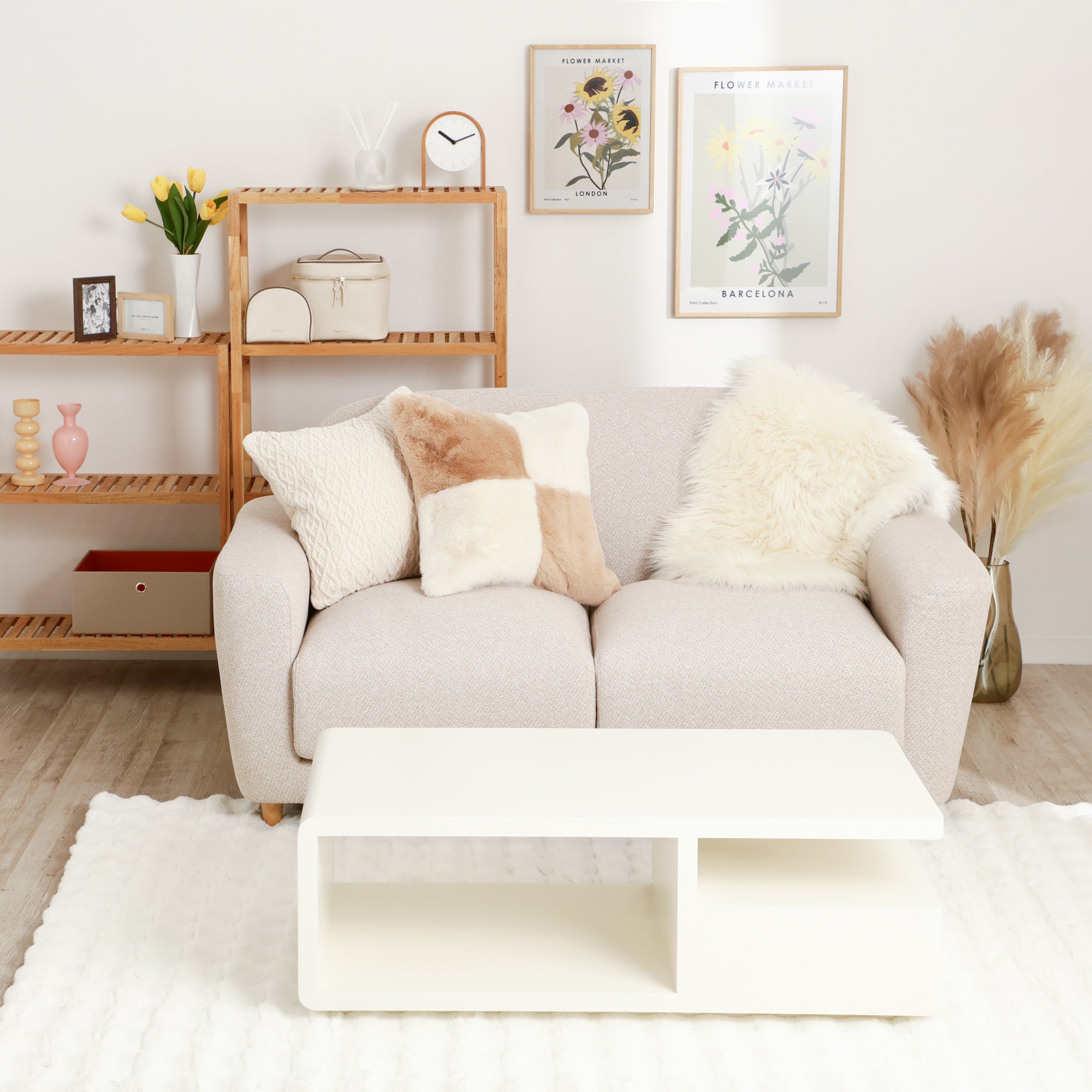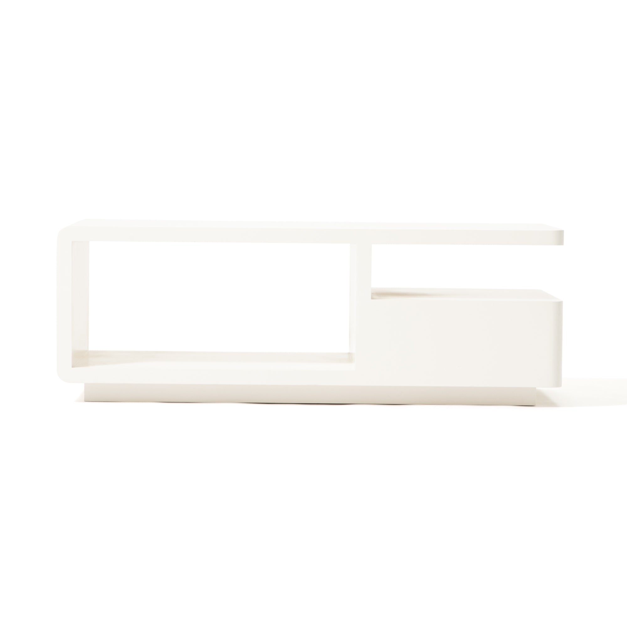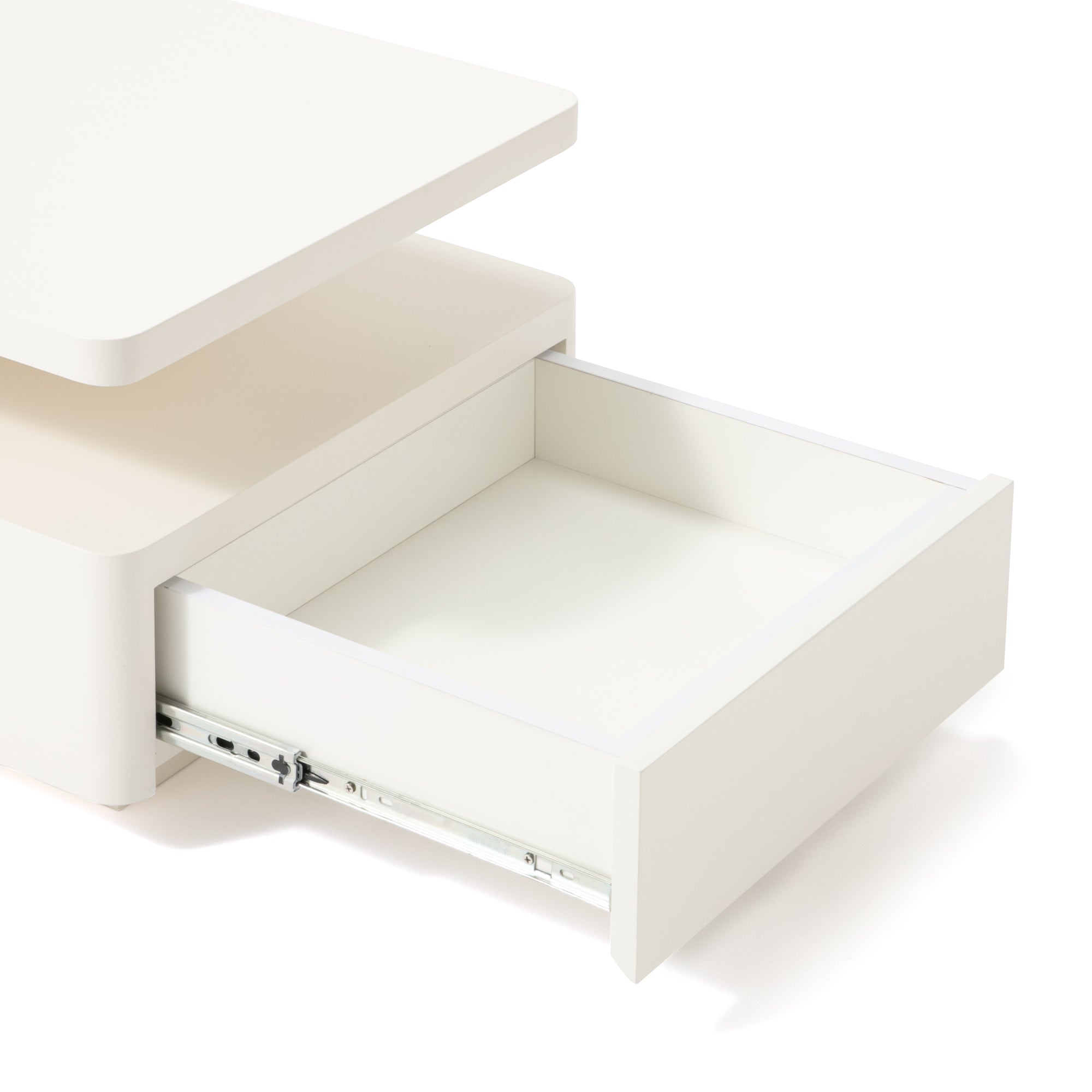 トレンド感のある曲線的でボリュームのあるデザインが特徴のコーヒーテーブルです。 中型~大型まで幅広いサイズのソファに合わせやすいサイズ感です。 天板下のオープン部分は飾り棚として使うのもおすすめ。 側面には引き出しが付いているので細々したものをしまっておくのに重宝します。 お気に入りの雑貨を飾ったり、自由な発想で素敵な空間づくりを楽しんでいただきたいという想いから、「マーレ/marle」(造語)=marvelous(素敵) + leeway(自由)」と名付けました。 耐荷重:天板10kg、引き出し3kg
