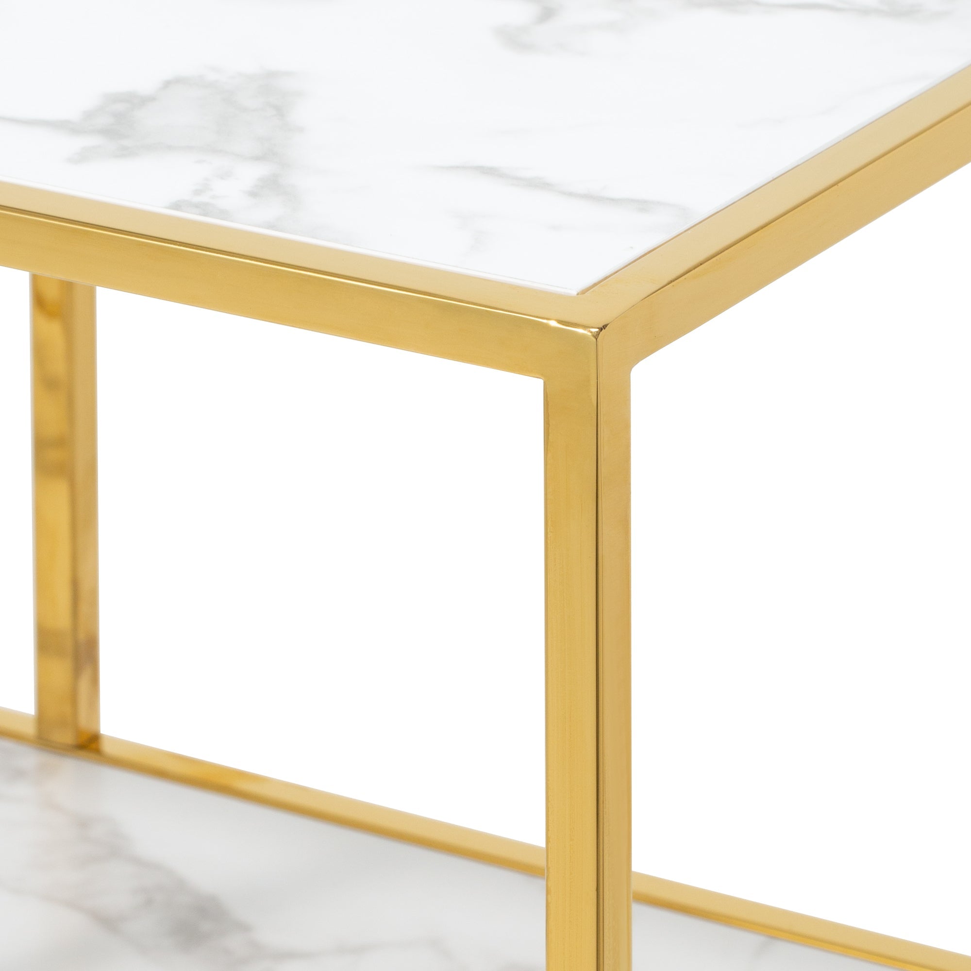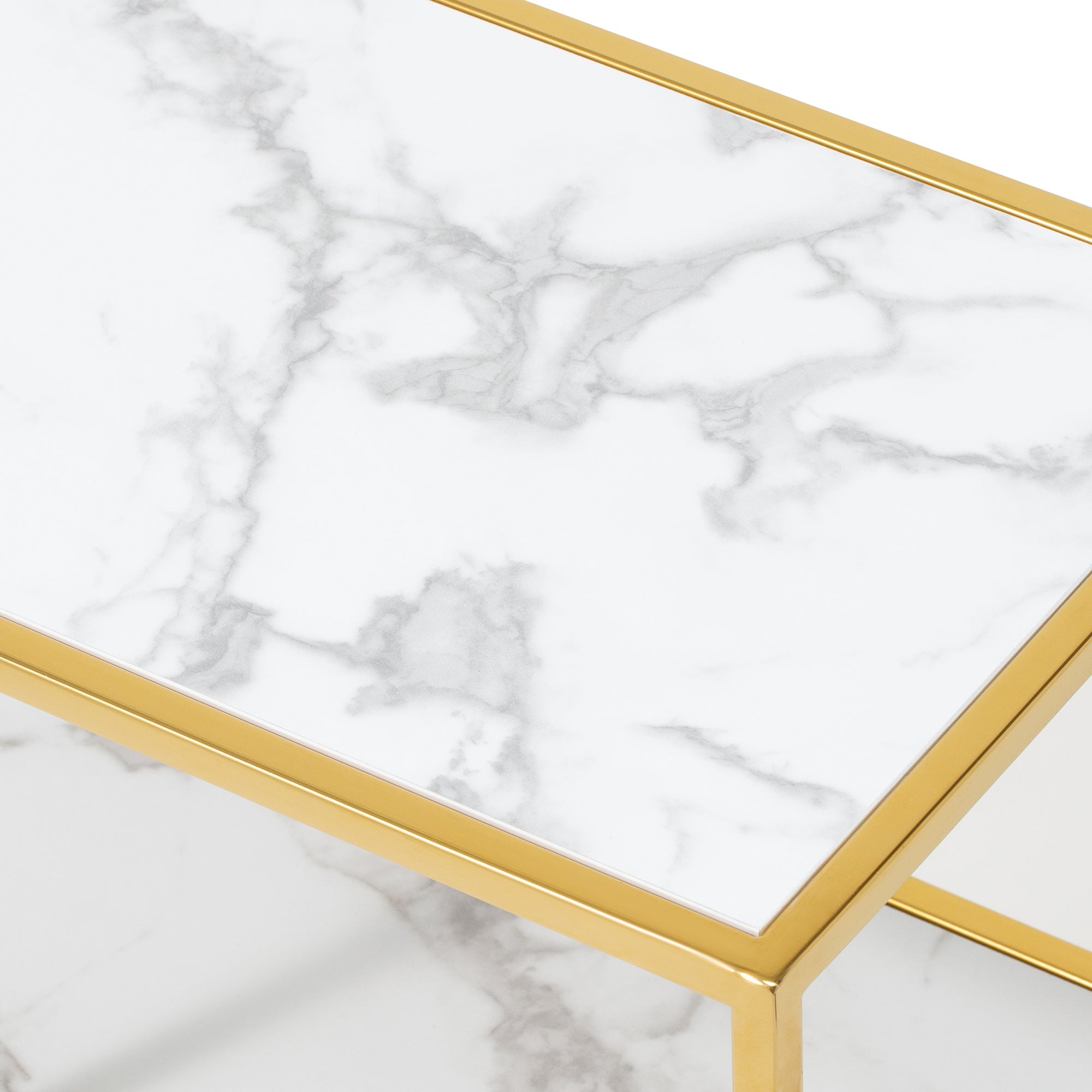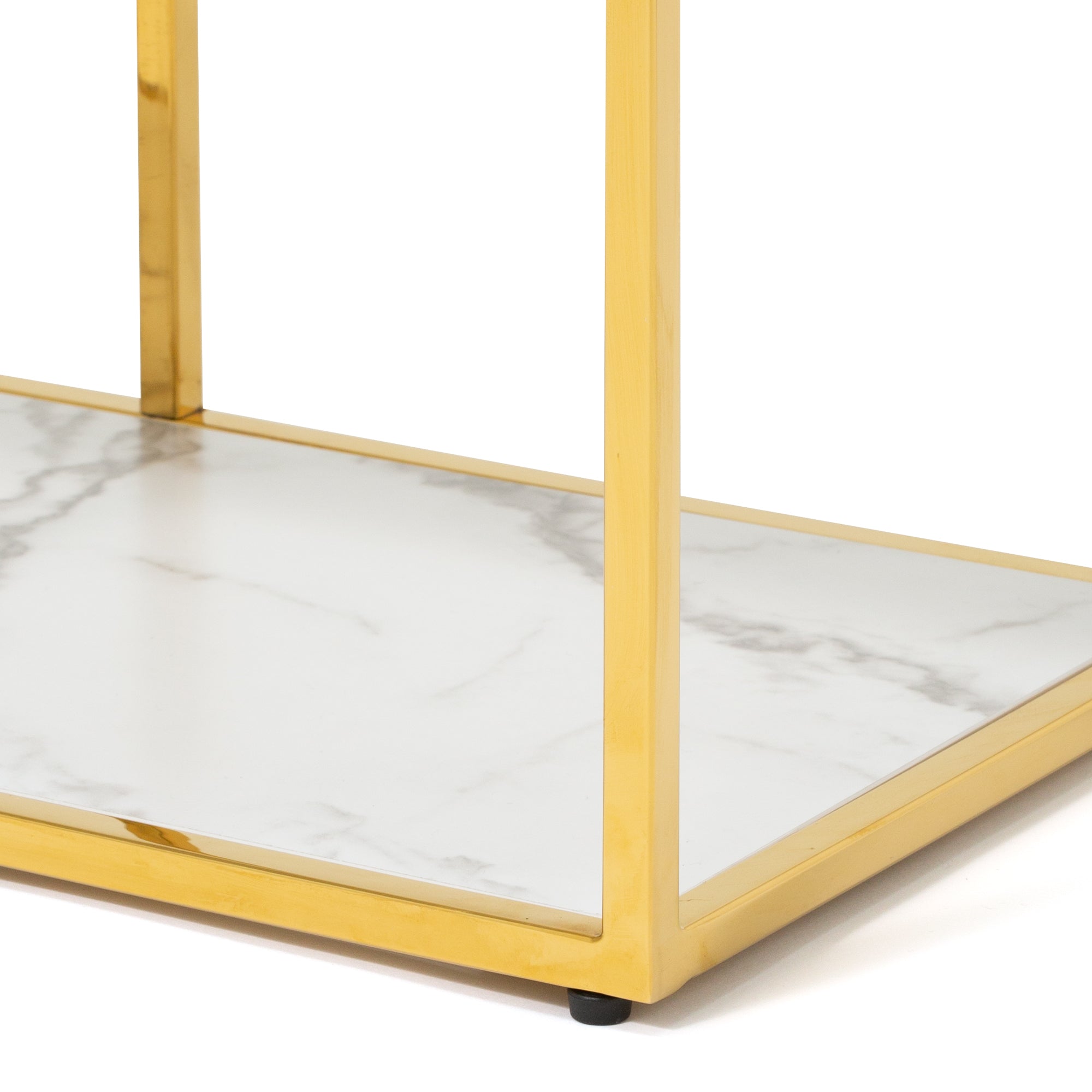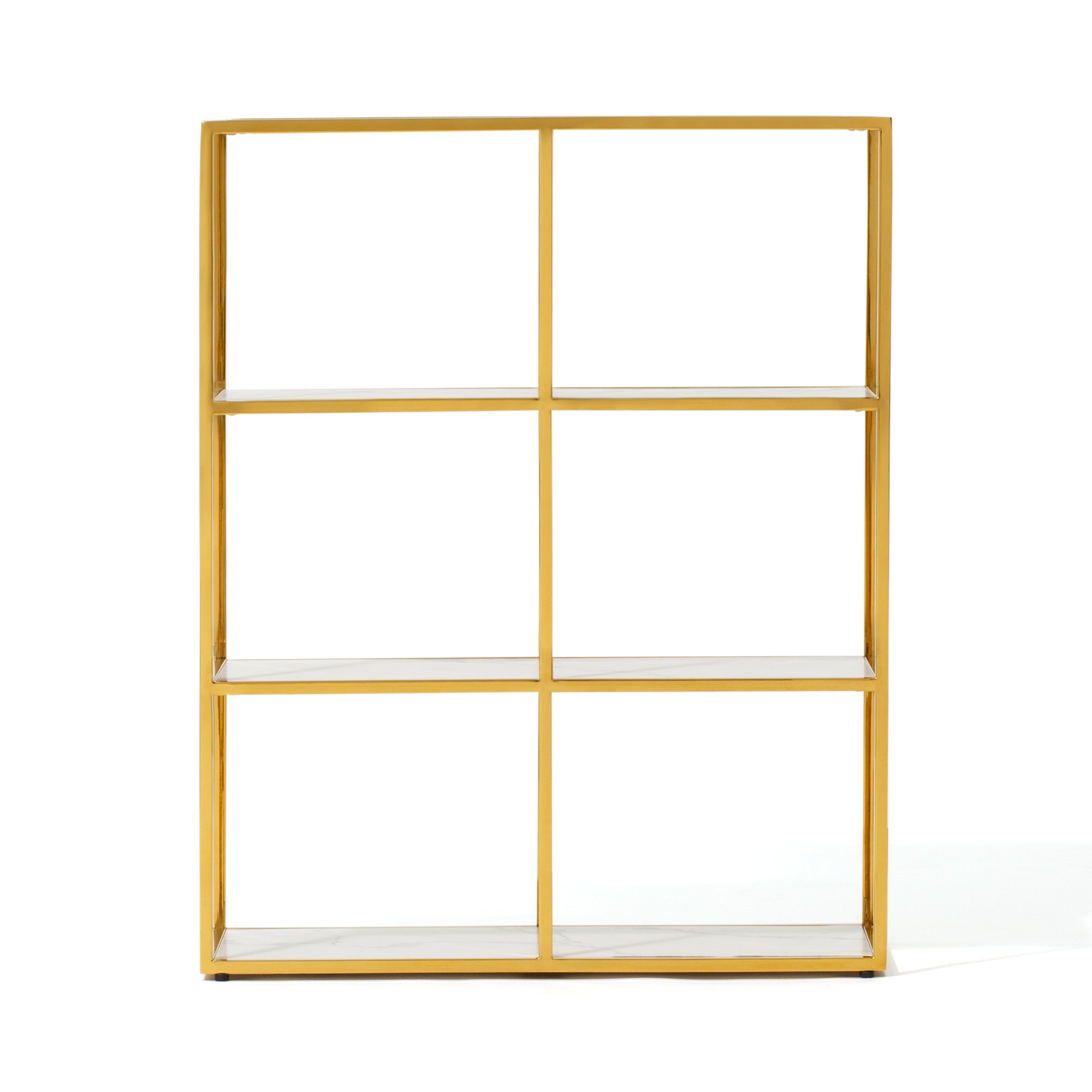 細身のゴールドフレームに大理石柄のシートをあしらった、高級感のあるシェルフです。 コンパクトなサイズ感とすっきりしたフレームで圧迫感を与えることなく、一人暮らしのお部屋にもぴったりです。 シリーズで並べて置けば収納力もさらにアップし、大型のお部屋にもきれいに映えます。 アンクレットソファ、シュエットソファと合わせると空間を煌びやかに彩ります。 ゴールドフレームが小物をいっそう際立たせてくれるためお洒落に収納できます。 棚板にはメラミン素材を使用しているため、耐久性があり、傷もつきにくいです。 書籍やフラワーベースを置いても安心です。 大きすぎないサイズ感で間取りを選ばずご利用いただけます。 ステンレスフレームが床を傷つけないよう、脚部パーツをご用意しています。 ダイニングやキッチンに置いて食器をディスプレイしても映えるデザインです。 TVボードやシェルフを並べて置けば広めのリビングにもきれいに映えます。 ボタニカルなお部屋にも、スタイリッシュさをプラスしてくれます。 シェルフに合わせるインテリアによって、可愛いテイストにも、恰好良いテイストにも。お部屋の雰囲気を残したまますっきりと収納することができます。 同じレーヌシリーズのネストテーブルと合わせればお部屋全体の統一感が生まれます。 デスクと並べてリモートワークも快適に。 自分だけのお気に入りの空間をぜひレーヌシェルフでデザインしてください。