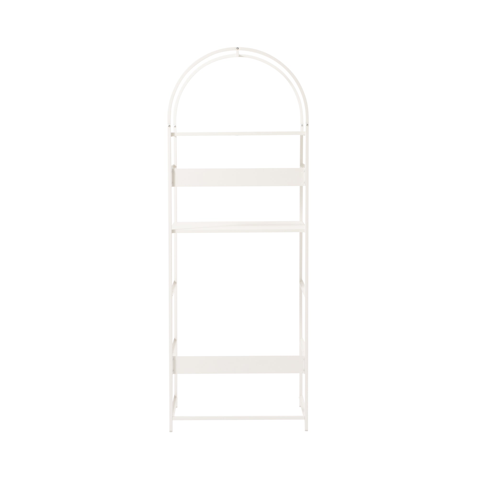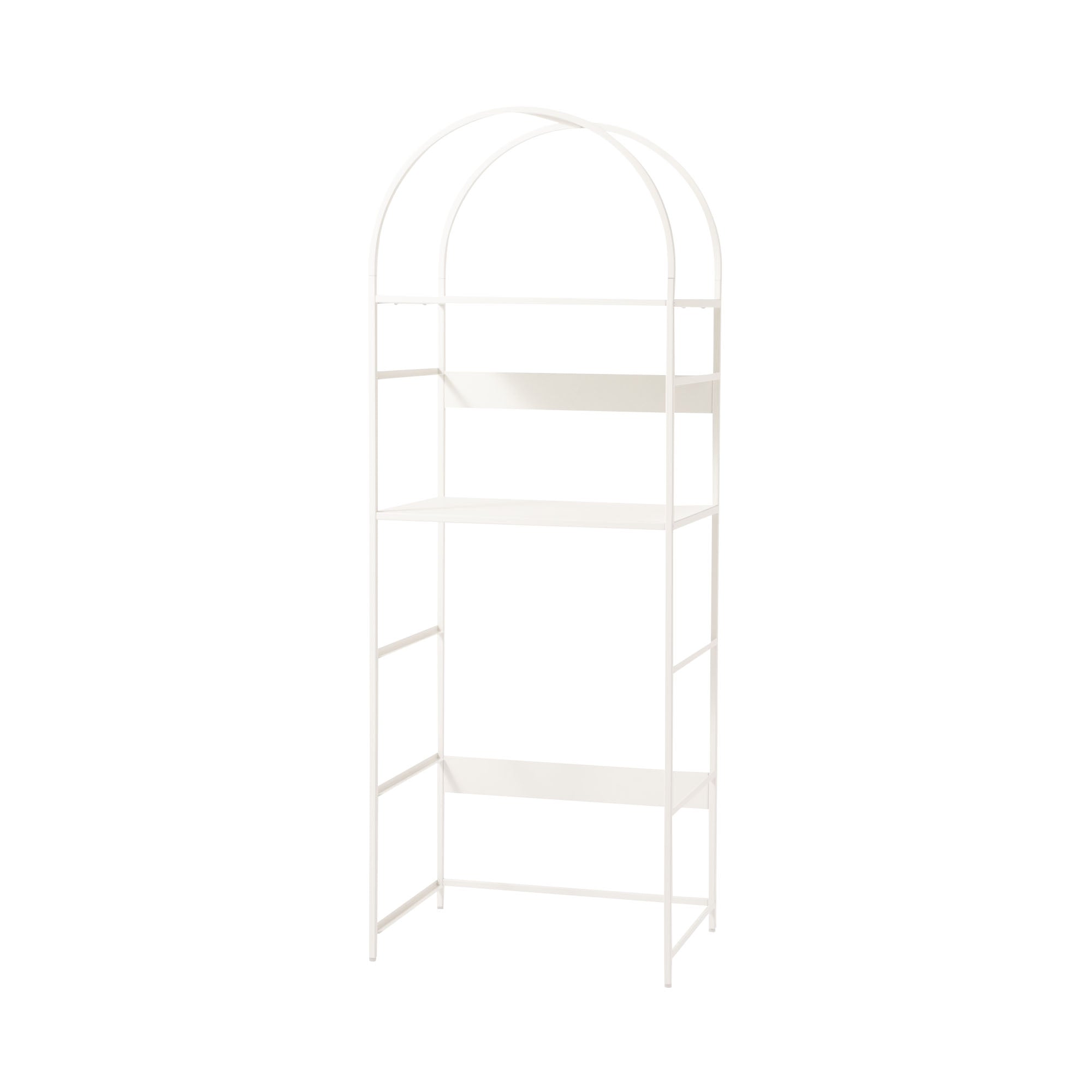 アーチを描いたおしゃれでスタイリッシュなオープンシェルフです。冷蔵庫やキッチン家電を収納して、一人暮らしの限られたキッチンスペースを有効活用することができます。また、ゴミ箱やワゴン収納などご自身の生活にあわせてカスタマイズできます。掃除のしやすいメラミンシート天板。別売りの棚板を追加することでリビングシェルフとしてもご使用いただけます。※本体付属の棚板は2枚です。※耐荷重:棚板1枚20kg(商品全体の耐荷重は60kg)