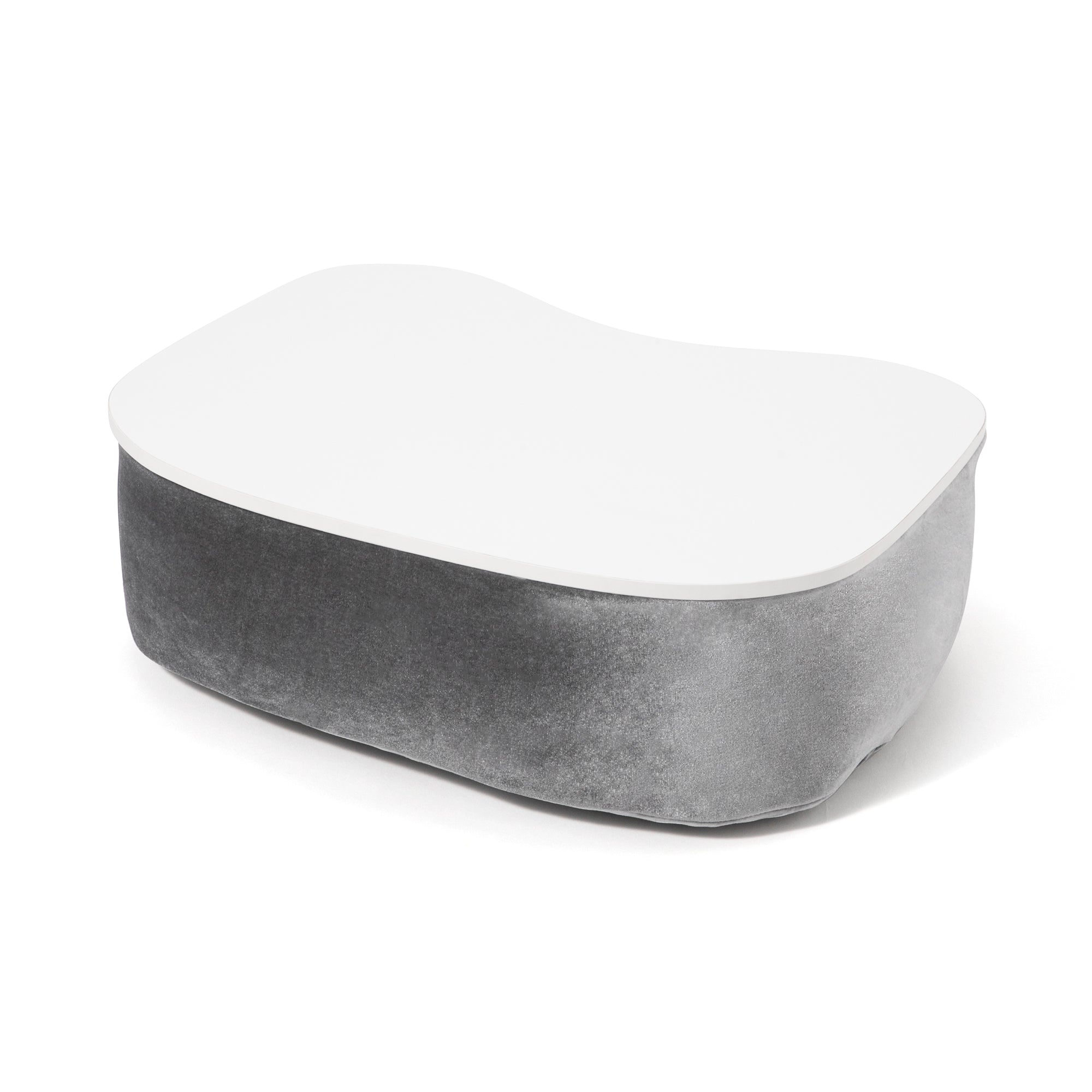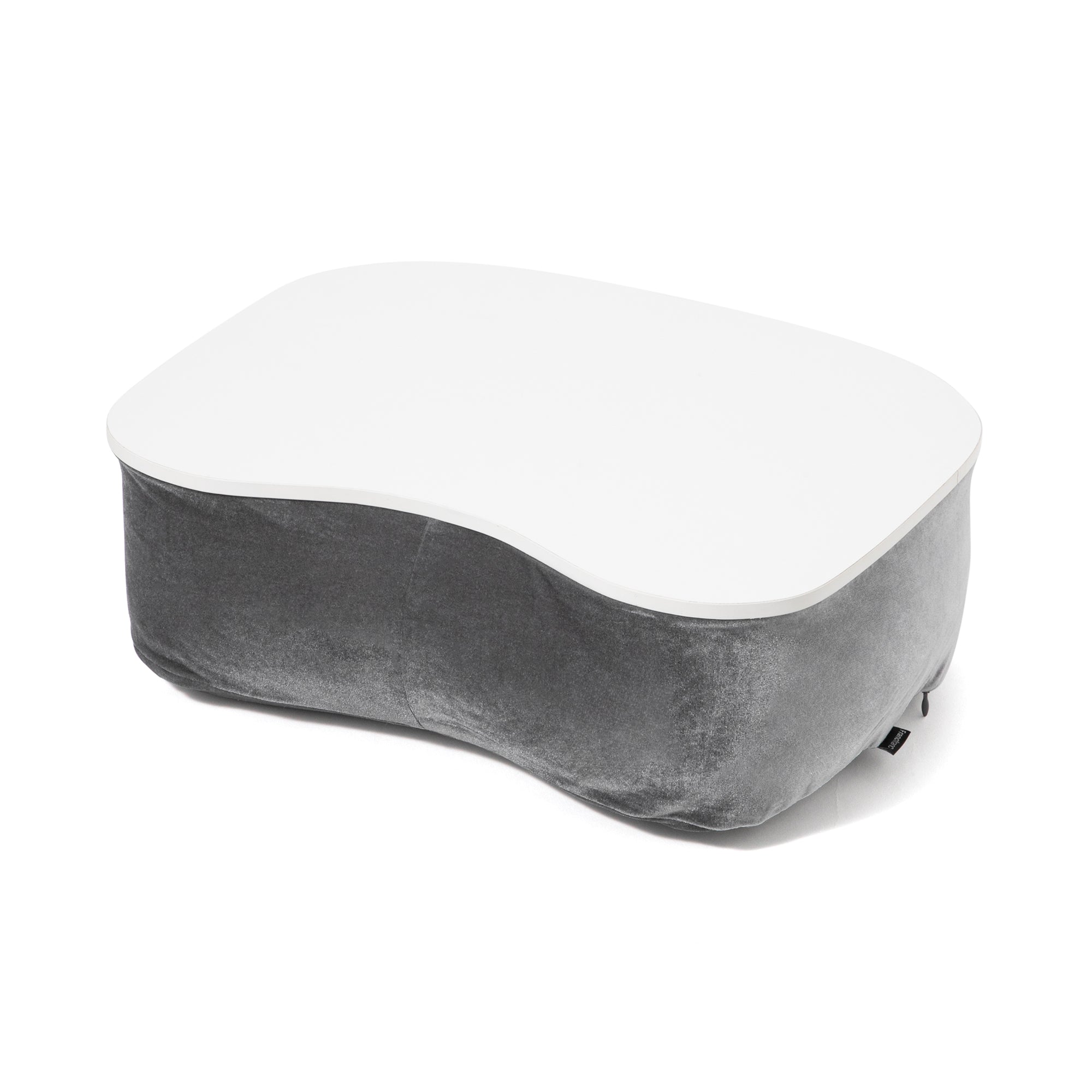 体にフィットするビーズクッションに天板がついたクッションテーブルです。膝の上に置いてノートPC作業ができ、クッションとしても使用可能です。好きな時、好きな場所で自分だけのスペースが確保できます。0.5~0.7mmの極小ビーズを使用しているので、もっちりとフィット感のある使い心地です。