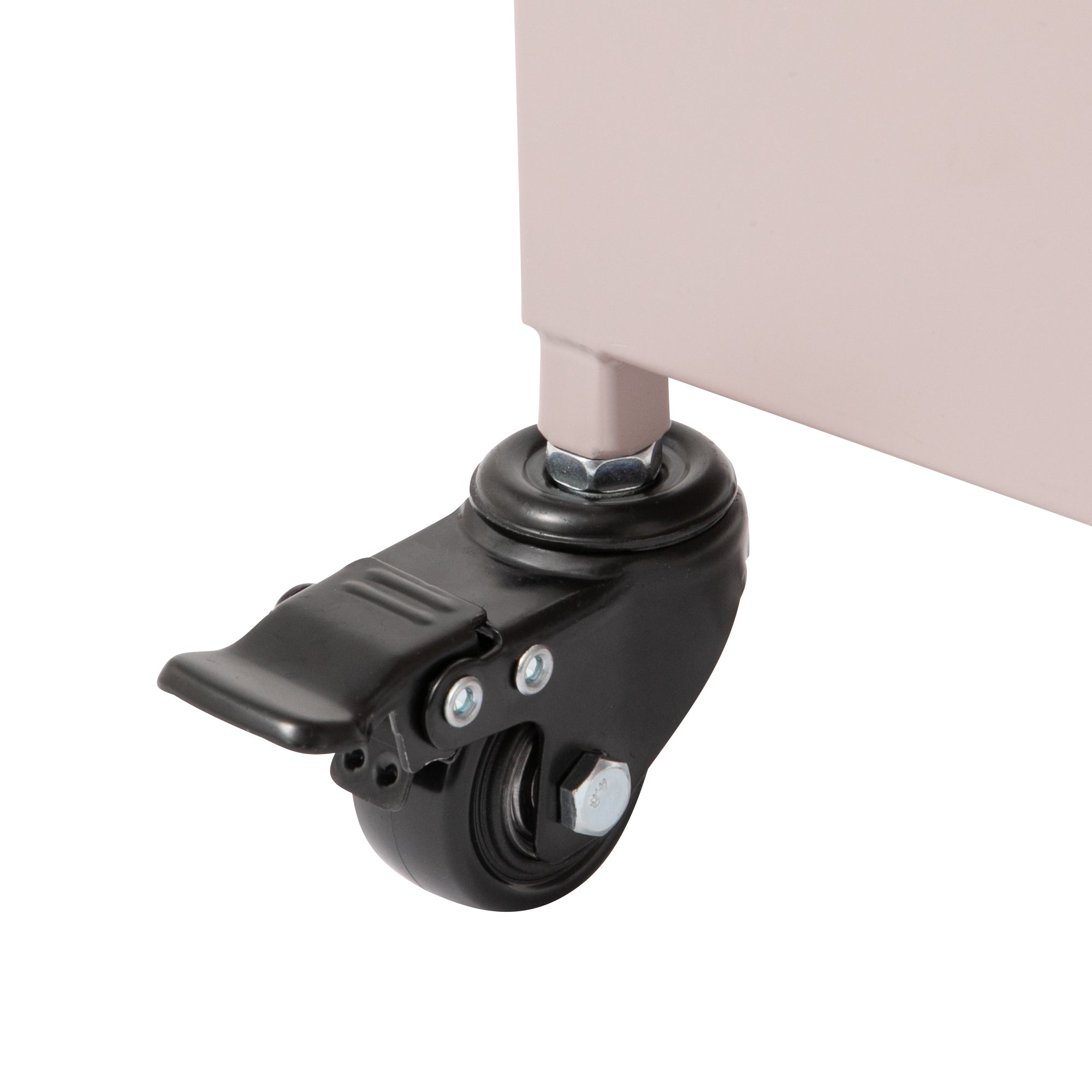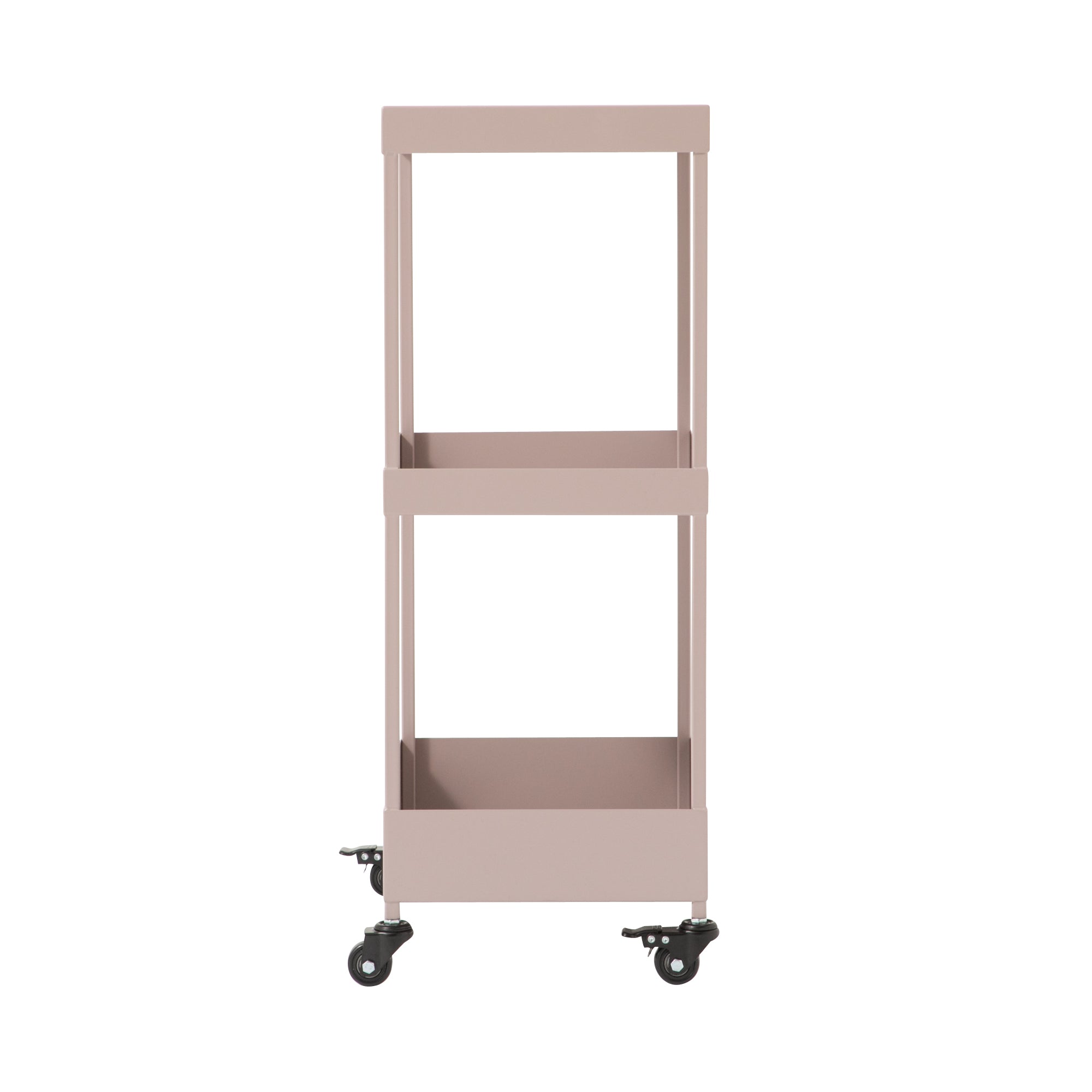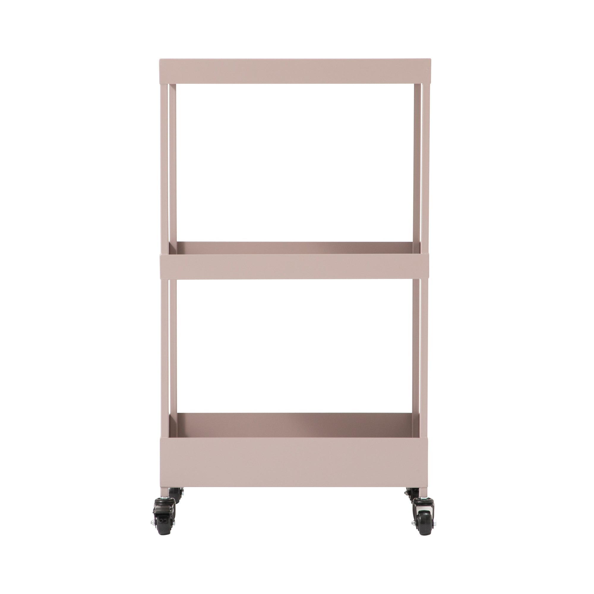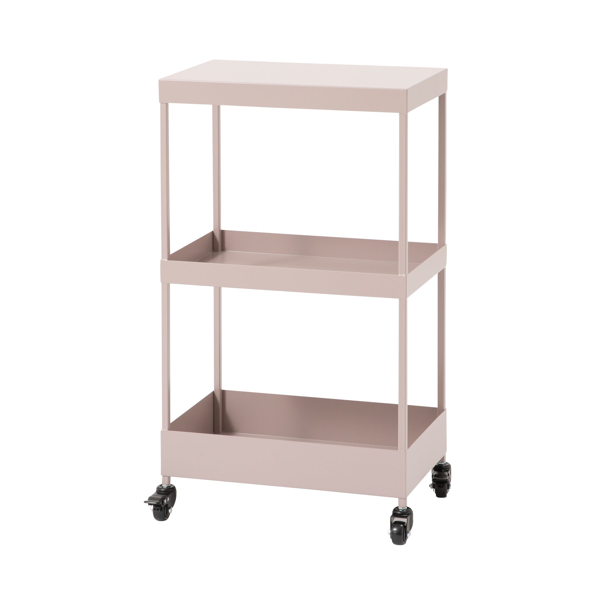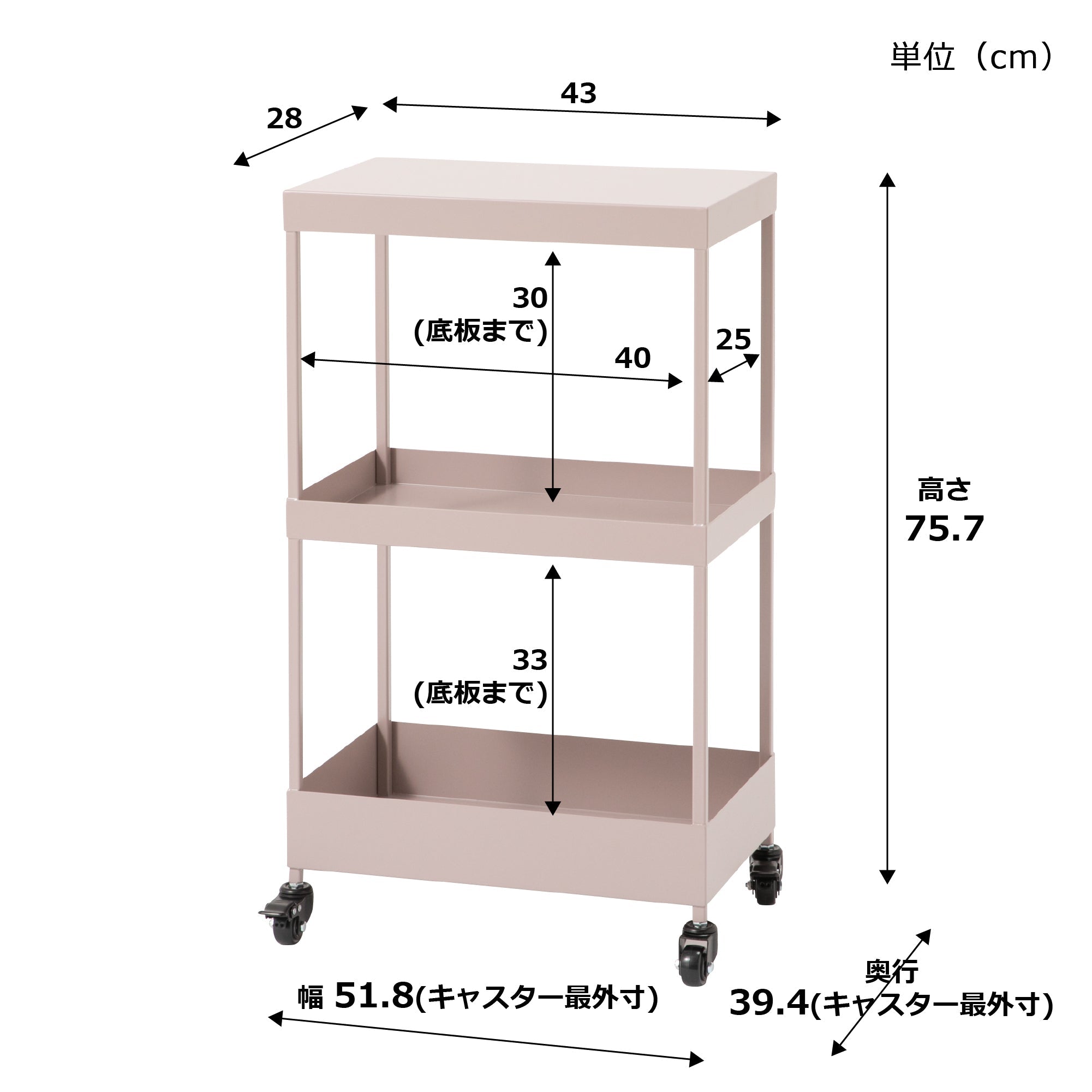 カラフルでお洒落なトレンドカラーが目を引くワゴンです。いろいろなシーンでさまざまな使い方ができるように、タオルや2Lペットボトル、柔軟剤やA4用紙など、様々なアイテムが収納+取り出しのしやすいサイズ感に設計しました。天板はフラットな仕様で、ダイニングテーブルよりもやや高めの設計にしているから、一人暮らしのキッチンでの調理台やデスクワーク時のサブデスクとしてもご使用いただけます。キャスターを取り付けるだけの簡単組み立てなのも嬉しいポイントです。生活に色と彩りを与える楽しさを表現して、「メリー/MERRY=楽しい・にぎやかな」と名付けました。耐荷重:天板5kg、中段5kg、下段12kg