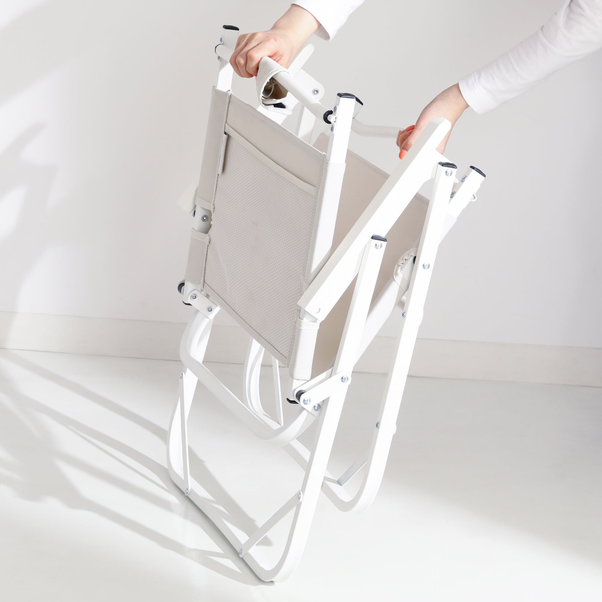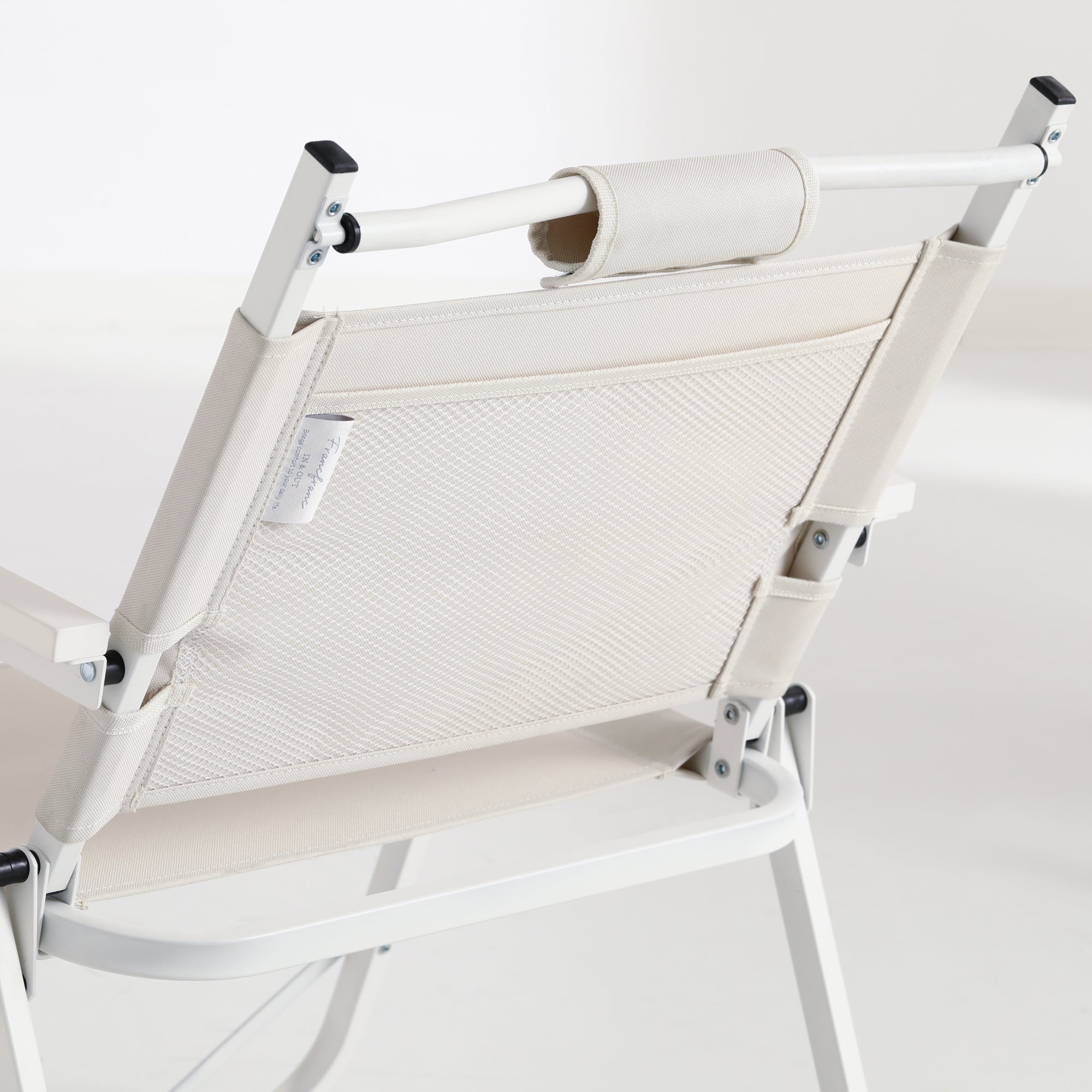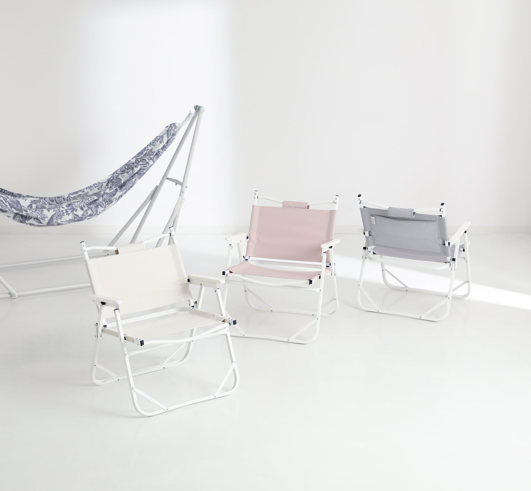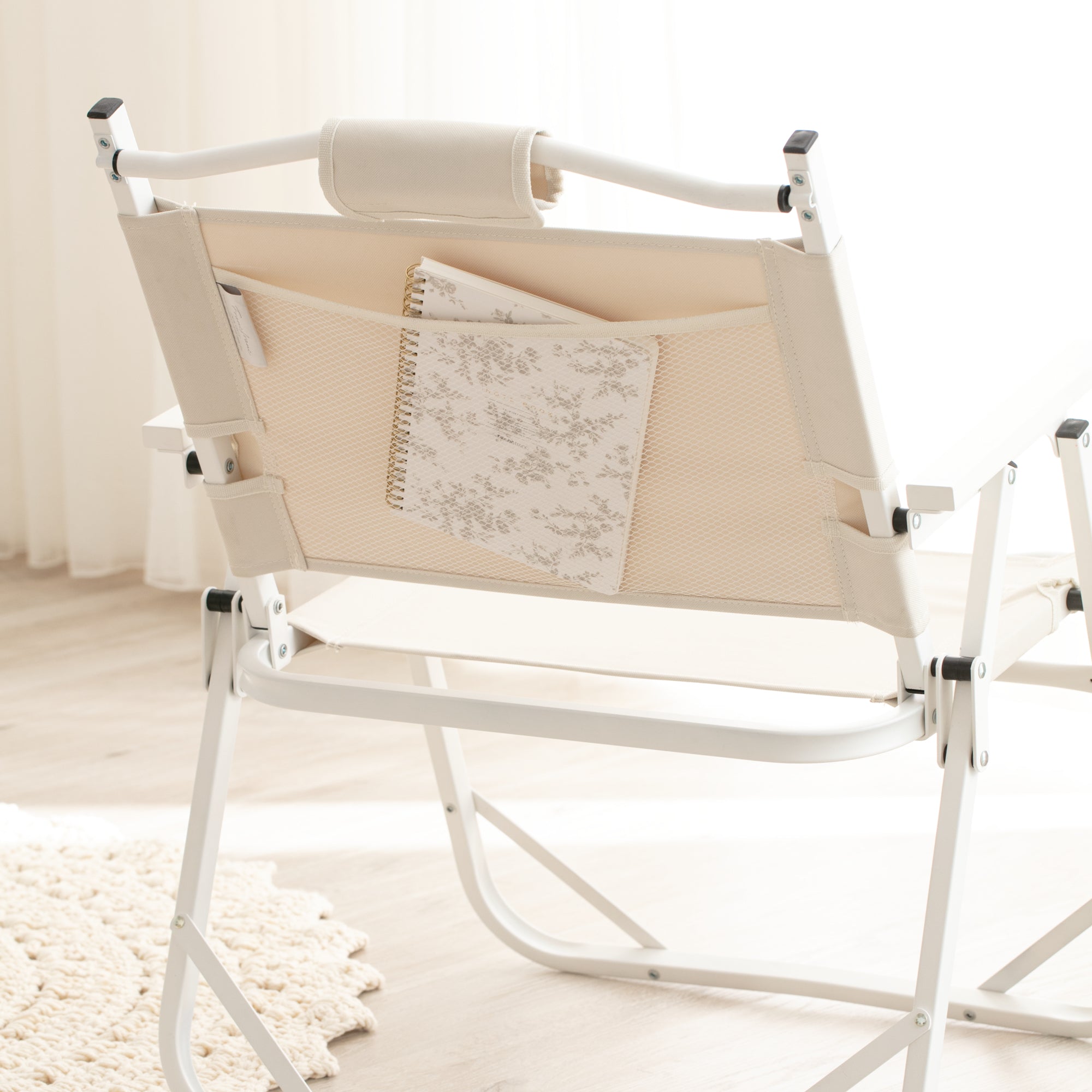 お部屋でも外でも使えるフォールディングチェアです。フレームの素材がアルミニウムで軽量なので、女性でも軽々持ち運びできます。スマートな肘掛けがあり、リラックスして座れます。背面にはメッシュのポケットつきで、小物を入れられ便利です。お部屋のちょっとしたスペースやべランピング、ピクニックやキャンプなど様々なシーンで活躍してくれるアイテムです。