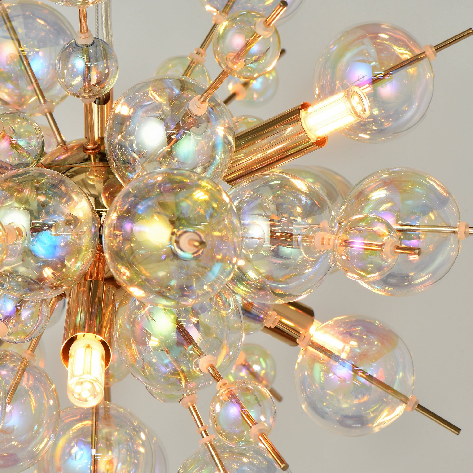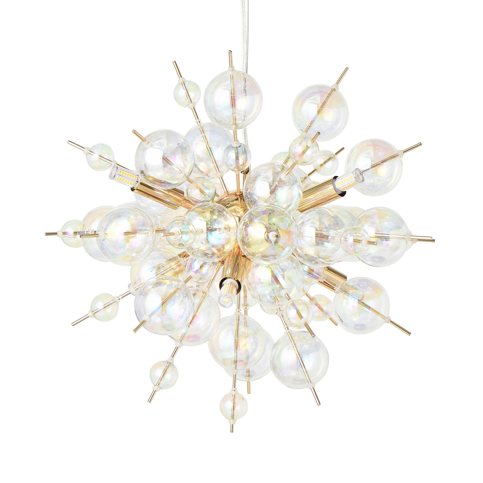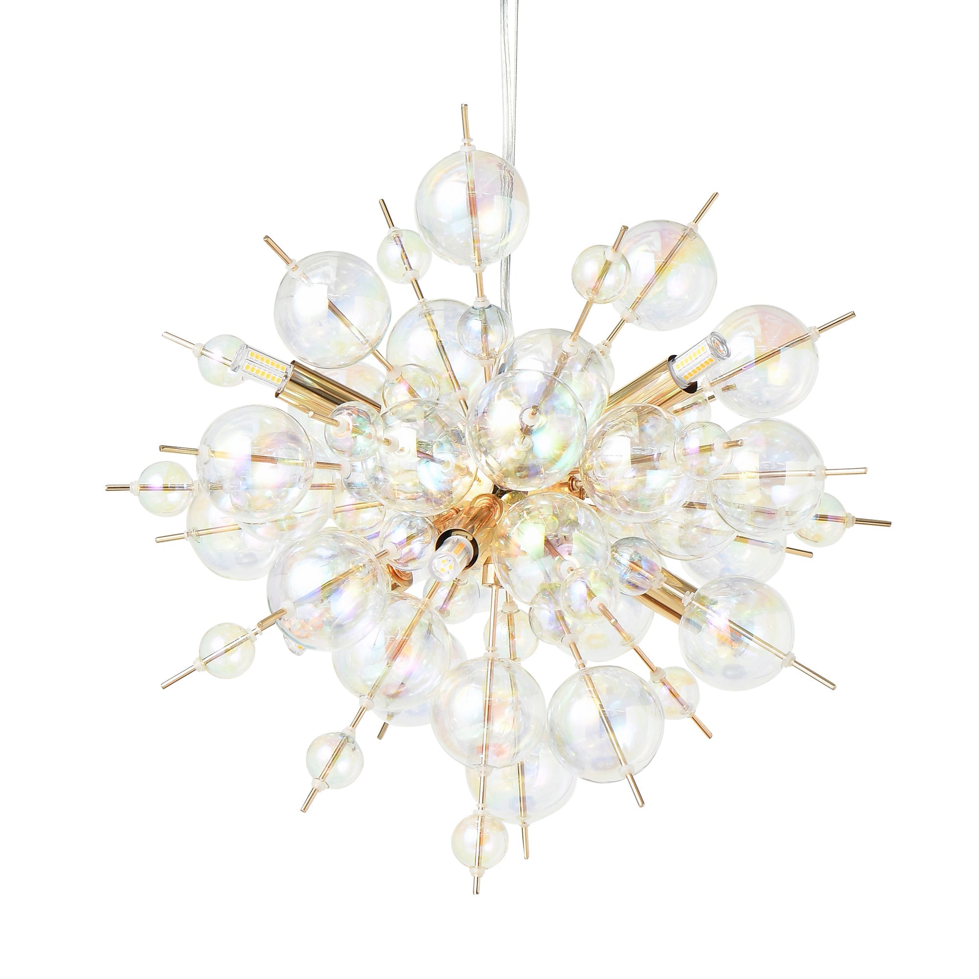 インテリアの主役になるバブルシャンデリアです。Francfrancでも人気のオーロラ仕様で、幻想的な輝きを演出します。6灯・2580lm相当の明るさで5畳程度の空間に適しています。複数使いや、他の照明との組み合わせでの使用もおすすめです。