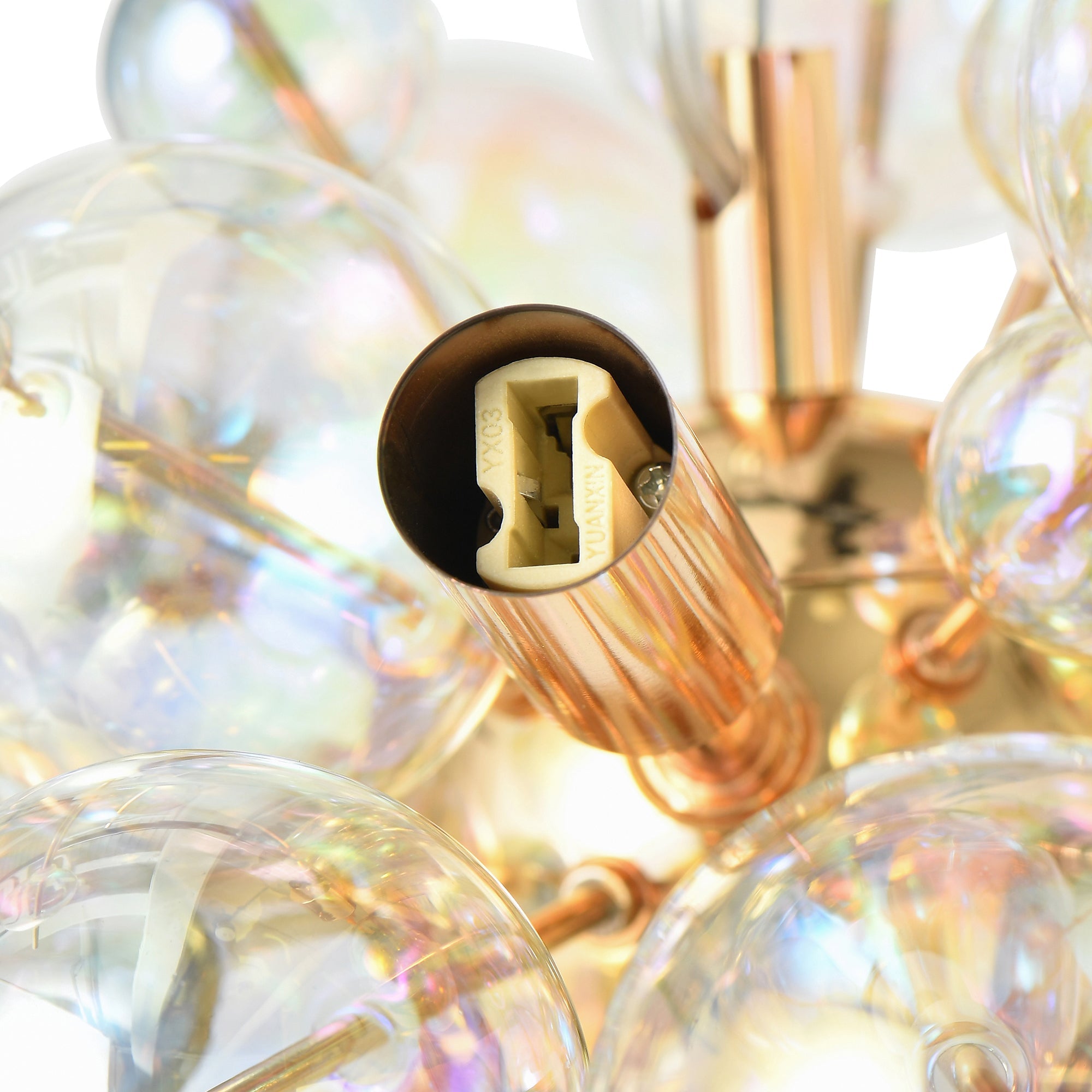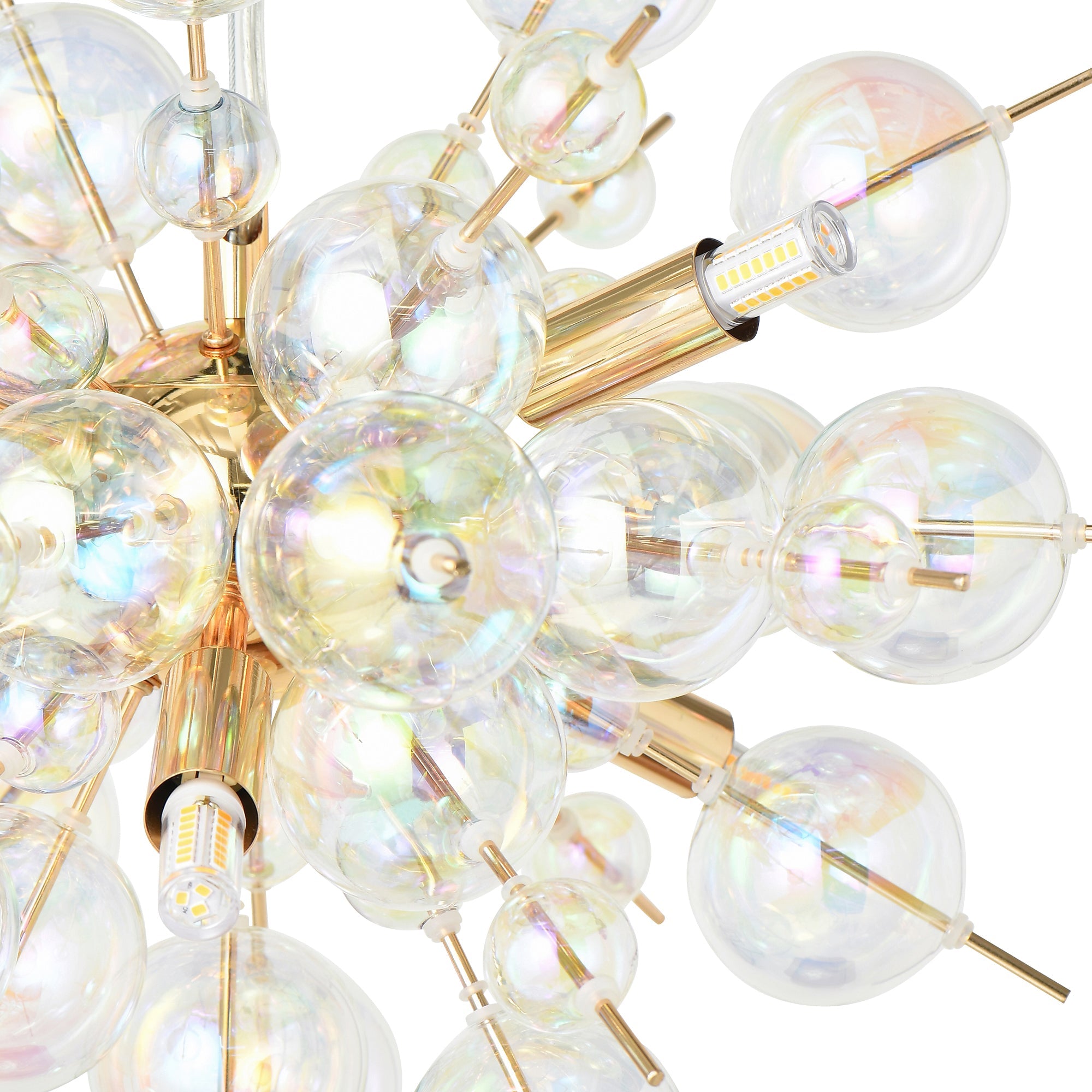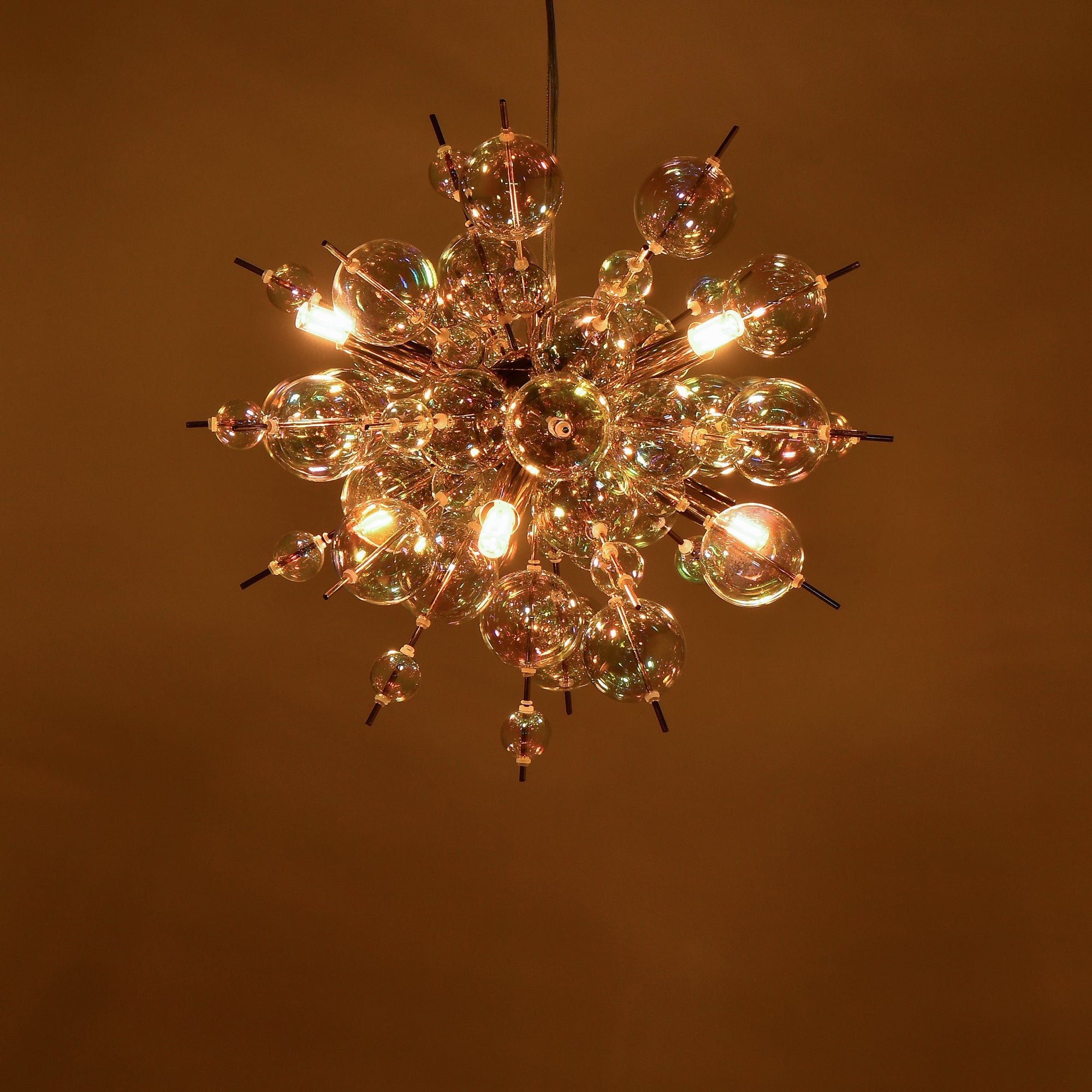 インテリアの主役になるバブルシャンデリアです。Francfrancでも人気のオーロラ仕様で、幻想的な輝きを演出します。6灯・2580lm相当の明るさで5畳程度の空間に適しています。複数使いや、他の照明との組み合わせでの使用もおすすめです。