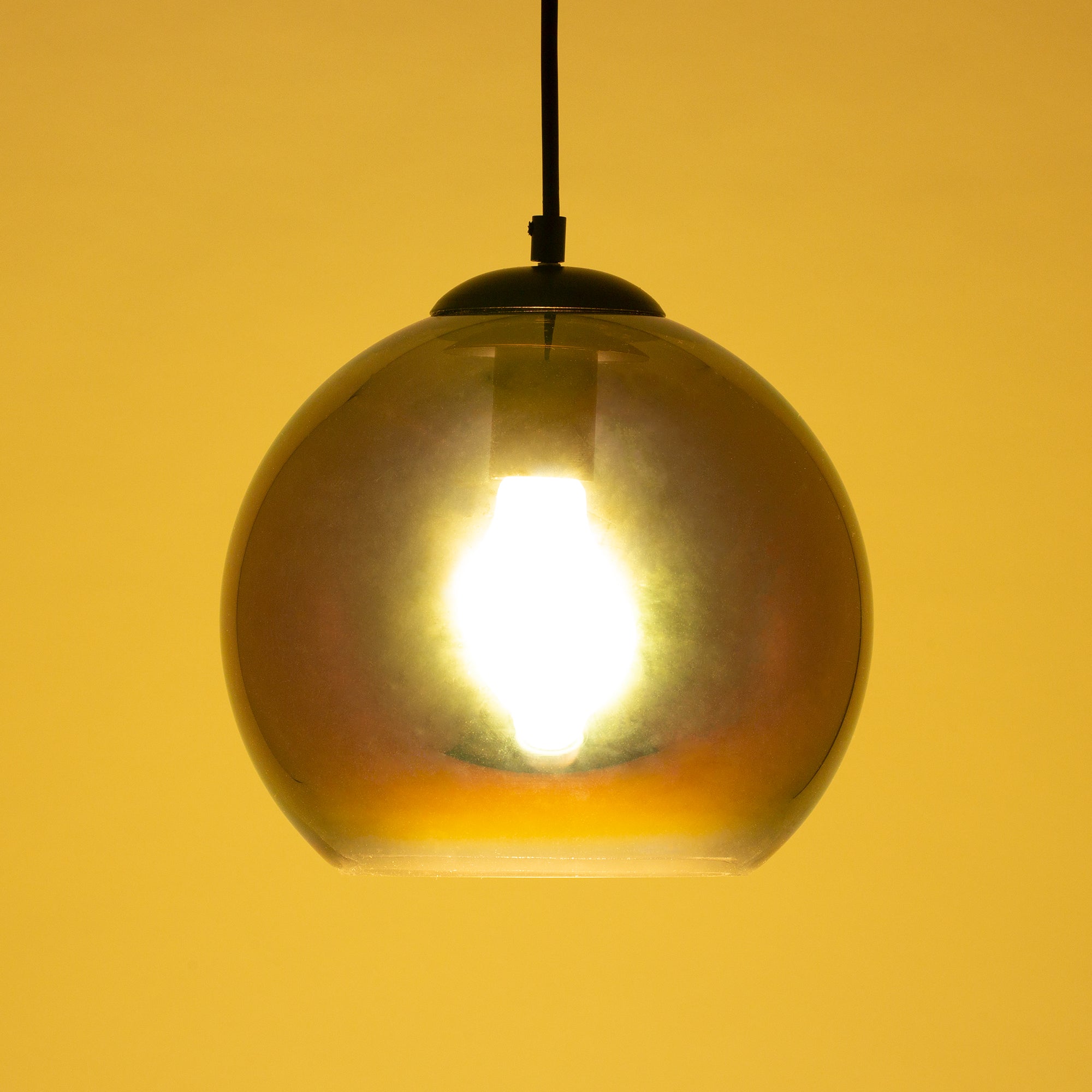 幻想的な玉虫色の色味が特徴の美しいペンダントランプです。完全に遮光せず光を通すのでライトをつけているときはもちろんのこと、つけていないときもお部屋を明るくしてくれます。ライトをつけると玉虫色から落ち着いた明かりが現れます。昼と夜で雰囲気ががらりと変わる照明です。