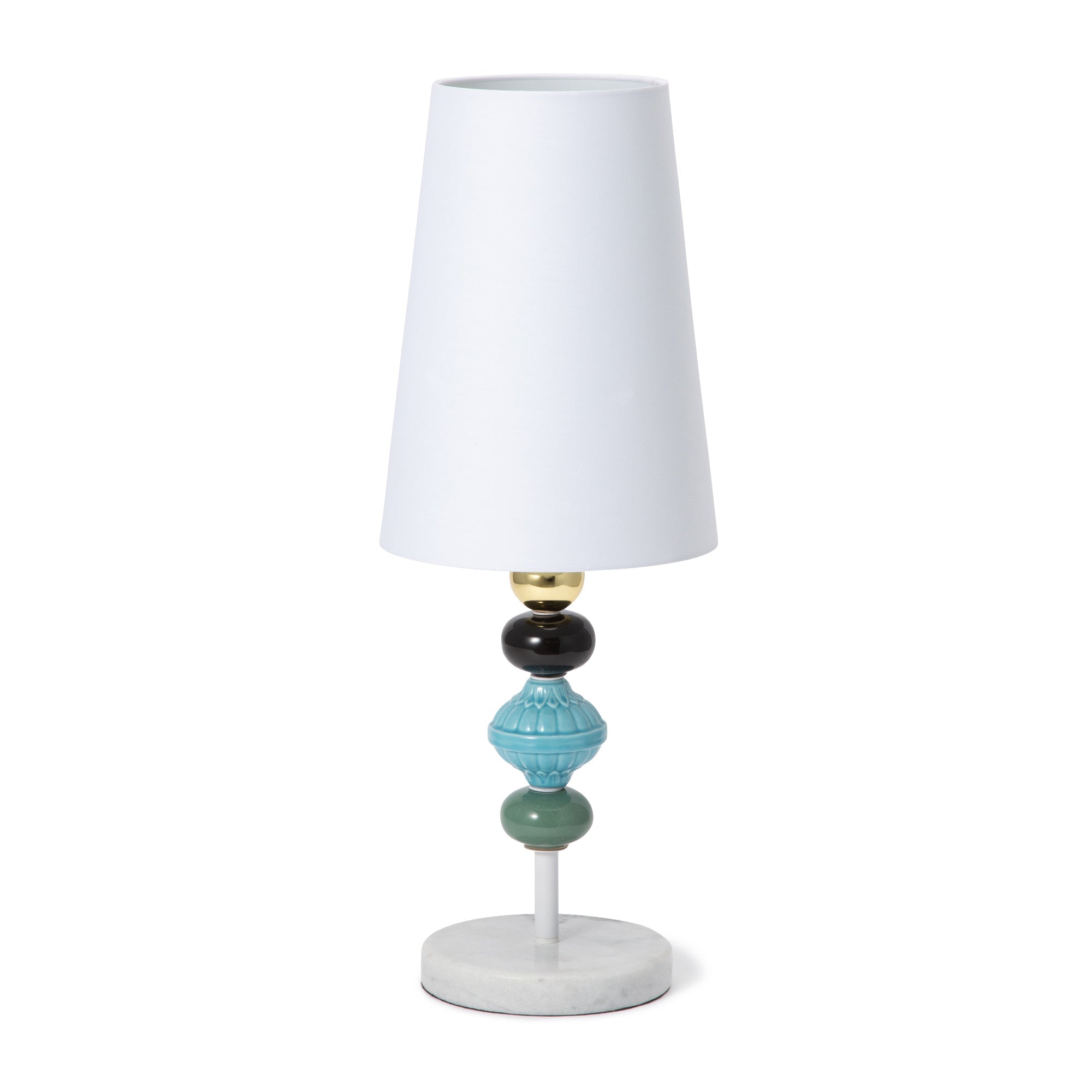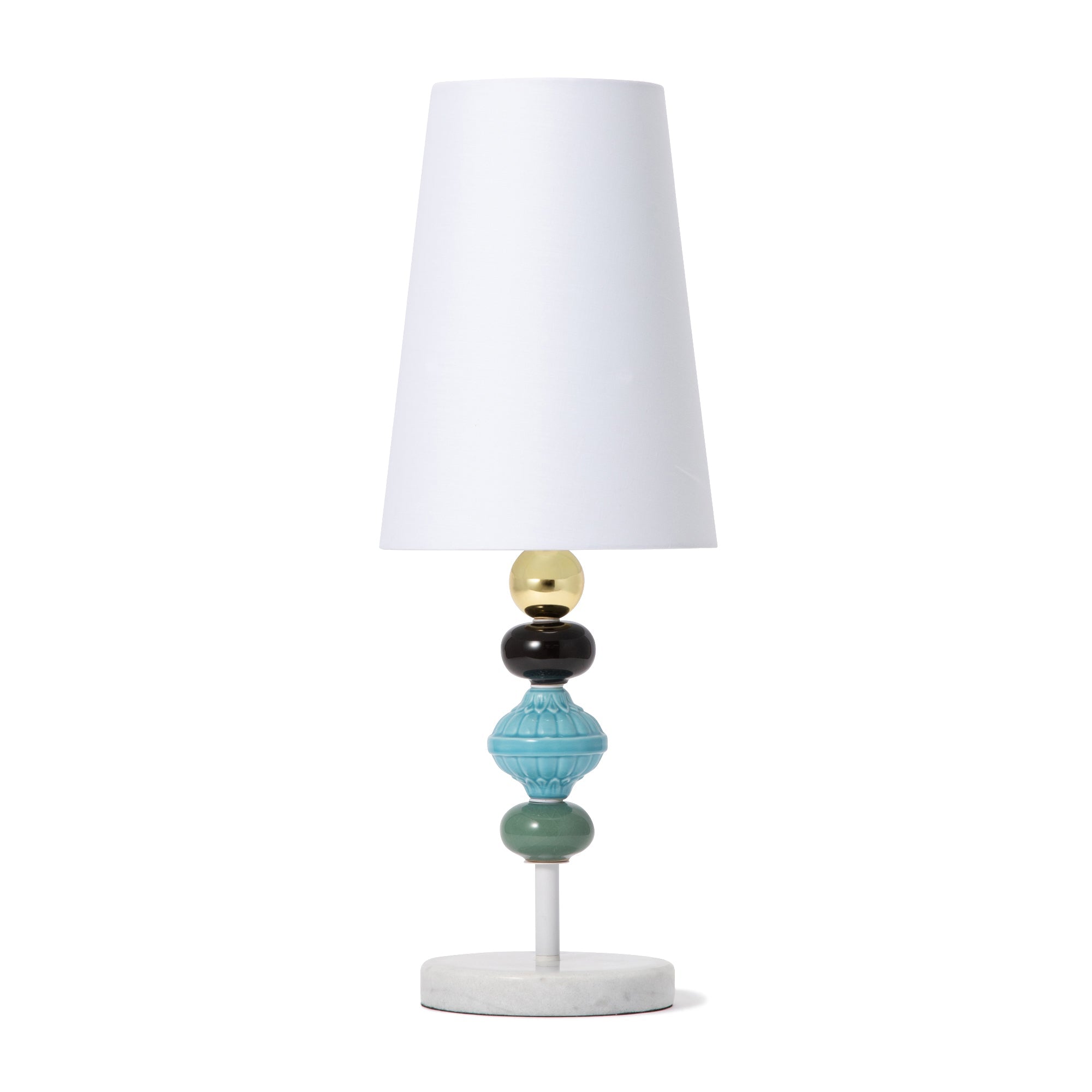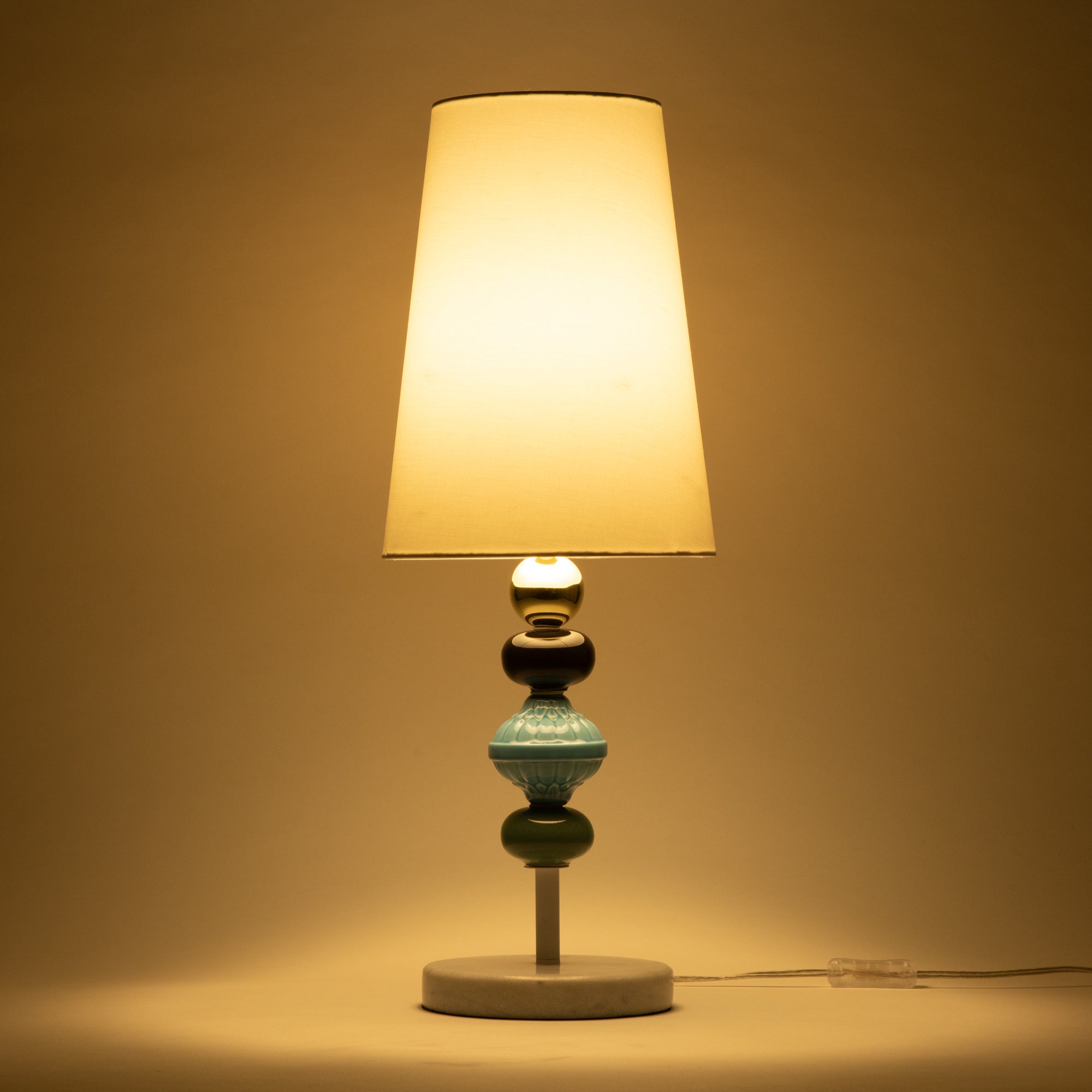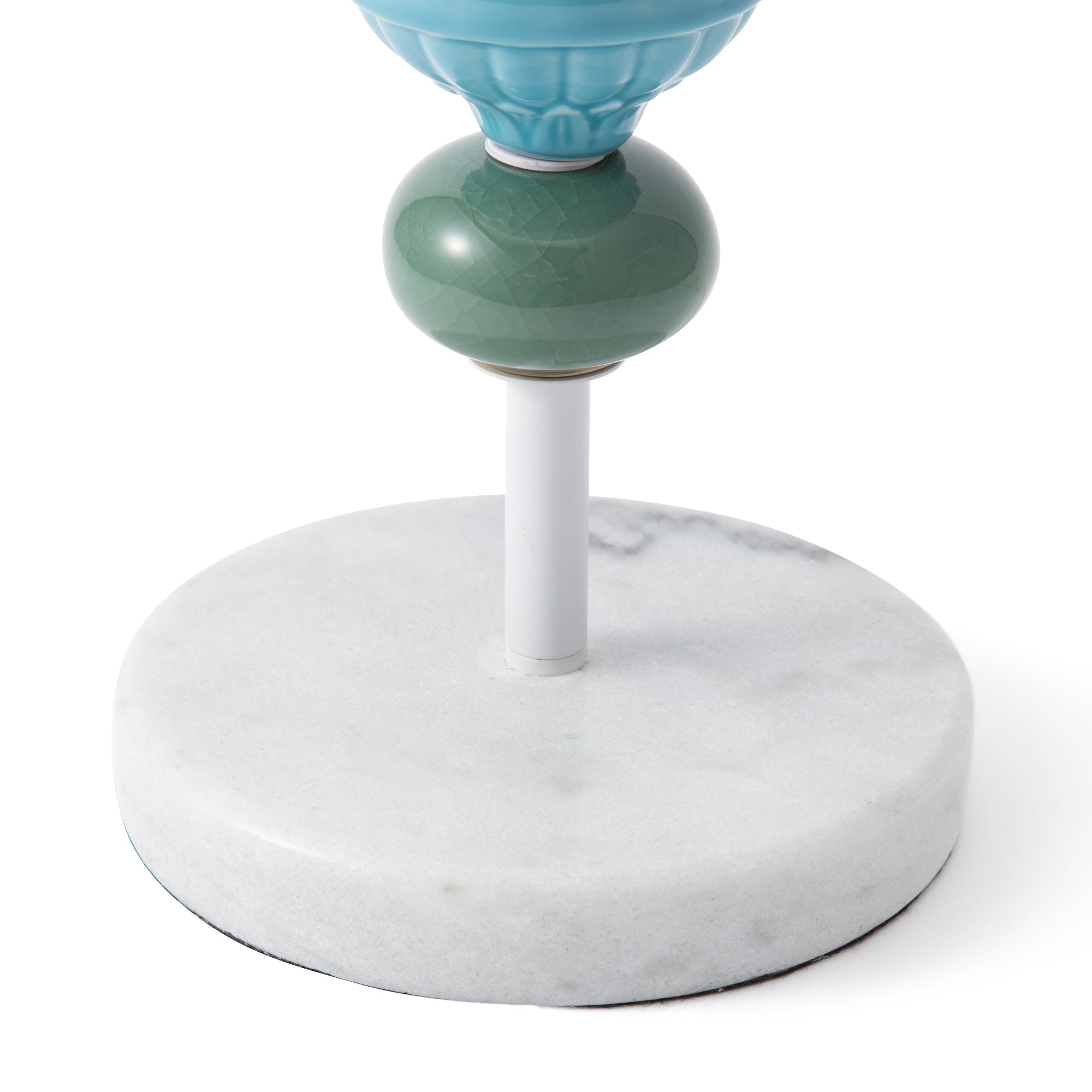 細身ですっきりとしたシルエットが春夏にぴったりの爽やかなテーブルランプです。大理石のベースにセラミックのアクセサリが特徴で、シンプルになりすぎず上品な印象。細身で場所をとらないので狭い場所でも置いていただけます。