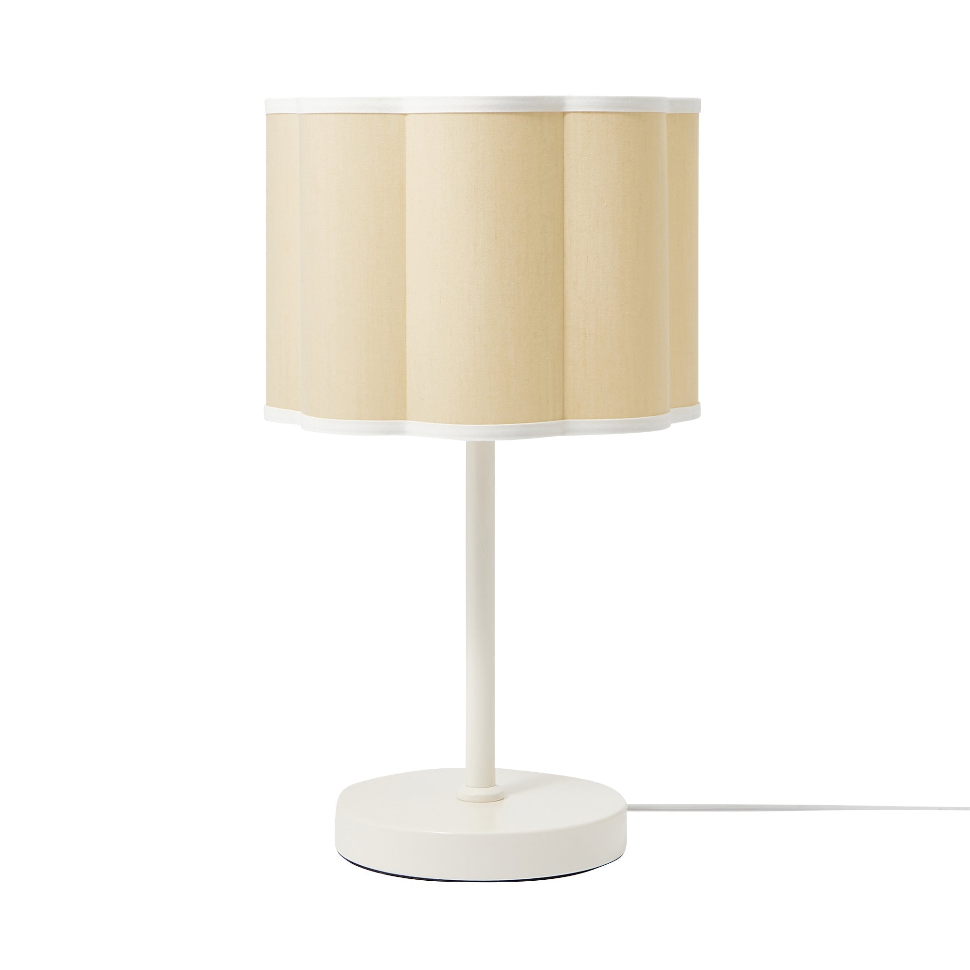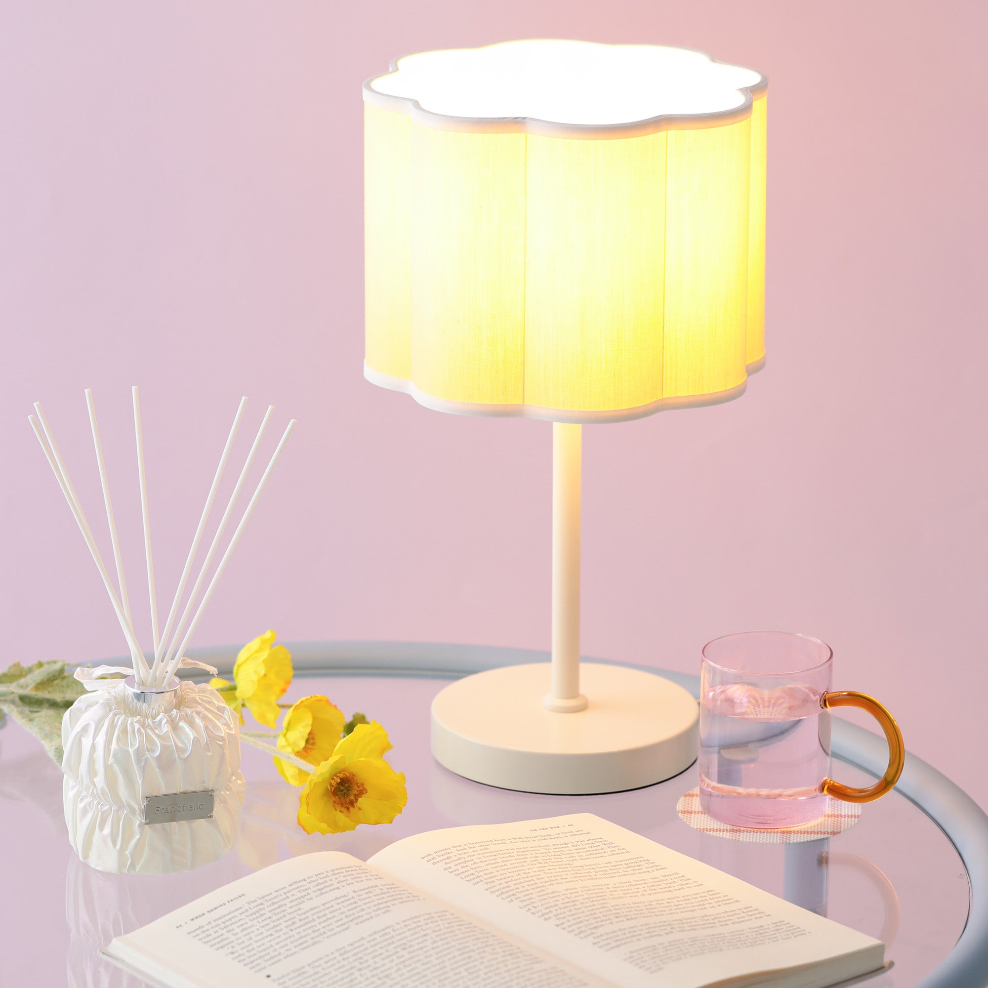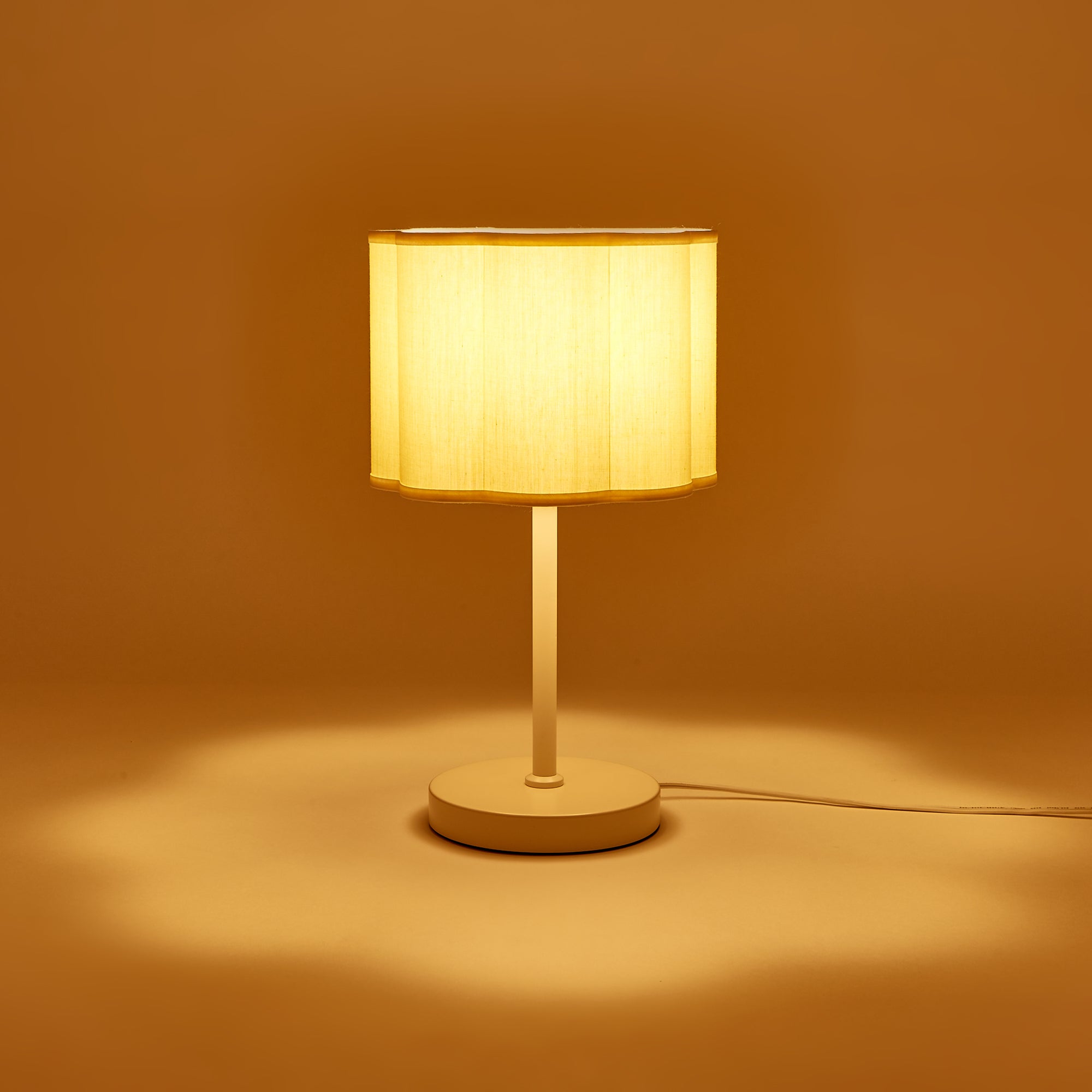 もこもことした形がかわいいテーブルランプです。パイピングの色がアクセントになったデザインで、程よく空間に彩りを添えるアイテムです。