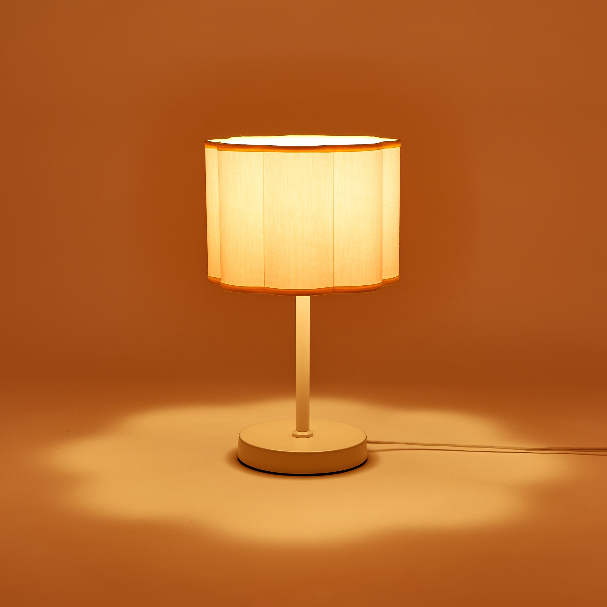 もこもことした形がかわいいテーブルランプです。パイピングの色がアクセントになったデザインで、程よく空間に彩りを添えるアイテムです。