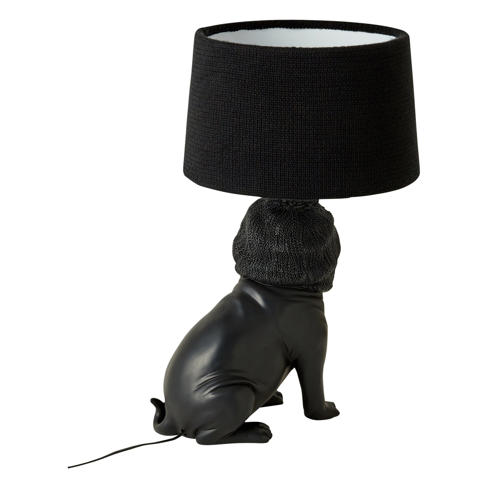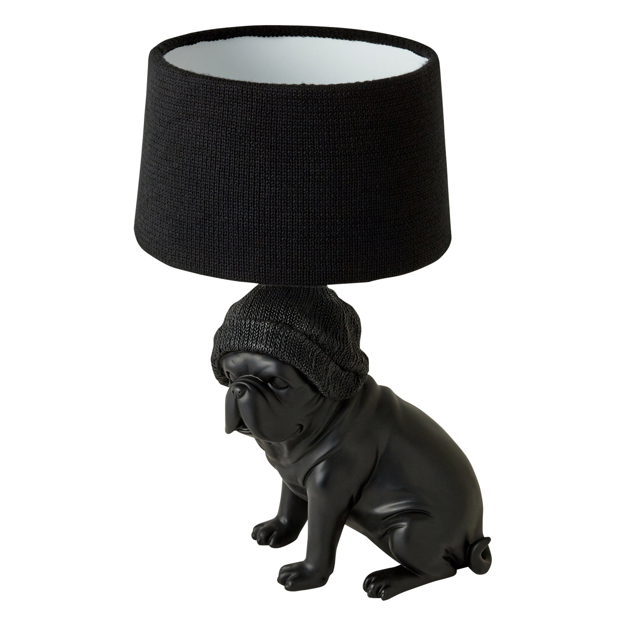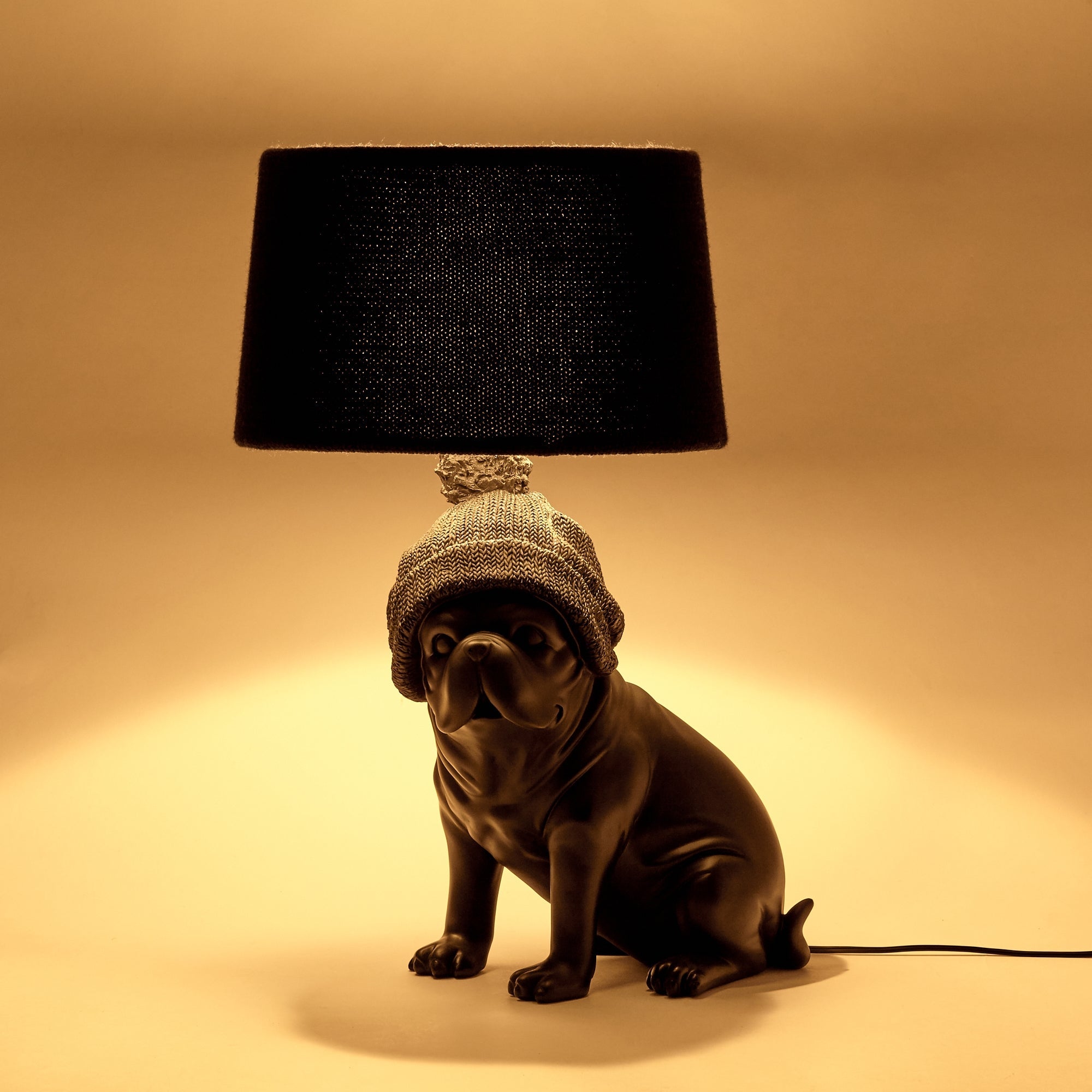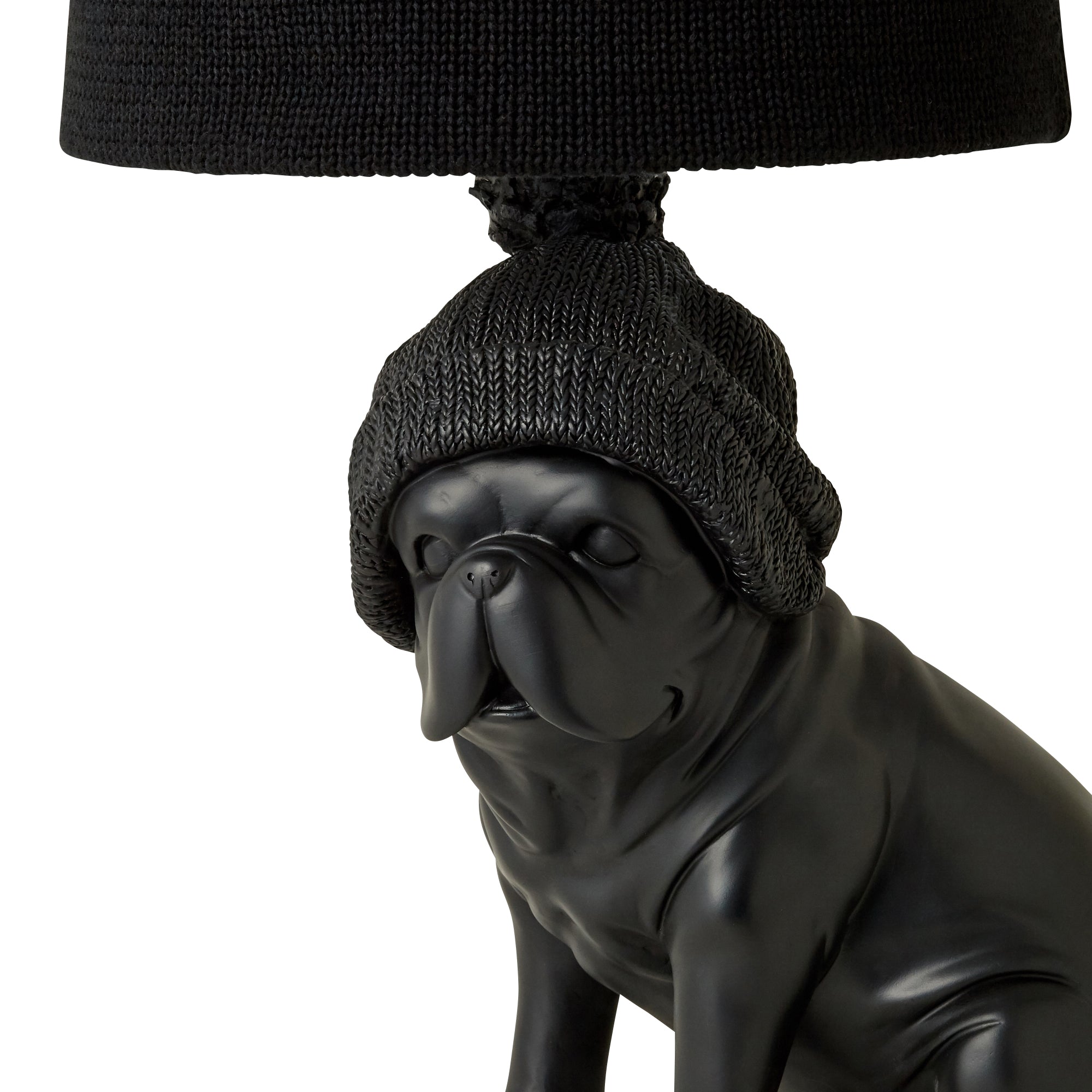 ニット帽をかぶったフレンチブルドッグのテーブルランプ。Francfrancオリジナルデザインの個性的な照明。フレンチブルドックがかぶっているニット帽は、粘土を糸状にしそれを実際に編み込んだものを型に取っています。細かい部分までこだわって作られており、照明を付けていない時でも存在感のあるオブジェとしてインテリアのアクセントになります。照明を付けると、また違った表情を楽しむことが出来ます。アート作品の様な繊細な照明でお部屋を演出してください。コードに付いているスイッチでON/OFFが簡単にできます。