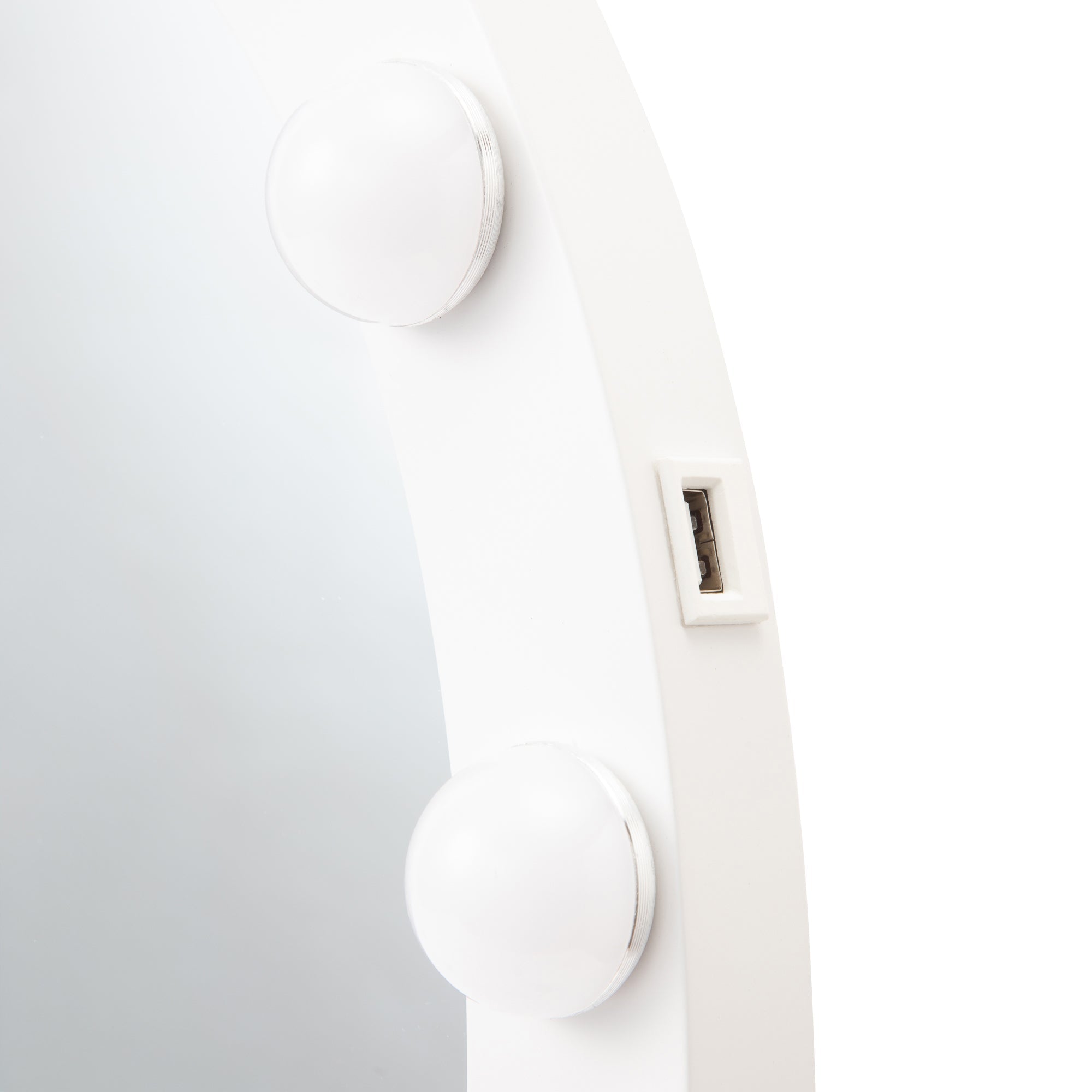 スタイリッシュなハリウッドミラーおしゃれなライト付きミラーです。ライトの色や明るさをを調整できるので、お出かけ先に合わせて明かりを使い分けることができます。落ち着きのある雰囲気に夜出かけるときや、飲食店、旅館、お祭りなど暖色の明かりに包まれるときは暖色系の明かりでメイクをするのがおすすめです。落ち着いた明るい雰囲気にお仕事やお買い物など、室内の明るい場所に出かけるときは、白い明かりがおすすめです。爽やかな明るい雰囲気に日中外に出かけるときなどは、ライトの明るさを一番明るくしてメイクするのがおすすめです。調光記憶機能搭載設定を記憶できるので、毎回明るさを調整する必要がありません。時間や天候に左右されずいつでも安定した明るさでメイクを楽しめます。USBポート付きミラーのサイドにUSBポートがついているので便利です。