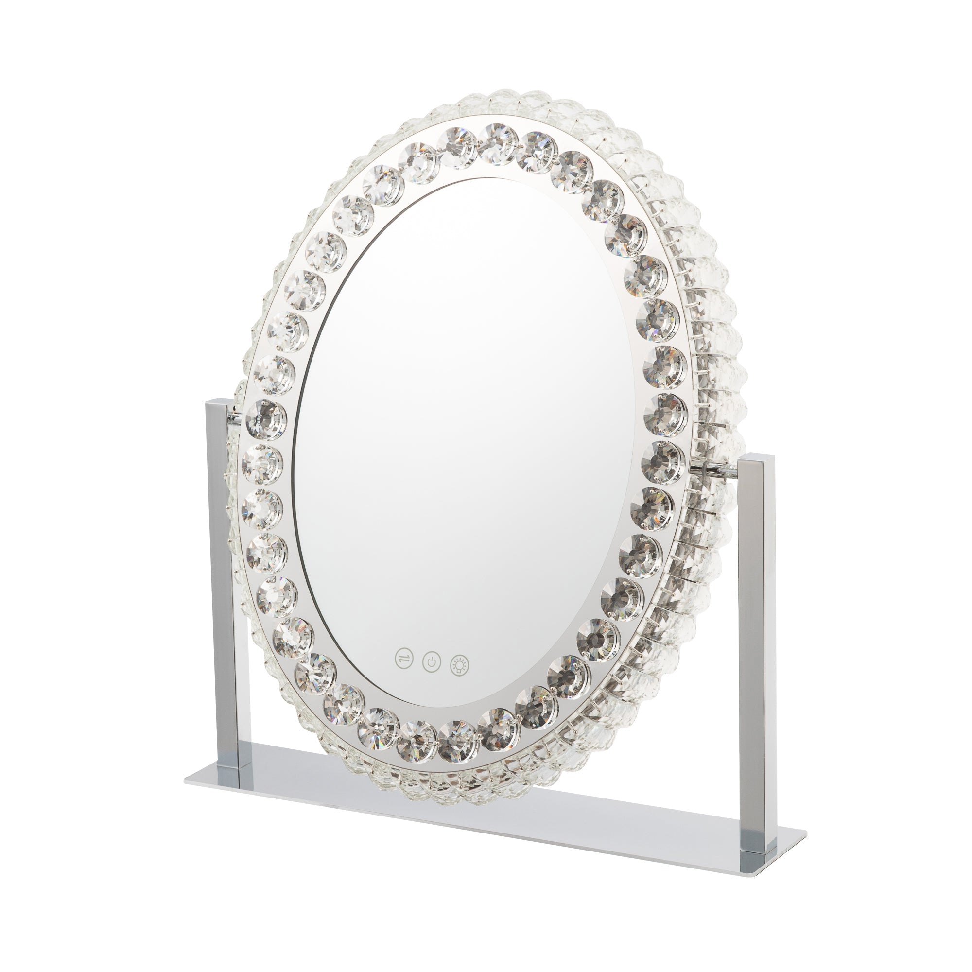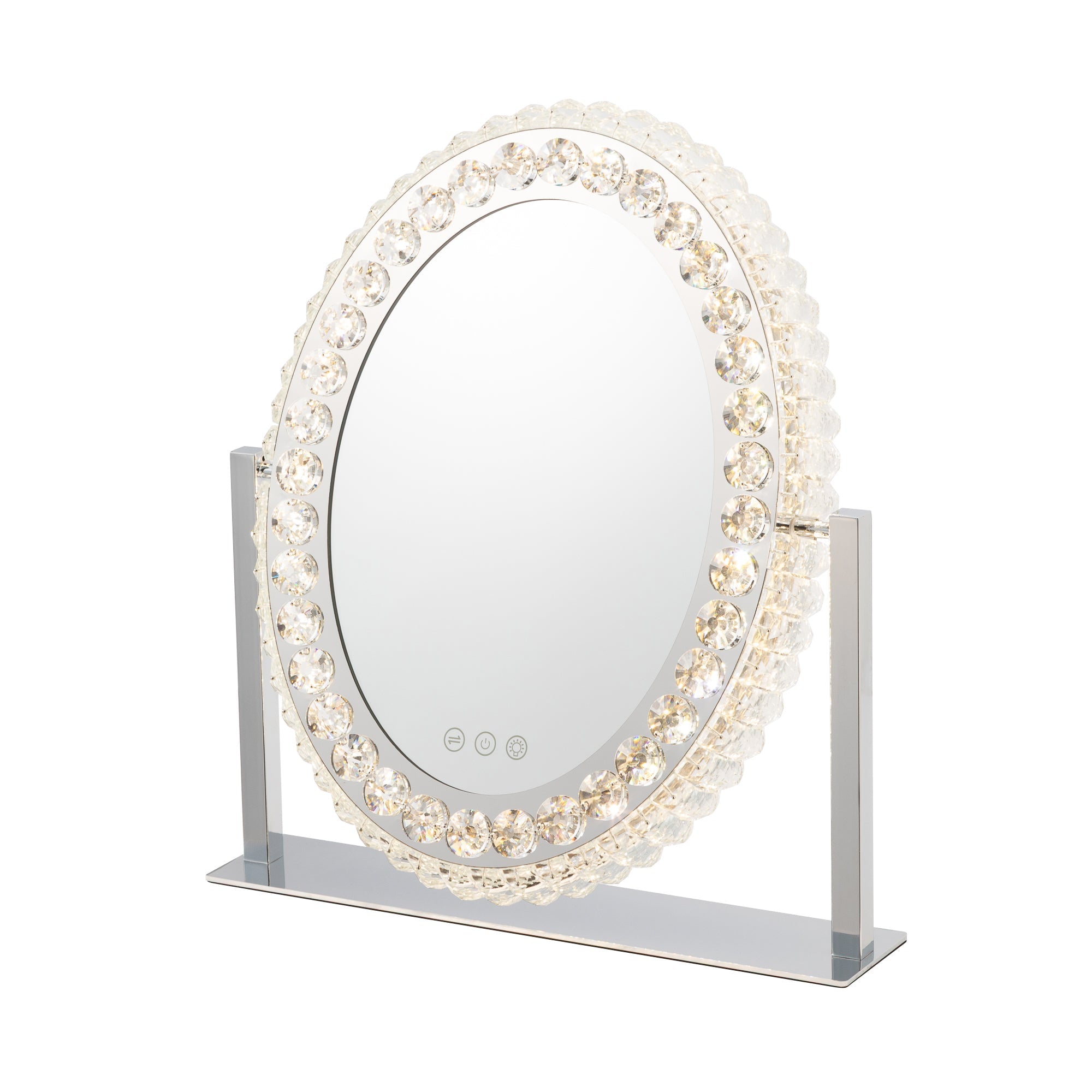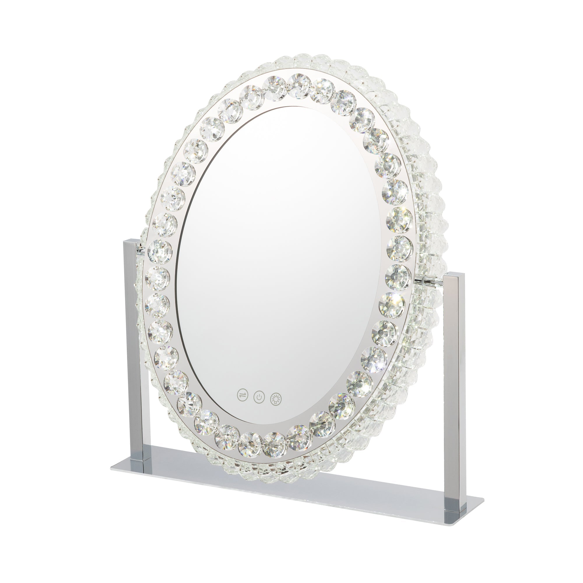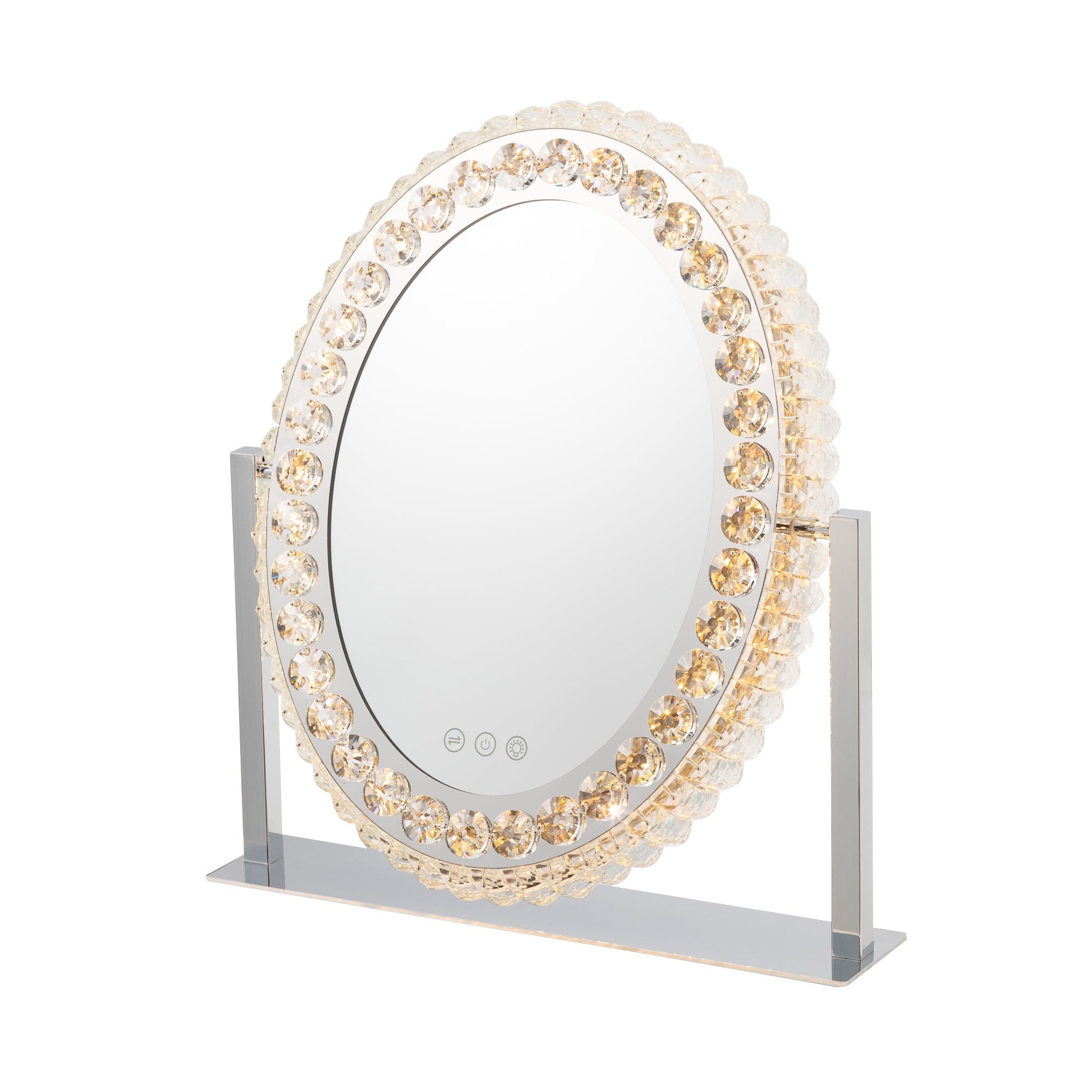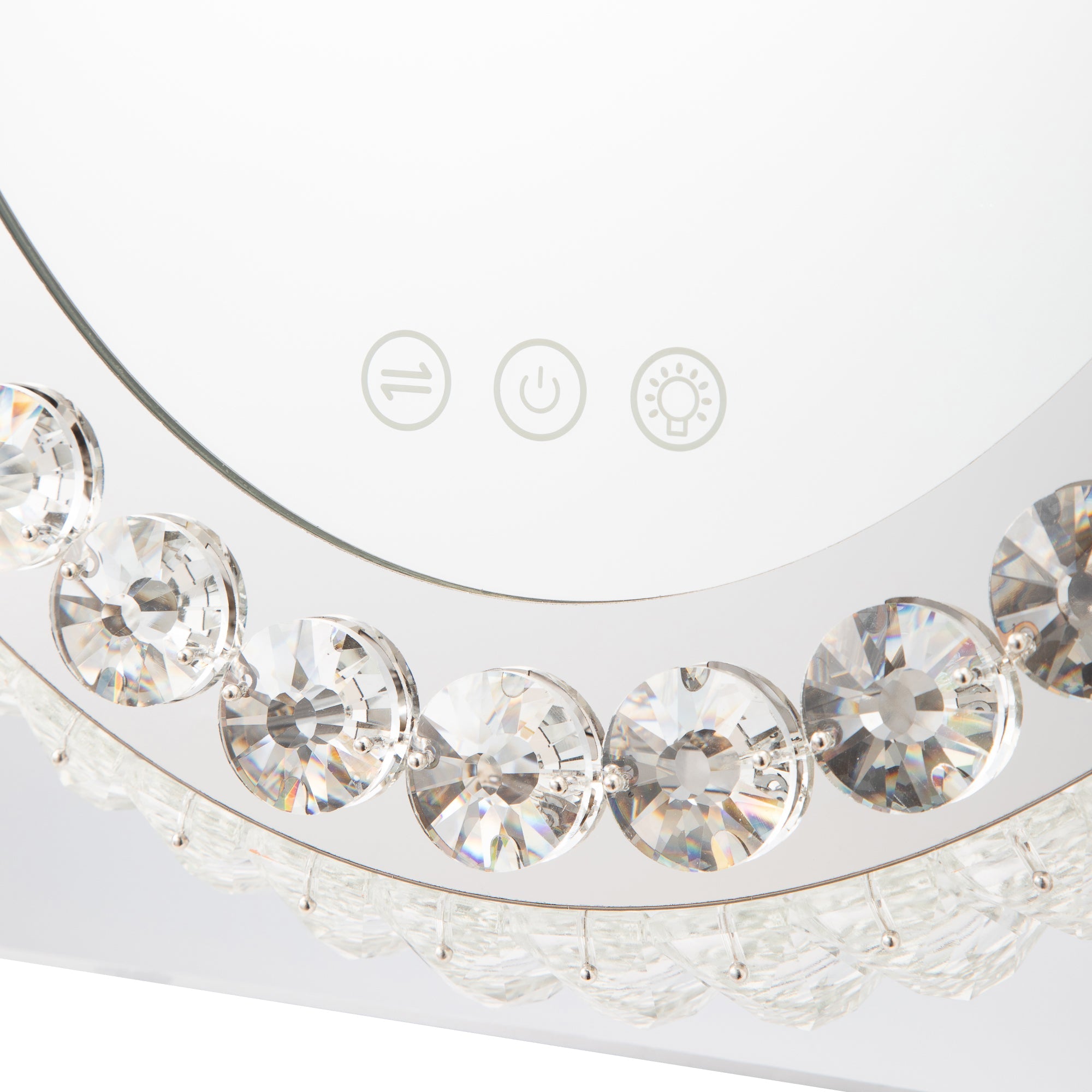 心華やぐハリウッドミラーきらきら輝くライトが大人っぽいライト付きミラーです。ライトの色や明るさをを調整できるので、お出かけ先に合わせて明かりを使い分けることができます。落ち着きのある雰囲気に夜出かけるときや、飲食店、旅館、お祭りなど暖色の明かりに包まれるときは暖色系の明かりでメイクをするのがおすすめです。落ち着いた明るい雰囲気にお仕事やお買い物など、室内の明るい場所に出かけるときは、白い明かりがおすすめです。爽やかな明るい雰囲気に日中外に出かけるときなどは、ライトの明るさを一番明るくしてメイクするのがおすすめです。調光記憶機能搭載設定を記憶できるので、毎回明るさを調整する必要がありません。時間や天候に左右されずいつでも安定した明るさでメイクを楽しめます。間接照明にもおすすめきらきら輝くライトは間接照明としても活躍。前面だけでなく側面からも光がこぼれてお部屋をエレガントに彩ります。大人可愛いきらきらのビジューまばゆいビジューの輝きは他にはない可愛さ。シルバーカラーなのでさまざまなインテリアにあわせやすいのも魅力です。毎日のメイクを特別な時間に変えてくれるとっておきのアイテムです。