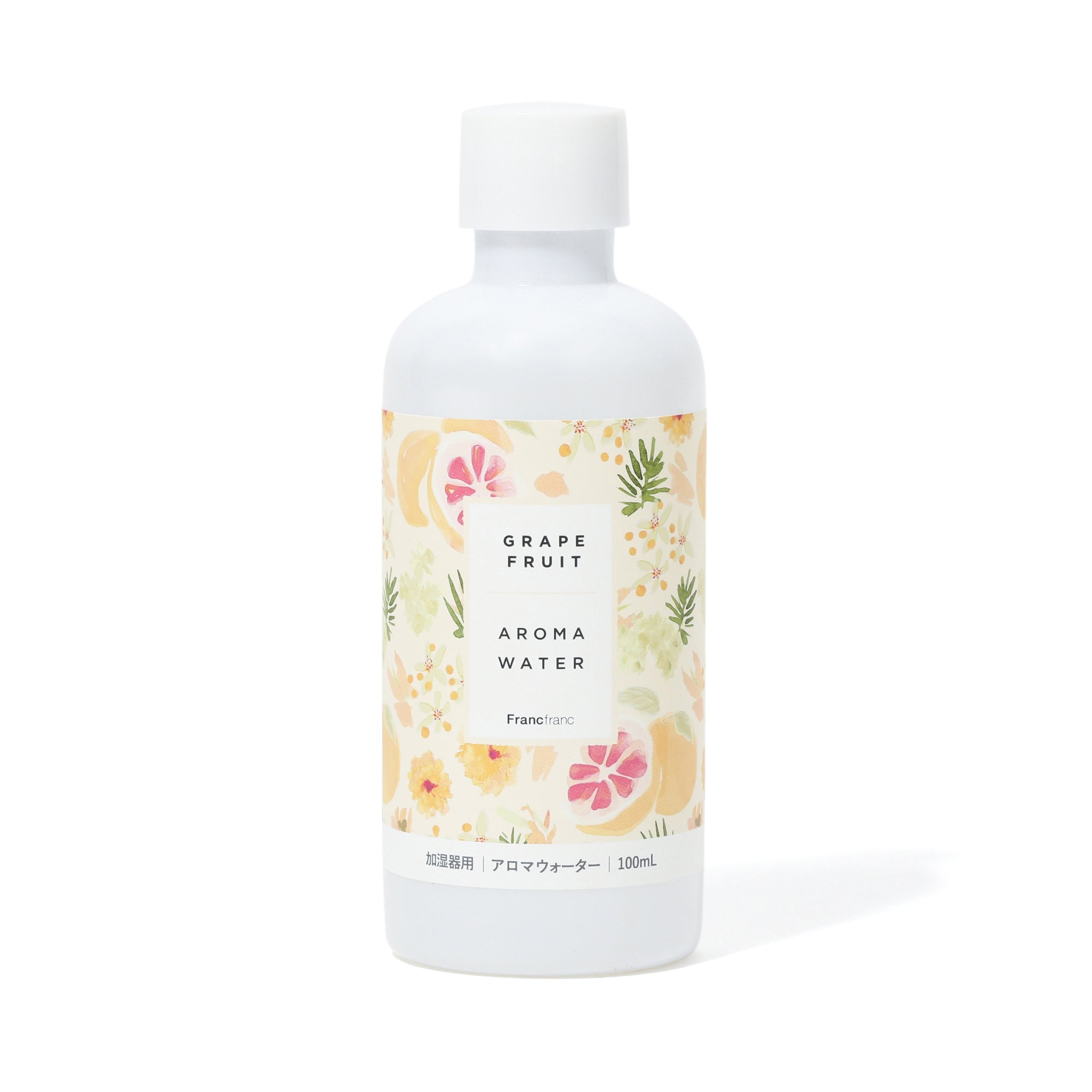 アロマウォーターグレープフルーツのお試し用サイズです。気になった香りを約3~8日お試しいただけます。※加湿器の容量によって差があります。<使用方法>アロマウォーター対応の加湿器のタンクに水を入れ、水1000mlに対して最大キャップ1.5杯(1キャップ約4ml)入れます。※お好みによって量を調節してください。タンクのふたを締め、軽く振ってから加湿器本体にセットしてください。