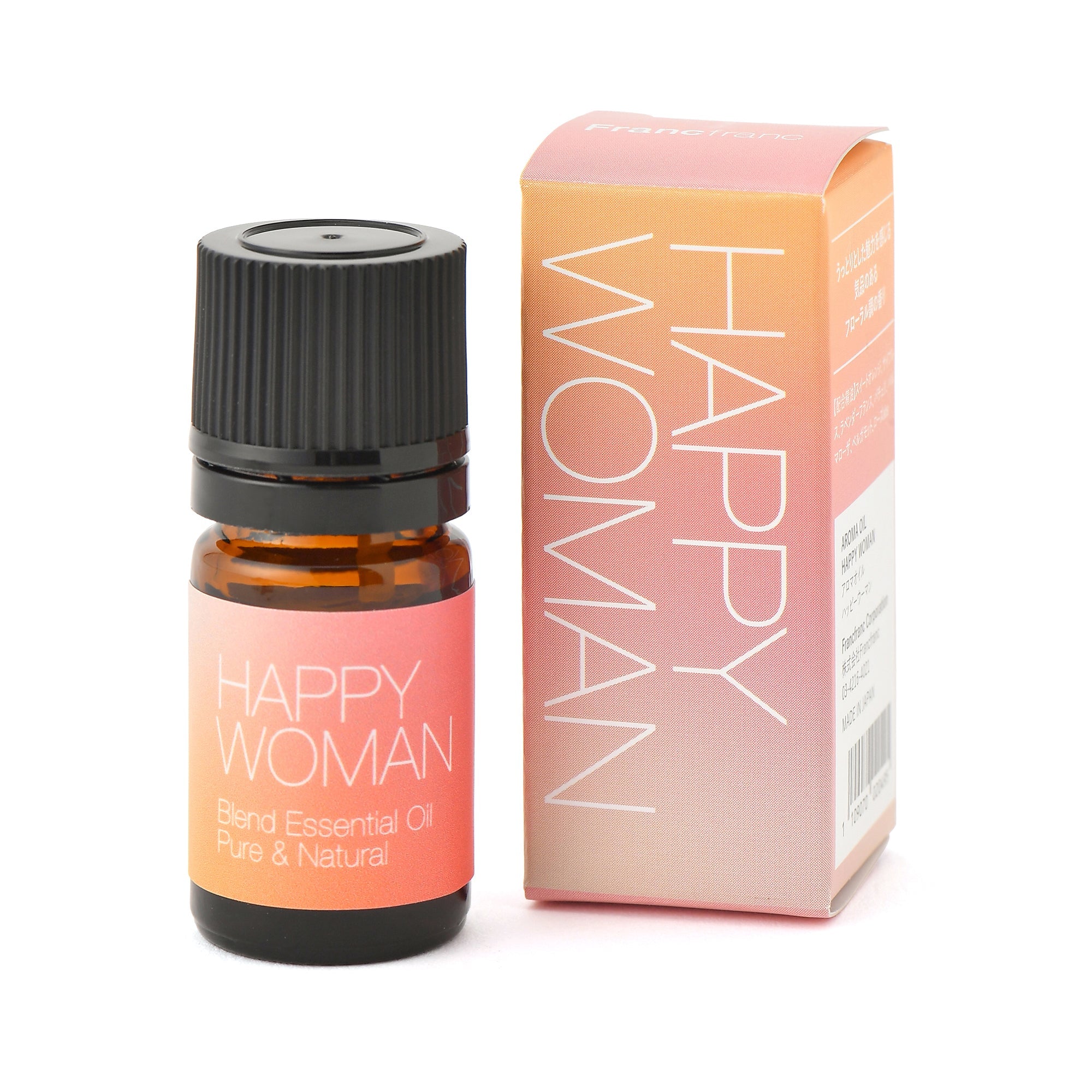 植物の花や葉、果皮や果実などから抽出した100%植物由来のエッセンシャルオイルのみをブレンドしたアロマオイルです。 気分転換したいとき、疲れているとき、リフレッシュして1日を元気に頑張りたいときにおすすめです。3種類の香りをご用意しているので、気分や直感にあわせてお楽しみいただけます。 ◆ハッピーウーマンの香り 「ローズabs精油」を配合し、ローズとシトラスのうっとりとした魅力を感じるフローラル調の気品のある香り。 日常生活でイライラが溜まってしまったときや考えすぎた頭と心を和らげ癒しを感じたいとき、心身のバランスが乱れていると感じるときなど、植物の豊かな香りが忙しい毎日を送っているあなたに寄り添います。 植物が生み出す1滴の力がこめられた天然精油の香りが、日々のくらしを豊かにしてくれます。 ※使用方法:アロマディフューザーやアロマ対応加湿器を使用して空気中に拡散してください。