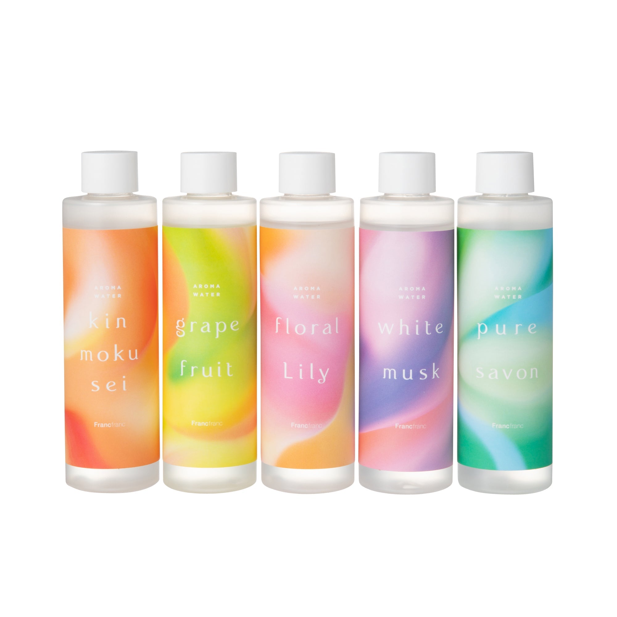 ポンプ式で使いやすいアロマウォーターです。1プッシュ約1mlのポンプ式なので、計量の手間が省けるうえに手も汚れにくくて便利。トレンドのグラデーションデザインを施して、そのままお部屋に置いてもおしゃれなパッケージに仕上げました。残量が確認しやすい半透明ボトルです。<使用方法>加湿器のタンクに水を入れ、水1000mlに対して最大6プッシュ(1プッシュ約1ml)入れます。※お好みによって量を調節してください。タンクのふたを締め、軽く振ってから加湿器本体にセットしてください。