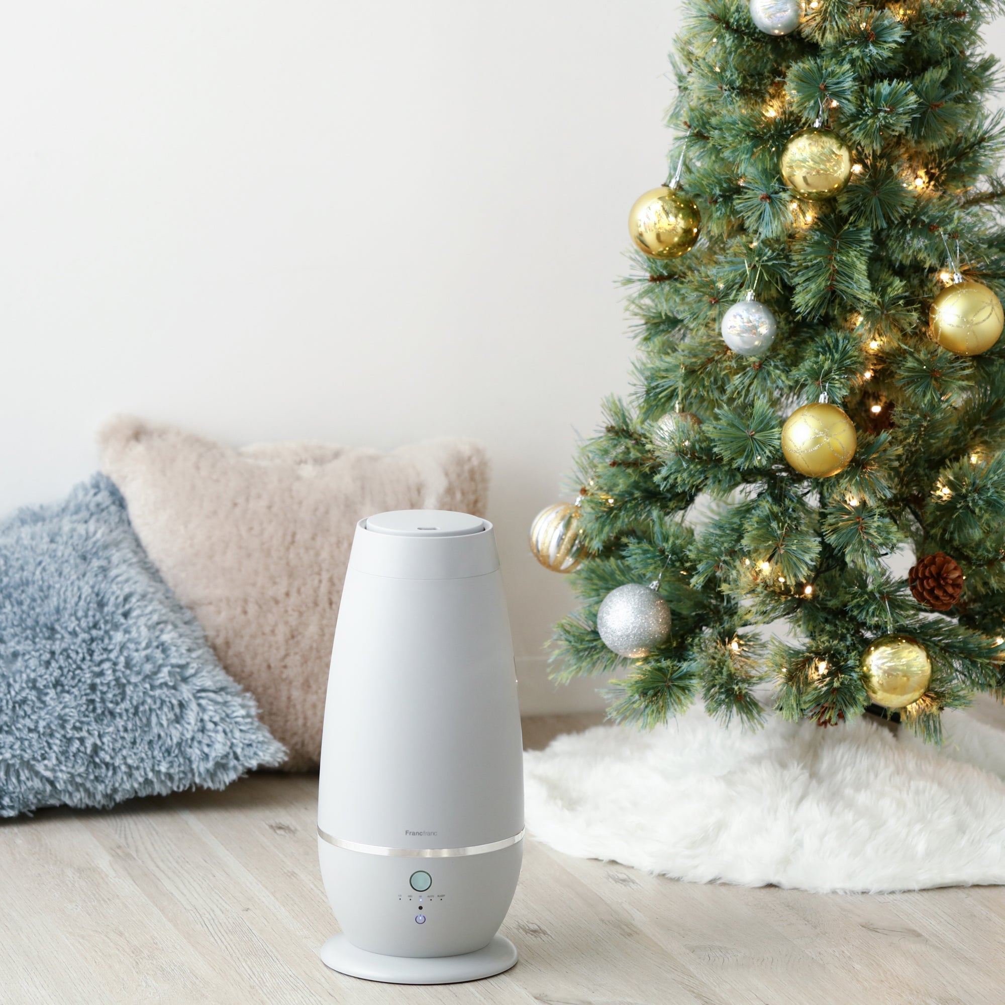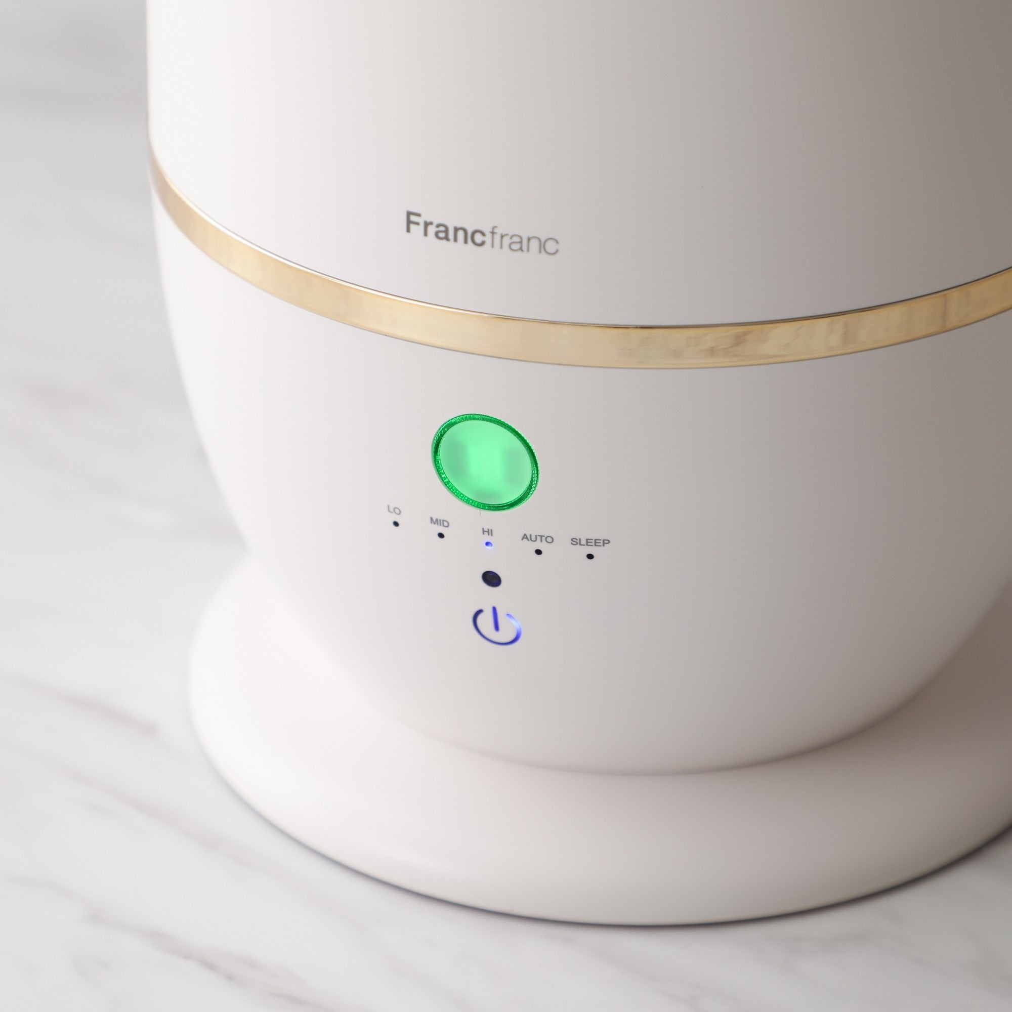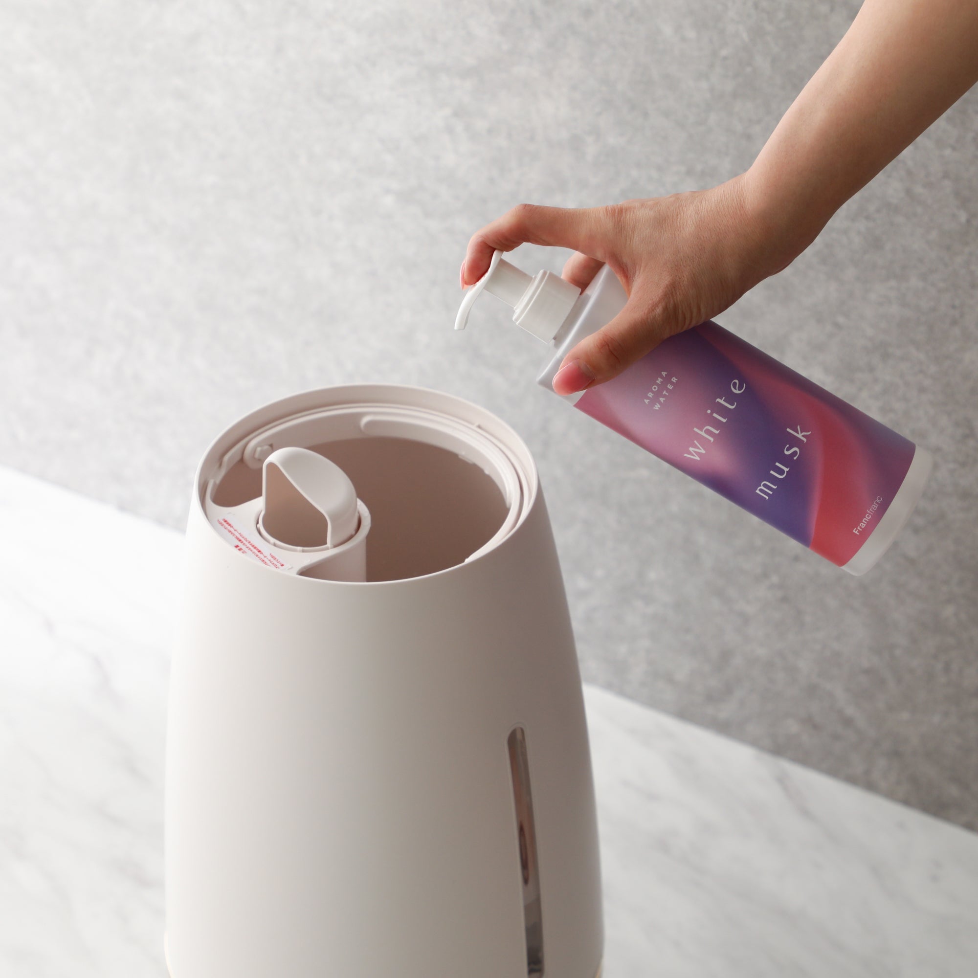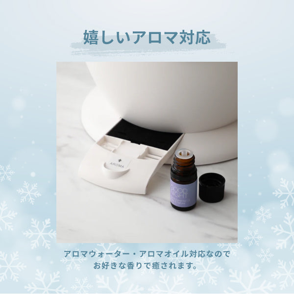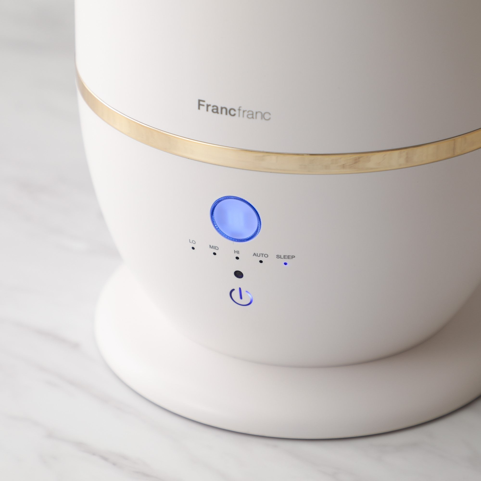 インテリアに溶け込む美しい佇まいと大容量タンクで人気の2WAY超音波式加湿器です。 水タンクを5Lから5.5Lに増量、さらに持ち運ぶ必要のない「上部給水型」にリニューアルしました。 タンクが大容量なので面倒な水汲みの手間が軽減でき、上部給水型になったことで給水もらくらくに。持ちやすい取っ手が付いているからタンクを移動する際も便利です。 ひとめでお部屋の湿度環境がわかる湿度センサー搭載で適切な湿度をLEDでお伝えします。 ・オレンジ点灯=湿度40%以下 (乾燥気味) ・青点灯=湿度40%~60%(快適) ・緑点灯=湿度60%以上(多湿) 室内の湿度を検知し自動でミストの量を調節するオートモード、睡眠を邪魔しないLED消灯モード、ミスト量を抑えて6時間でオートオフするナイトモードなど、多機能なアイテムです。 付属のアロマパッドを使ってお好きな香りを楽しむこともできます。 本体が部屋の隅にあっても遠隔操作のできるリモコンつきで操作も簡単。 吹き出し口が着脱できるので、ロングタイプとミドルタイプの2つの形状に変更できるのでシーンに合わせてお使いいただけます。