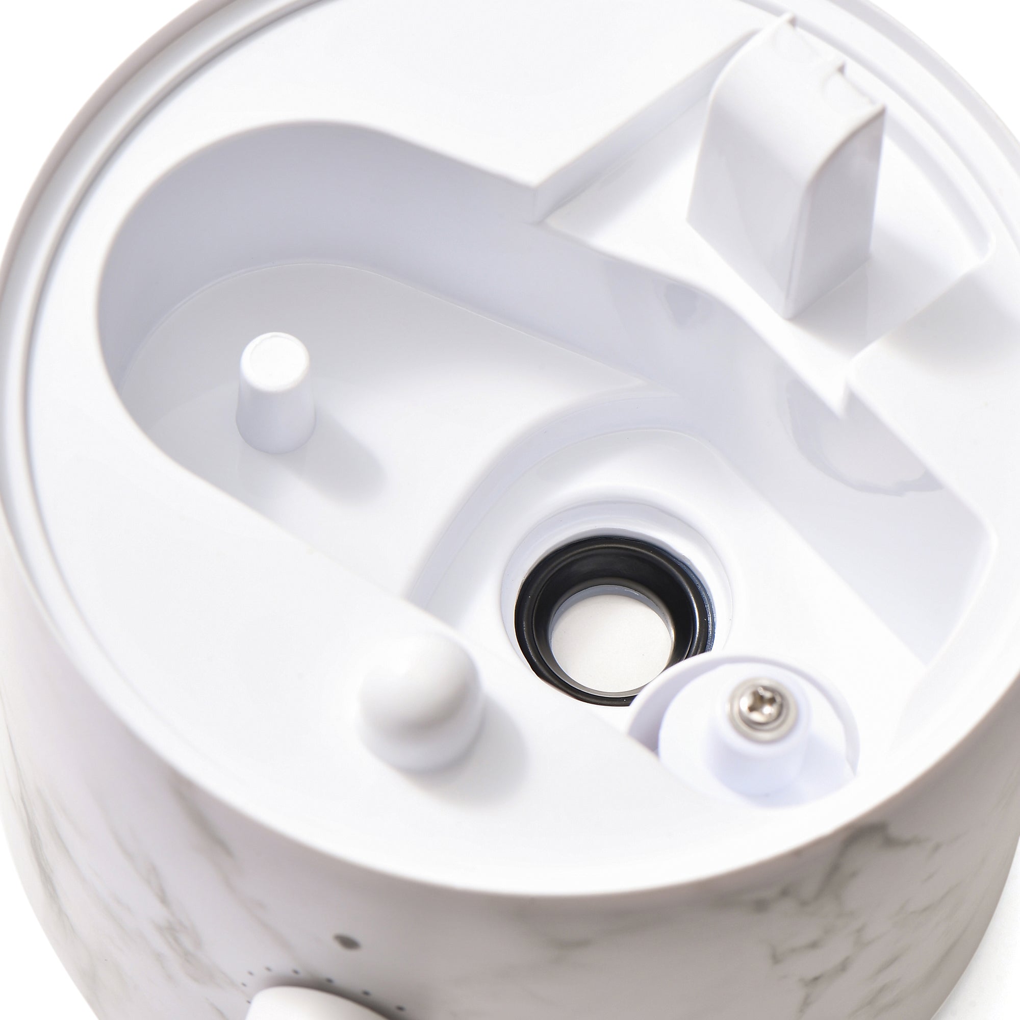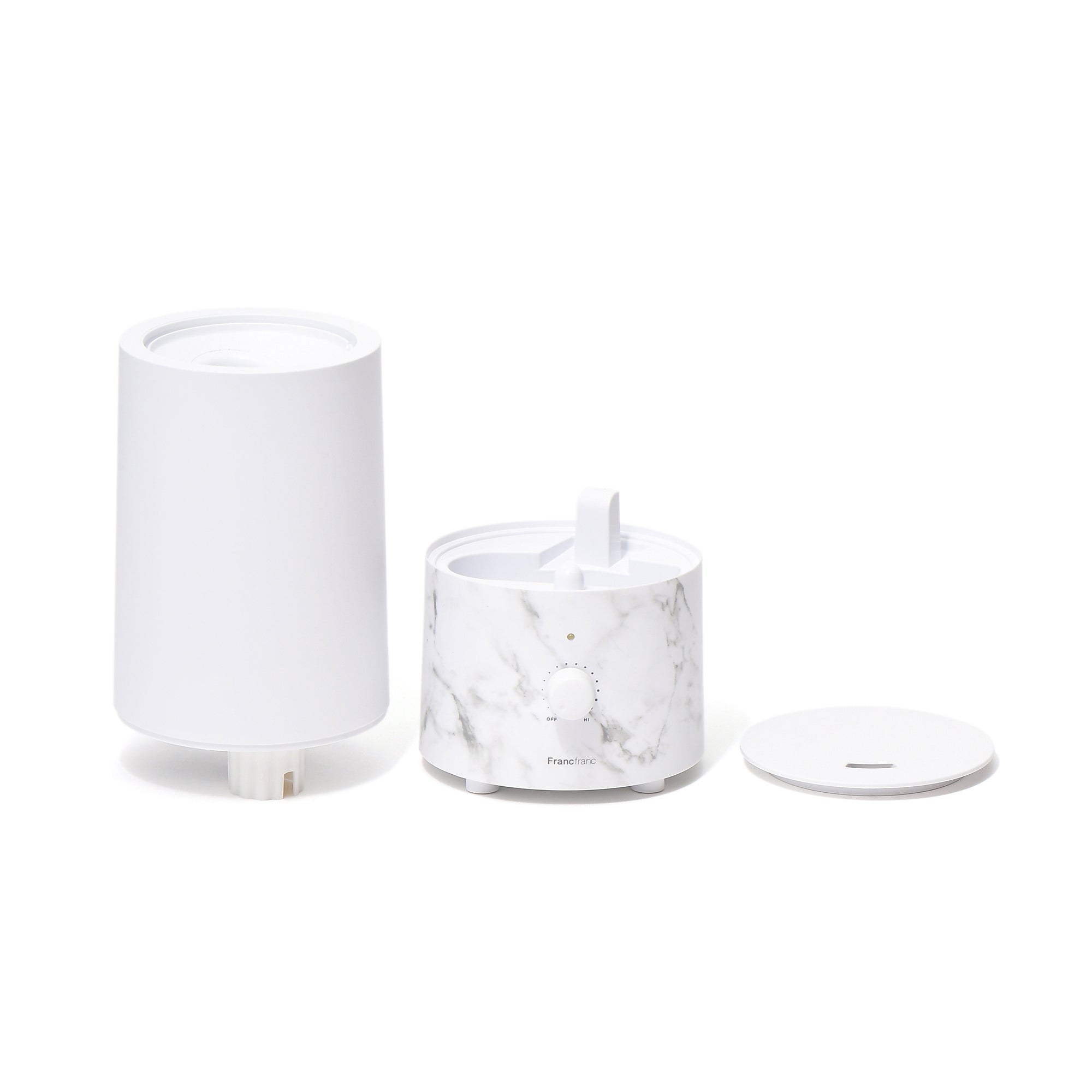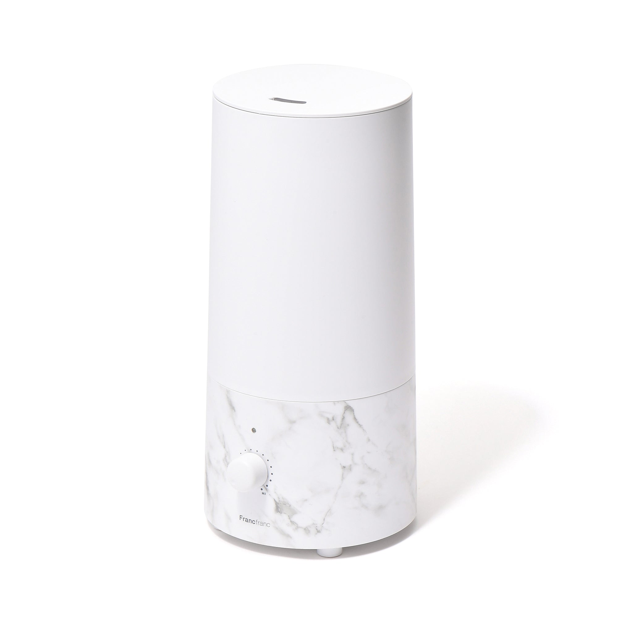 スモールスペースに置きやすいコンパクトな超音波式加湿器です。 機能はシンプル。簡単で使いやすいダイヤル式で噴霧量が簡単に調節できます。 最大8時間使用可能で、おやすみ中もしっかり加湿できます。 アロマウォーター、抗菌消臭ウォーター、アロマオイルが使用できるので、うるおいとお好きな香りを同時にお楽しみください。