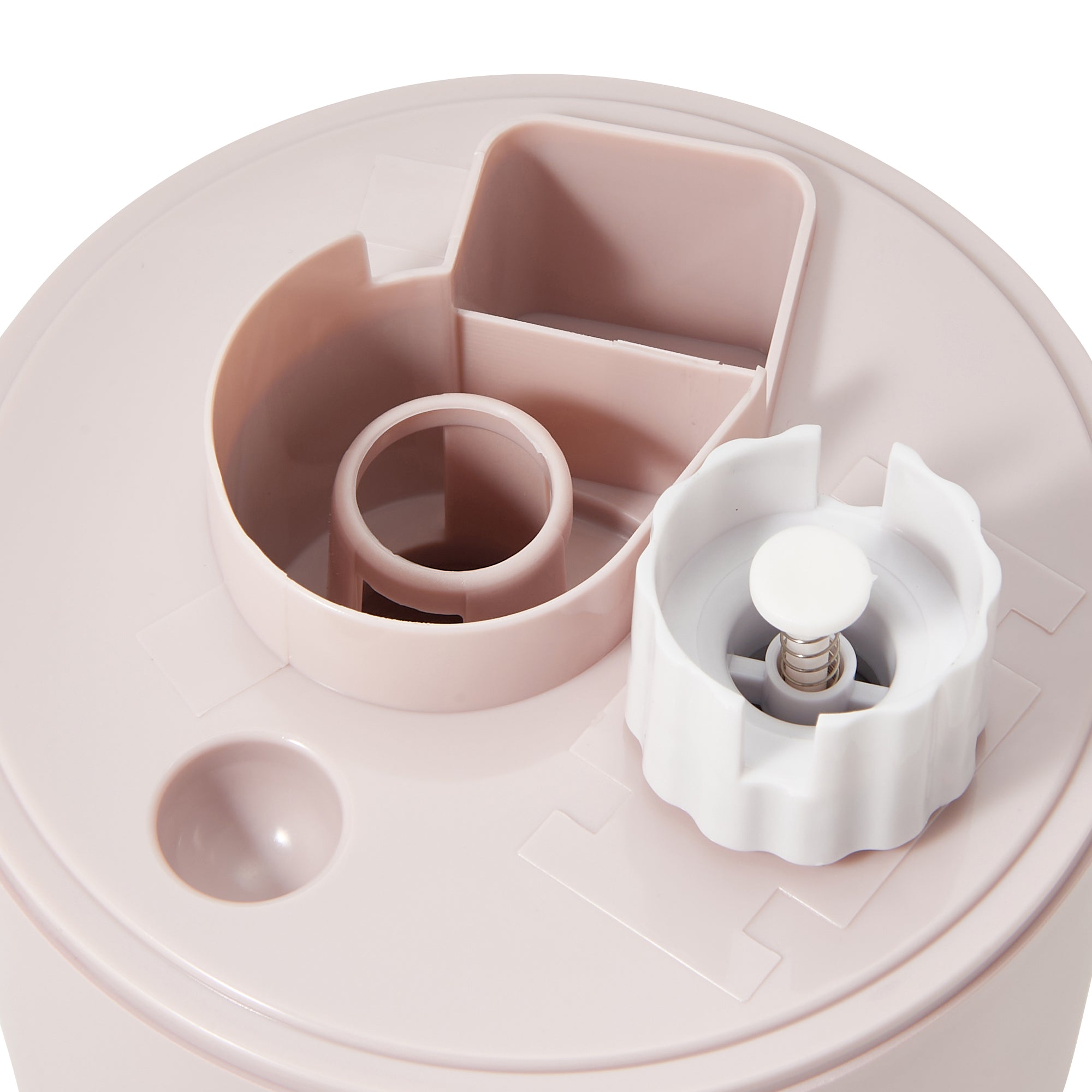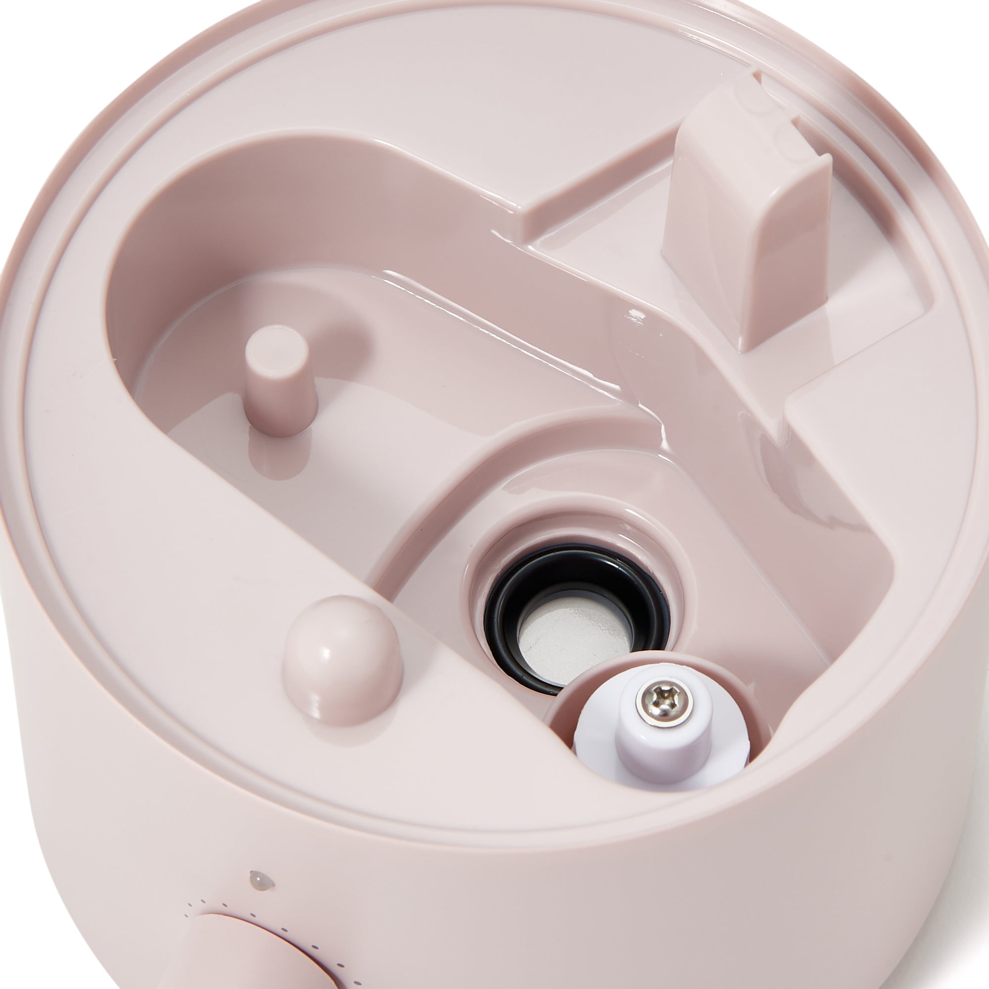 スモールスペースに置きやすいコンパクトな超音波式加湿器です。 機能はシンプル。簡単で使いやすいダイヤル式で噴霧量が簡単に調節できます。 最大8時間使用可能で、おやすみ中もしっかり加湿できます。 アロマウォーター、抗菌消臭ウォーター、アロマオイルが使用できるので、うるおいとお好きな香りを同時にお楽しみください。