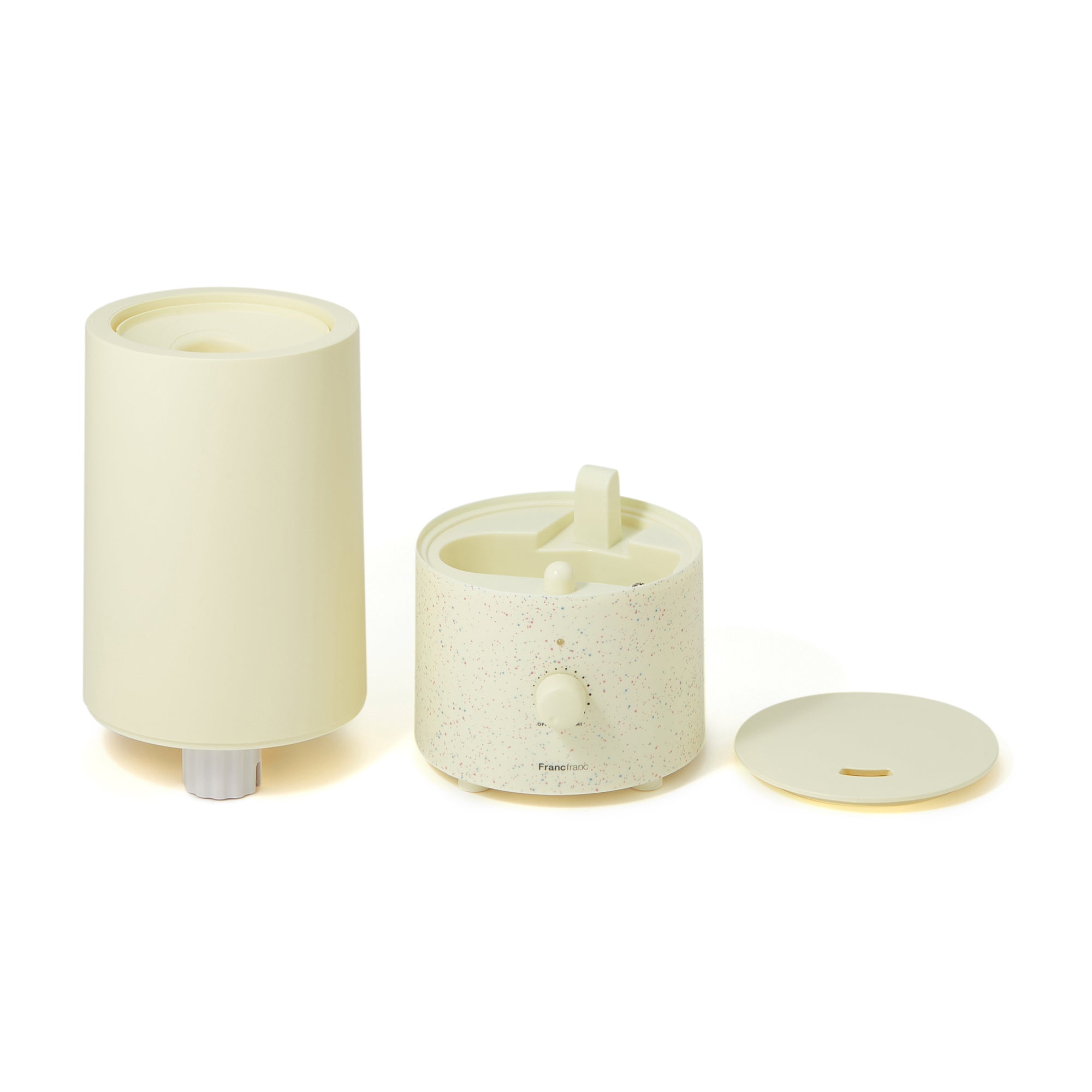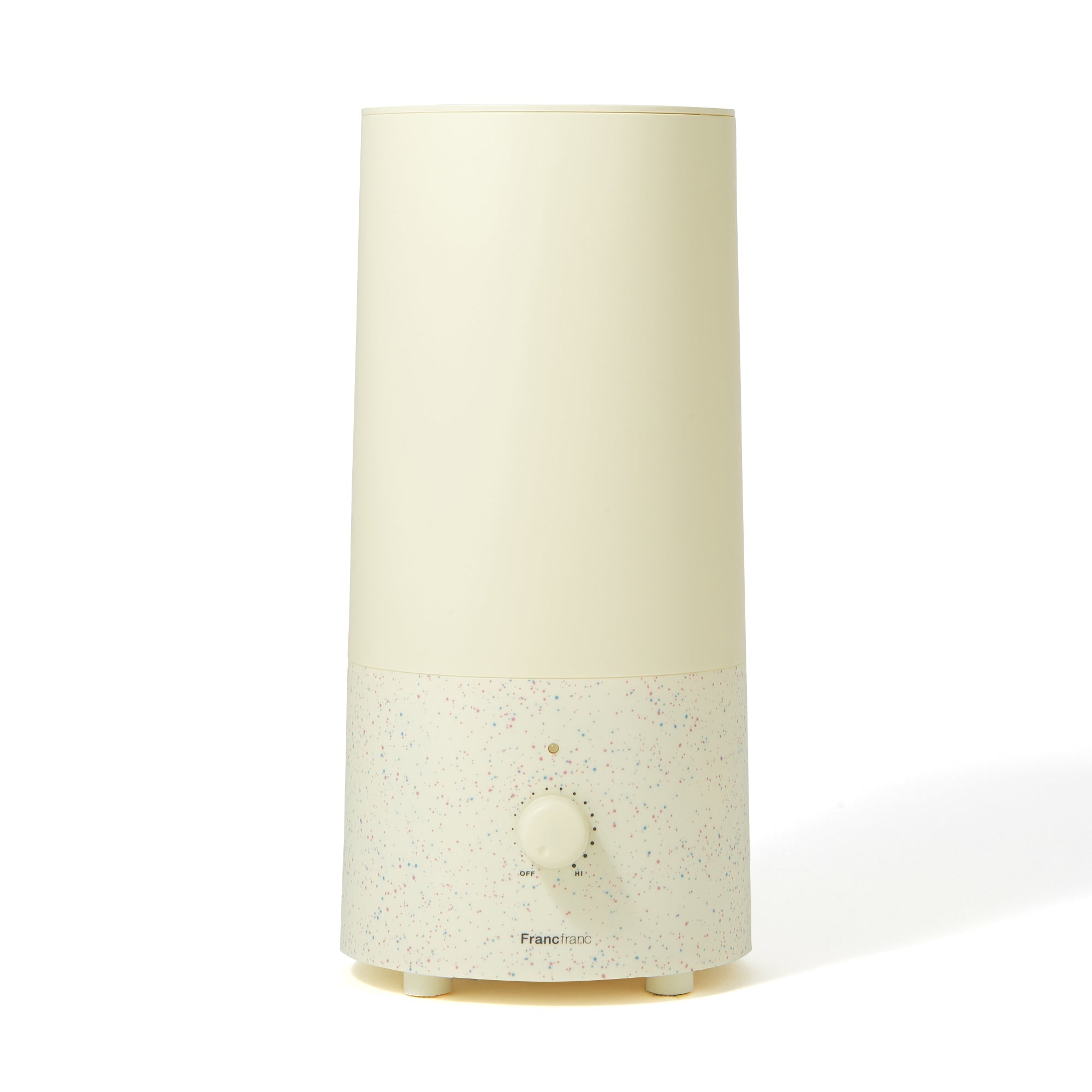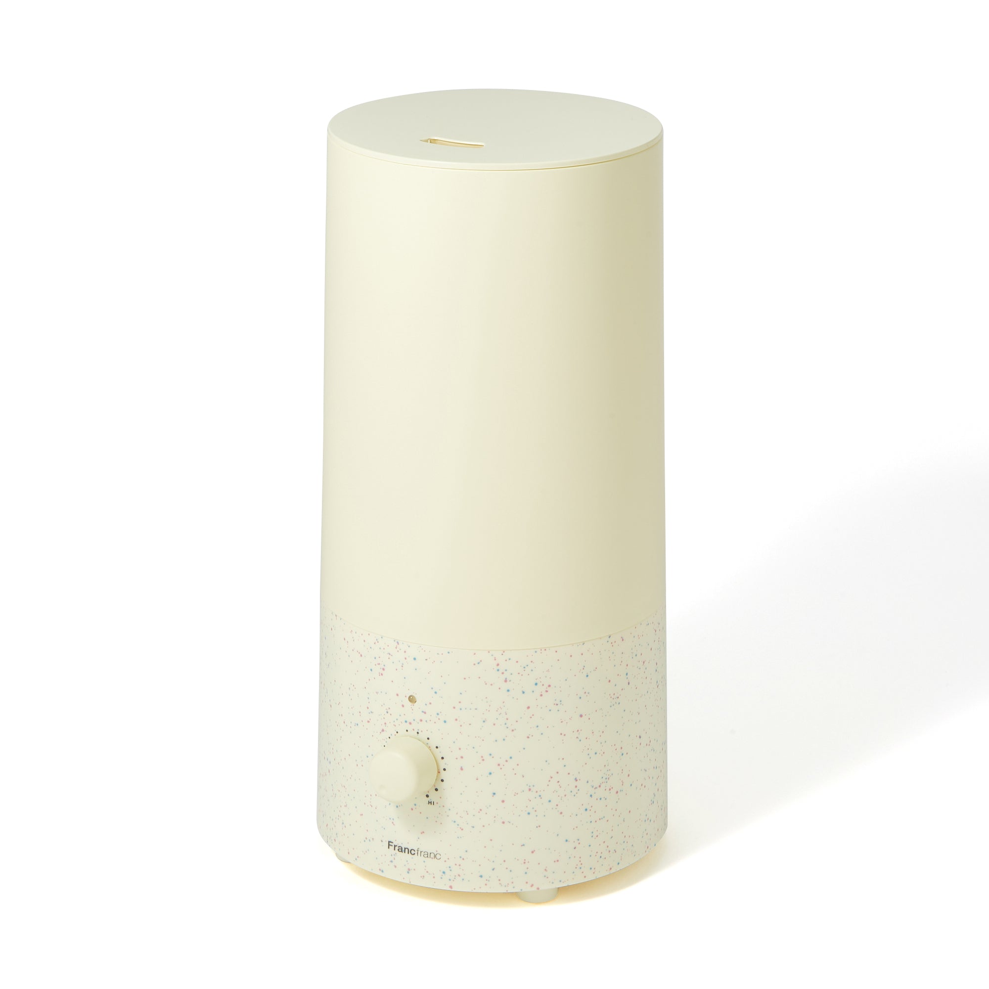 スモールスペースに置きやすいコンパクトな超音波式加湿器です。 機能はシンプル。簡単で使いやすいダイヤル式で噴霧量が簡単に調節できます。 最大8時間使用可能で、おやすみ中もしっかり加湿できます。 アロマウォーター、抗菌消臭ウォーター、アロマオイルが使用できるので、うるおいとお好きな香りを同時にお楽しみください。