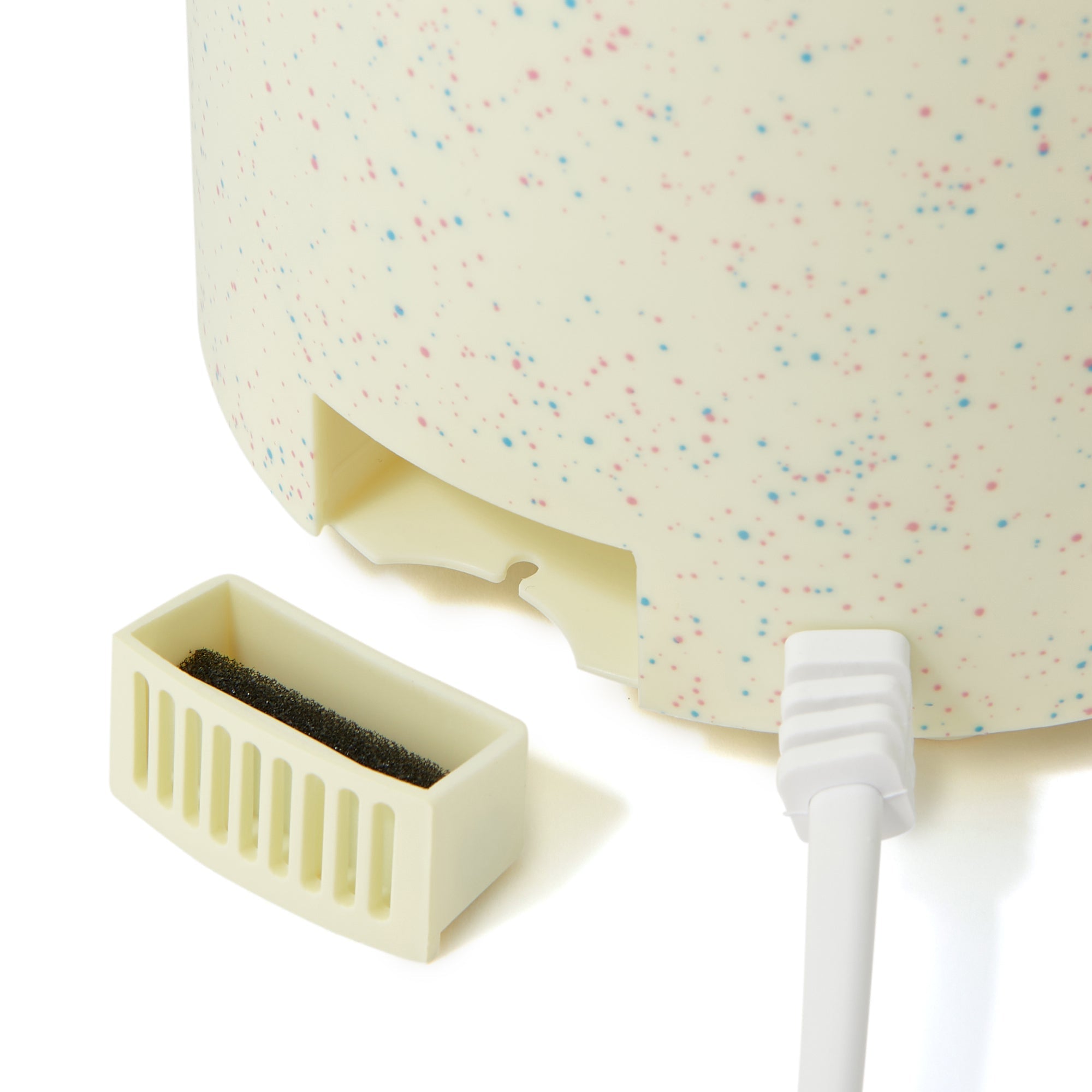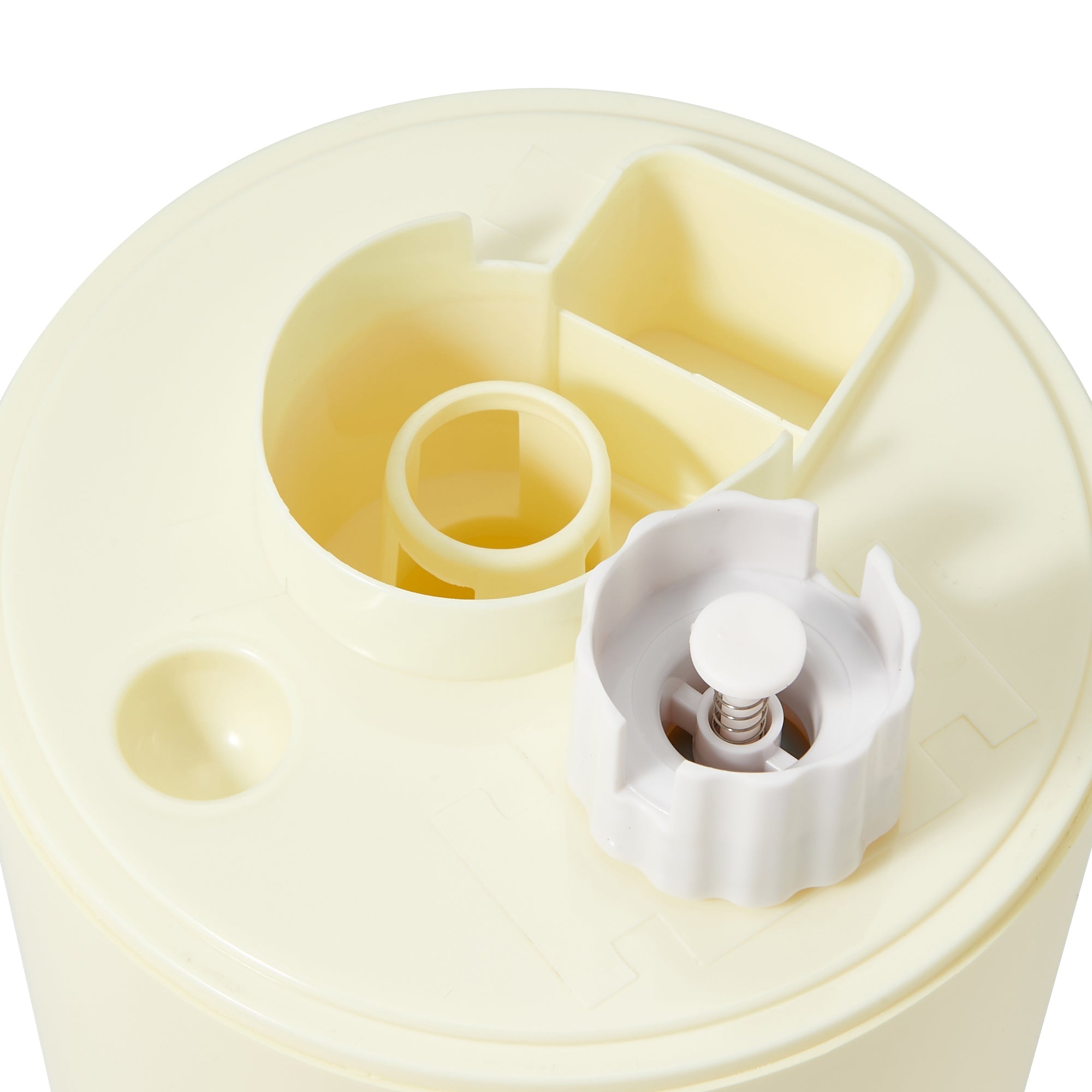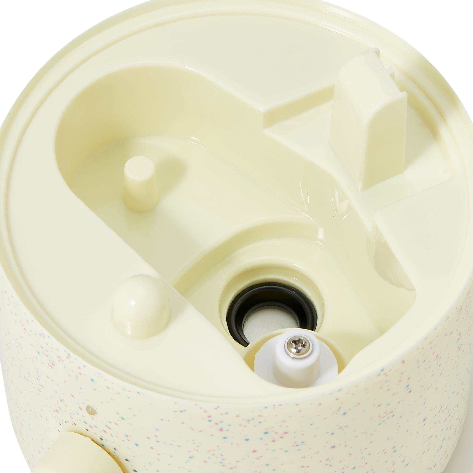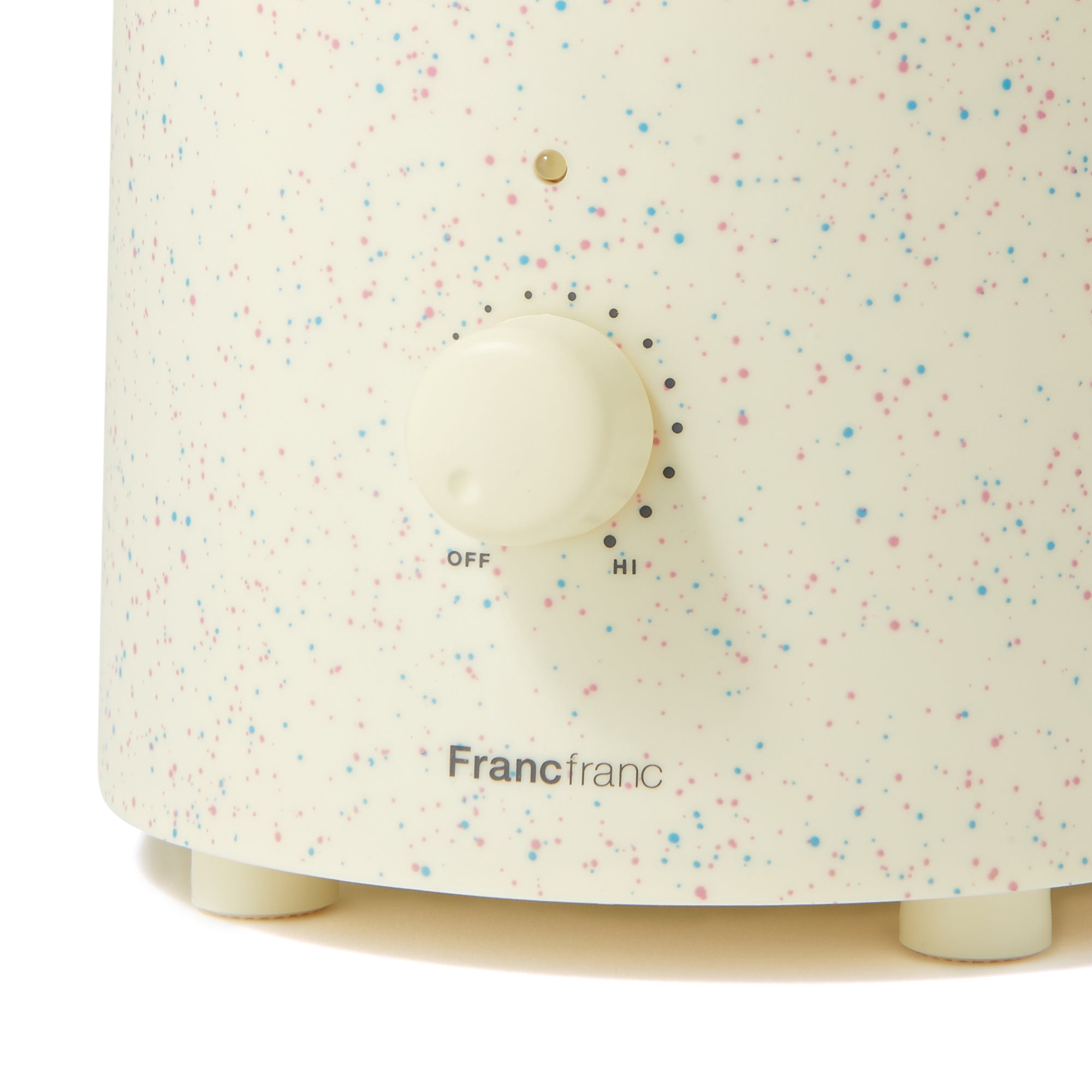スモールスペースに置きやすいコンパクトな超音波式加湿器です。 機能はシンプル。簡単で使いやすいダイヤル式で噴霧量が簡単に調節できます。 最大8時間使用可能で、おやすみ中もしっかり加湿できます。 アロマウォーター、抗菌消臭ウォーター、アロマオイルが使用できるので、うるおいとお好きな香りを同時にお楽しみください。
