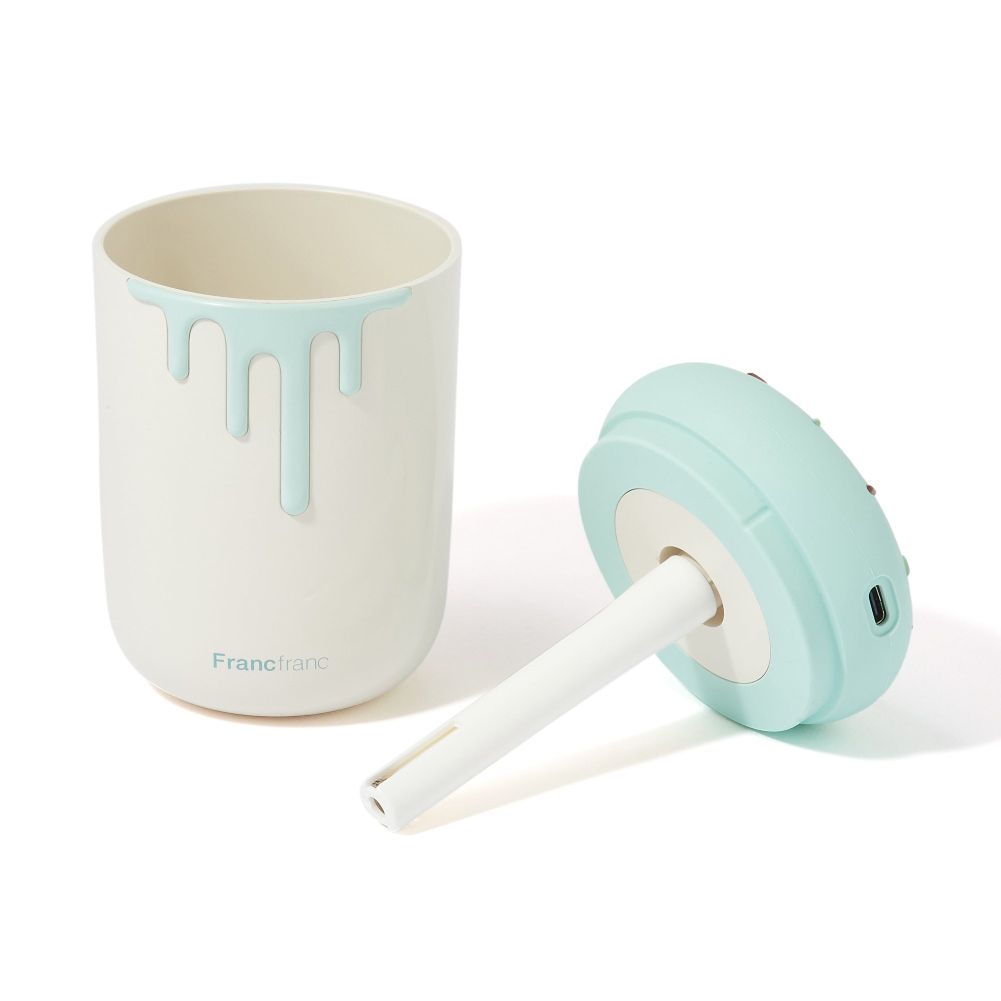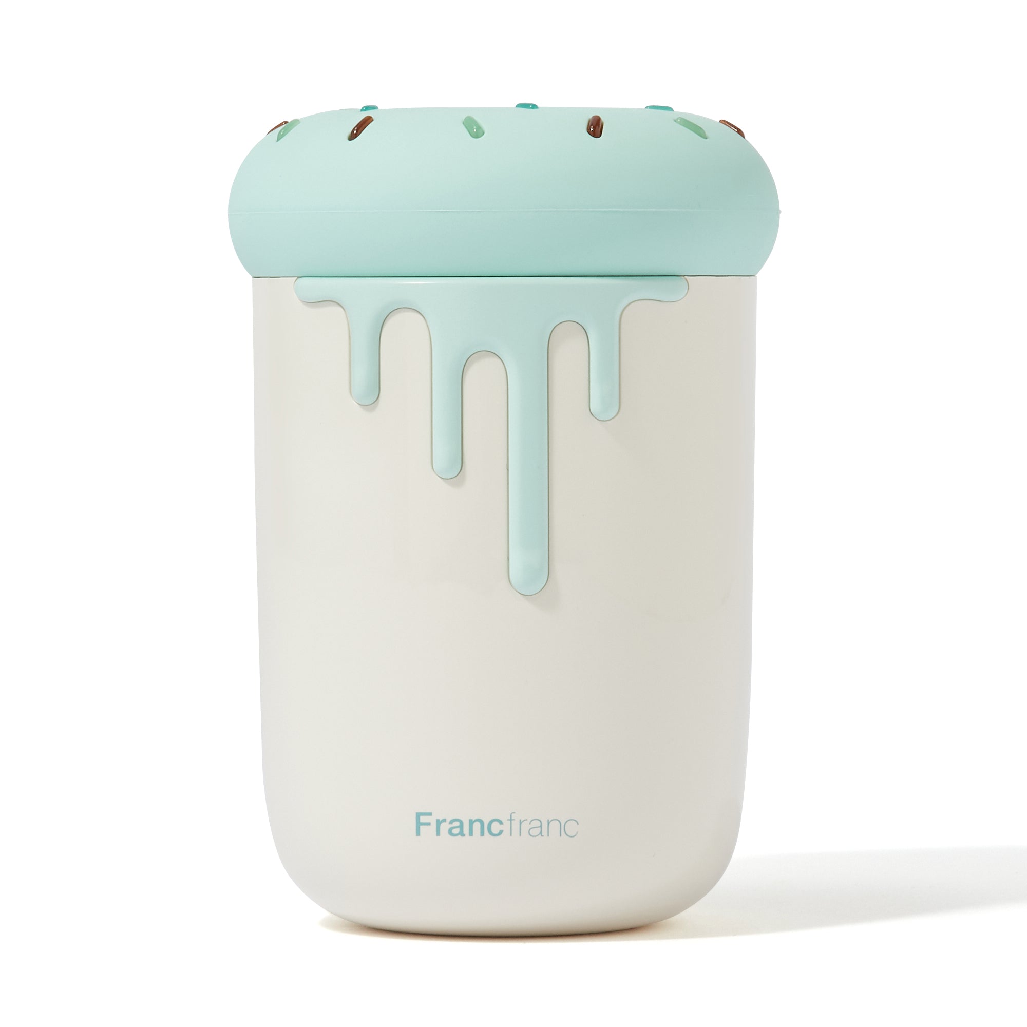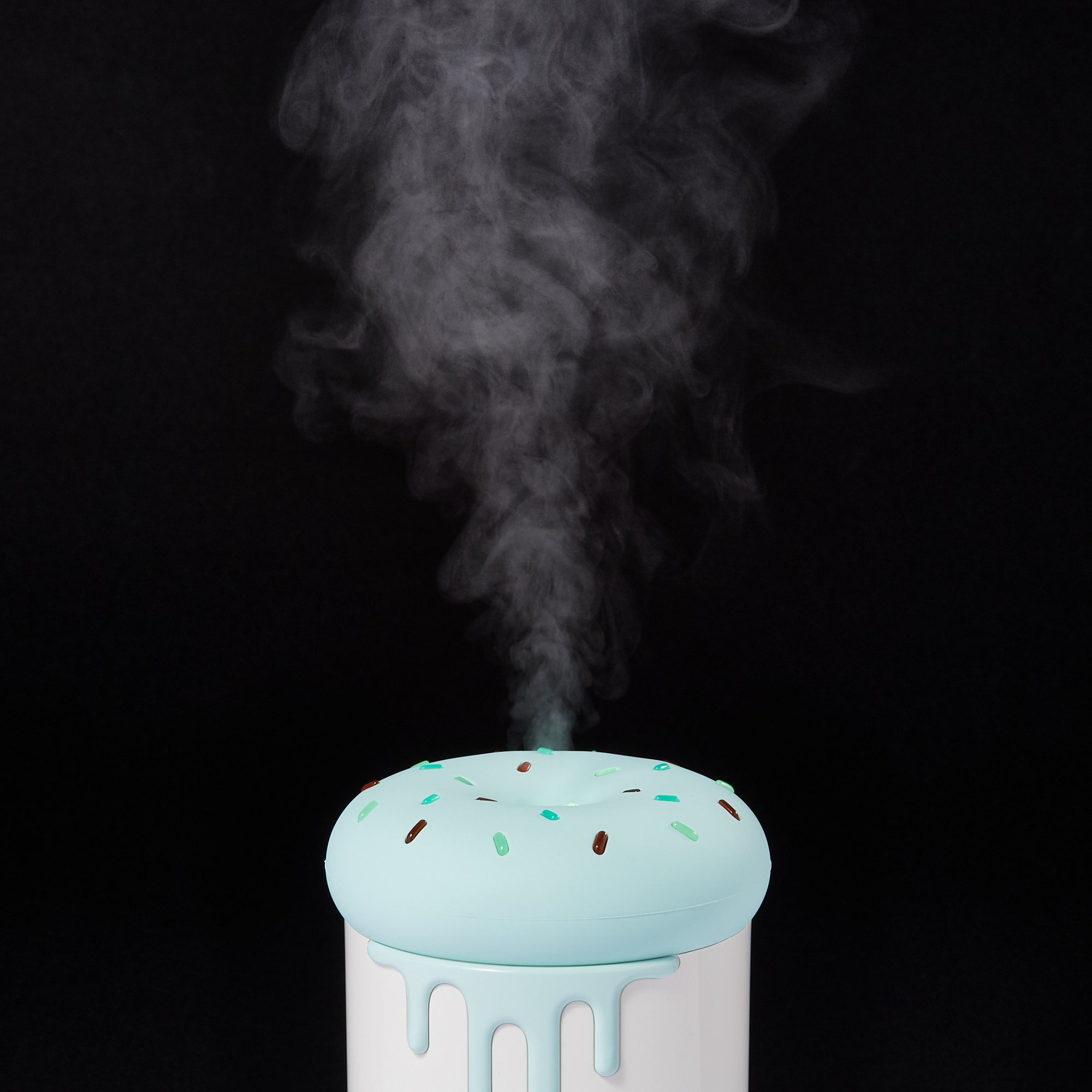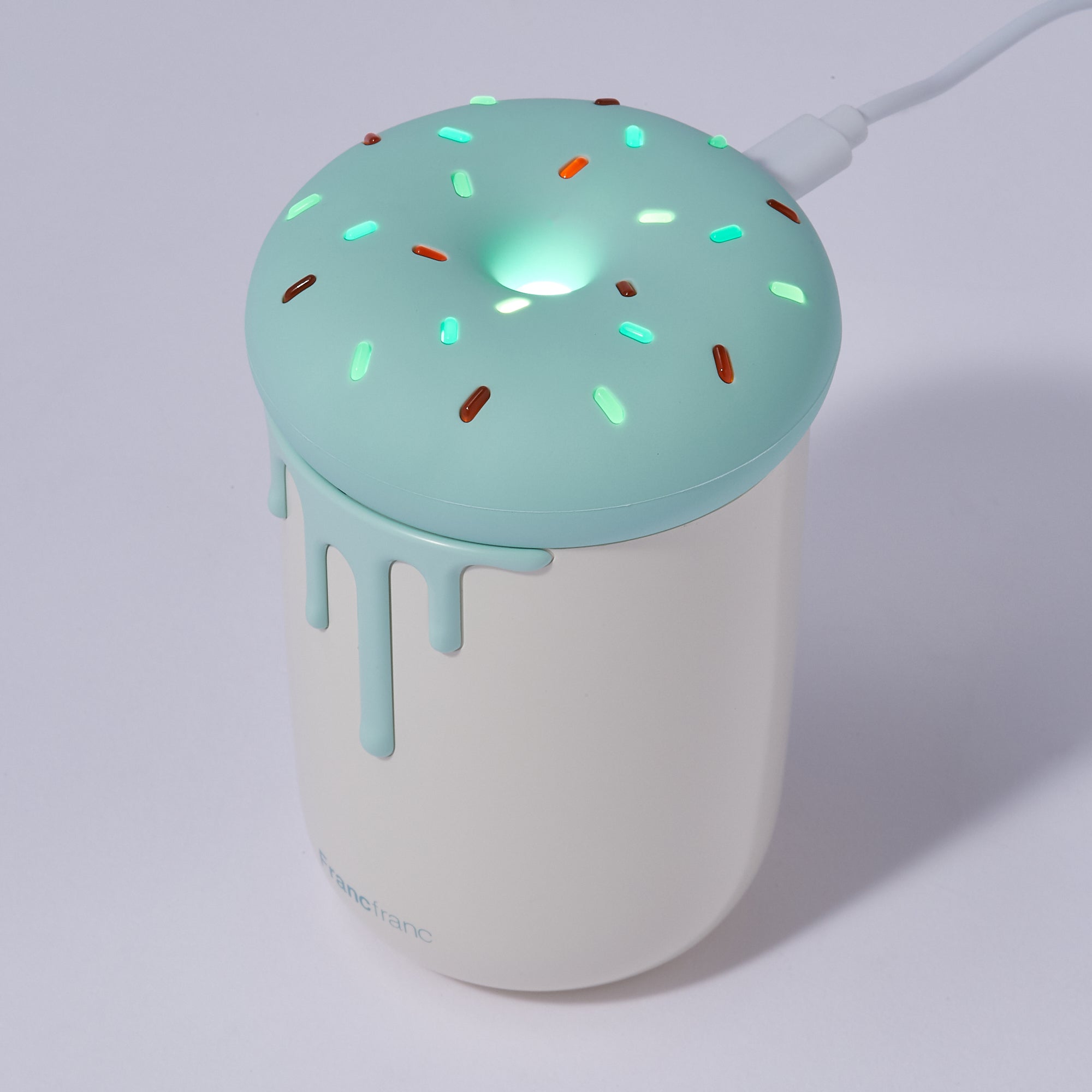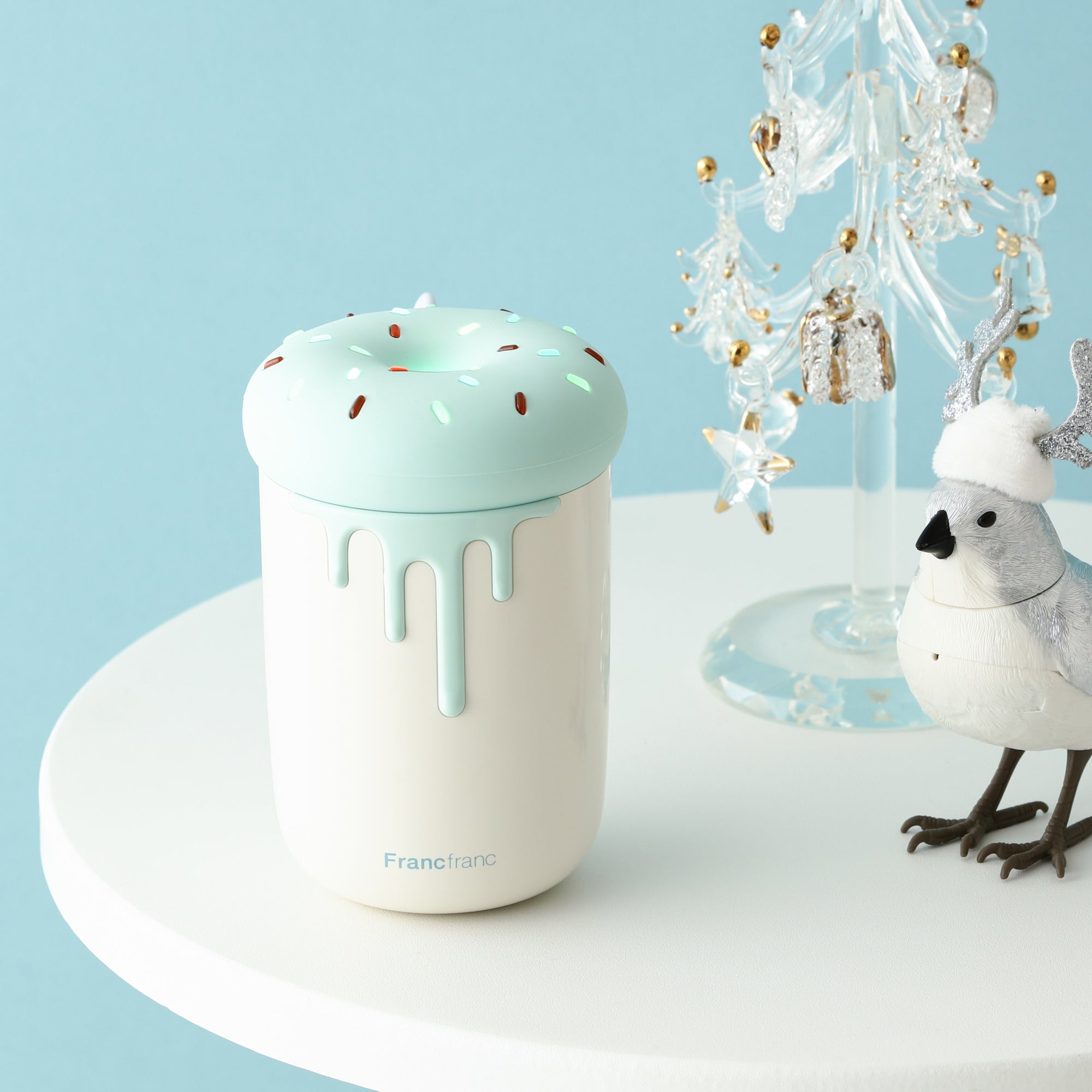 ドーナツモチーフの超音波式加湿器です。 シリコンでできているのでドーナツのような柔らかな感触。電源を入れるとチョコチップが点灯し加湿されます。 デスク周りで使用しやすいコンパクトサイズで、キュートなデザインなのでプレゼントにもおすすめです。 ※アロマオイル・アロマウォーターは故障の原因になるため使用できません。