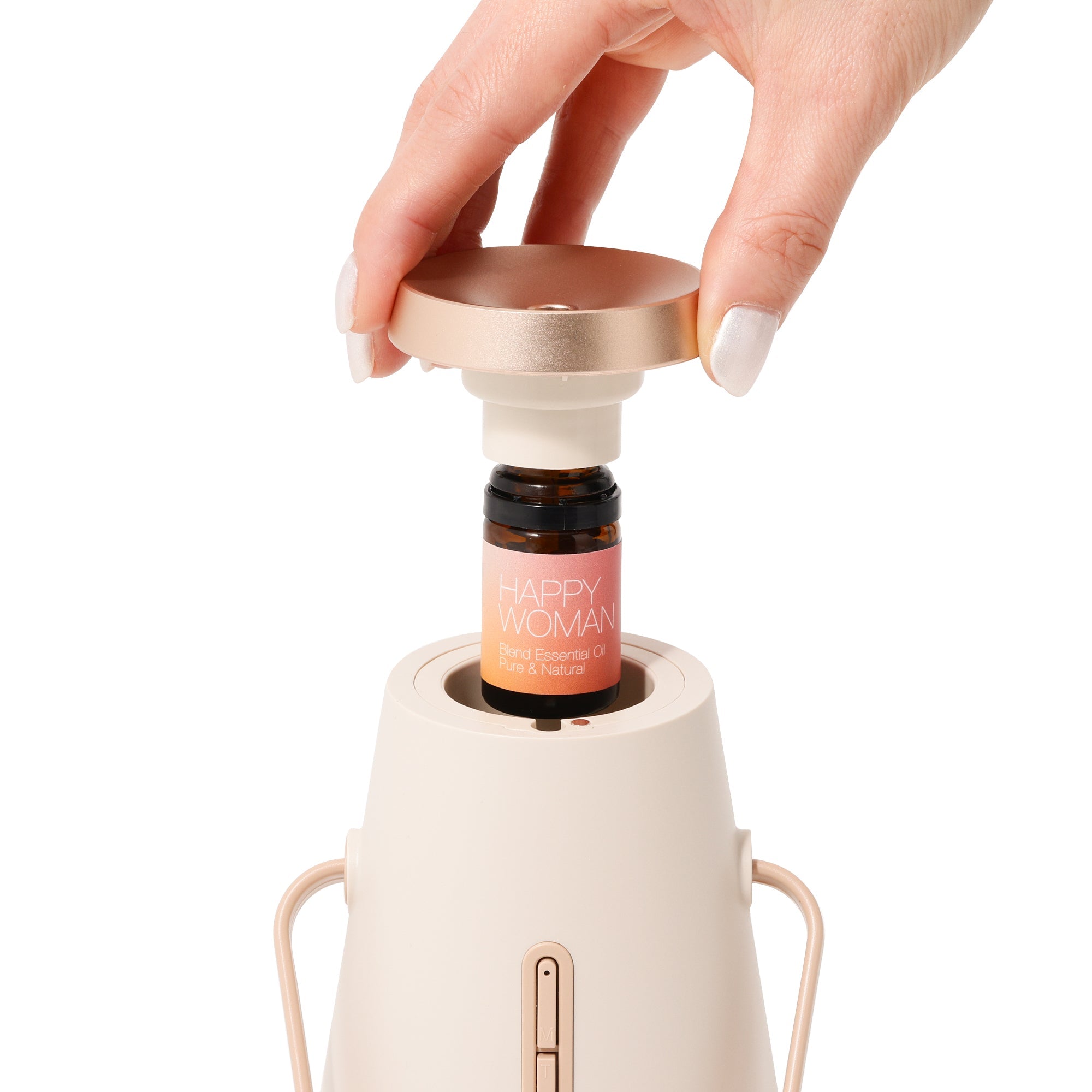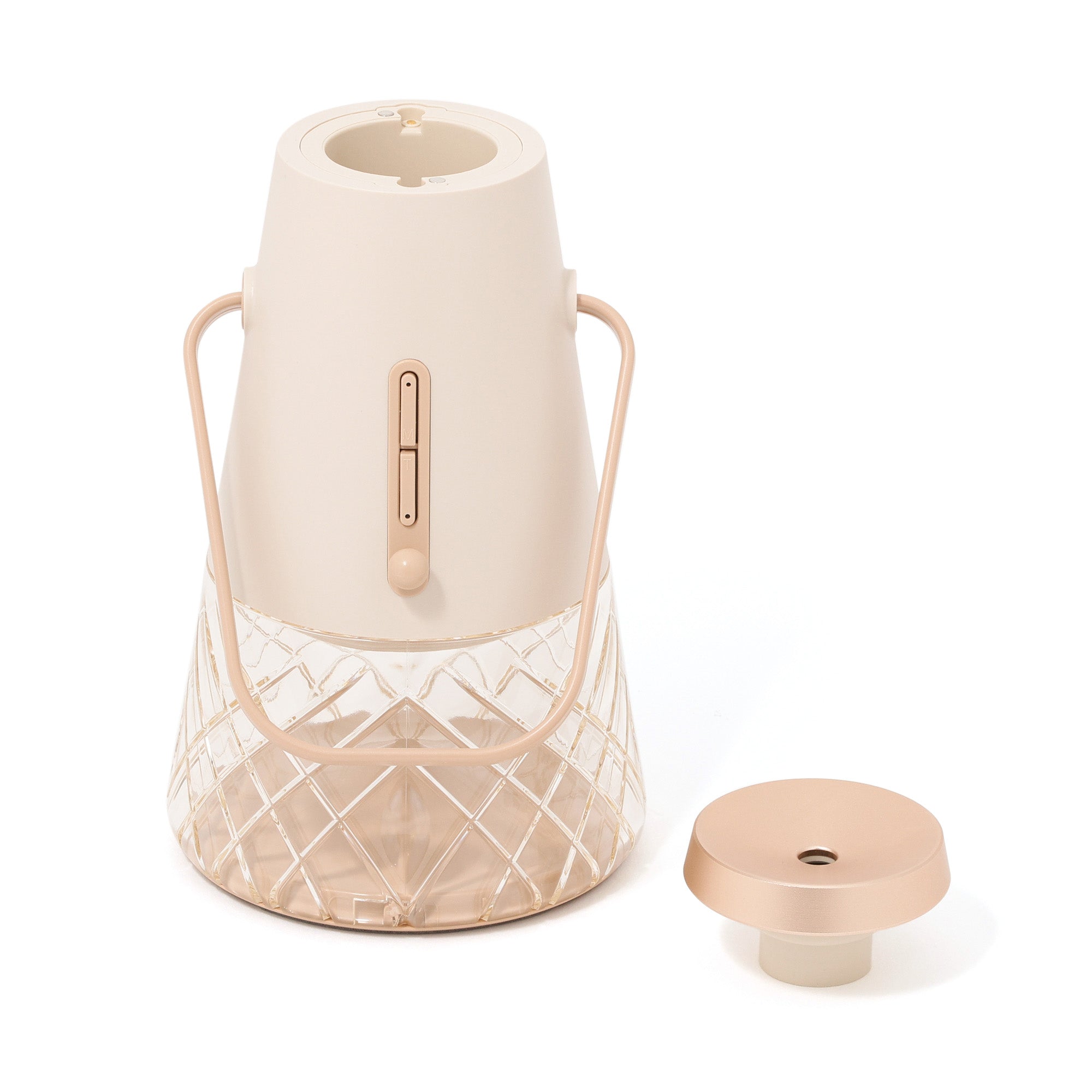 水のいらないネブライザー式アロマディフューザーです。フレッシュで上質な香りが強く広がり、精油そのものの香りを楽しめるのが特徴。充電式でどこにでも手軽に持ち運べるのも嬉しいポイントです。ランプを灯すと花びらのような幻想的なシルエットが浮かび上がります。ランプは黄色点灯、黄色点滅、白色点灯、白色点滅の4タイプ。2段階調光つきでお好みに合わせて調節できます。