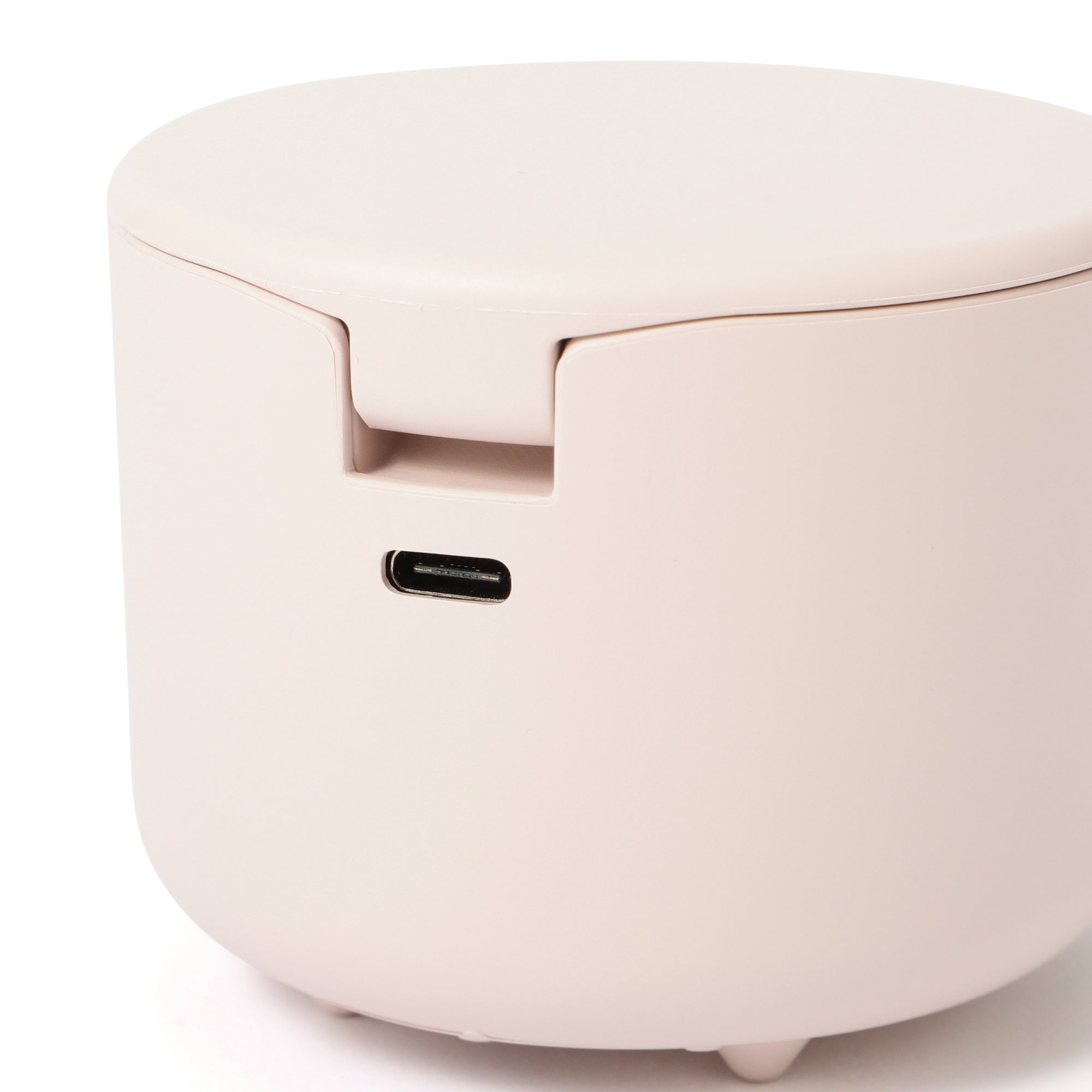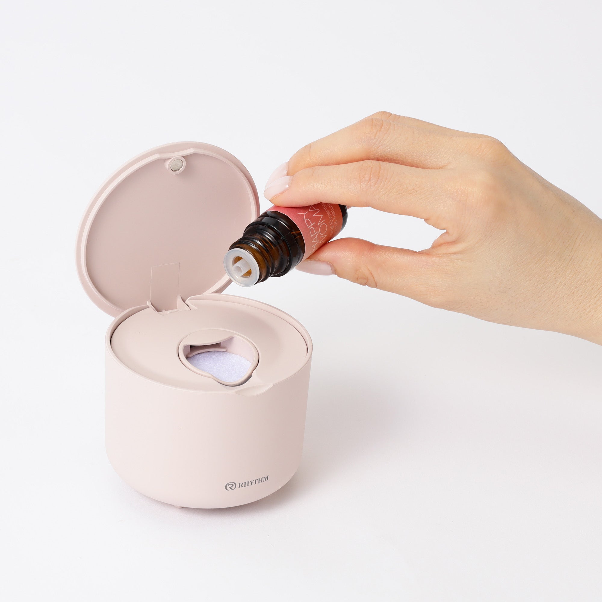 コンパクトサイズのファン式のアロマディフューザーです。火や水を使わないので、安全かつエッセンシャルオイル本来の香りを楽しめます。ふたを開くと電源ON、オイルを垂らすだけですぐに使えます。ファン方式で前方へ効率よく、好きな方向にだけ香りを届けるので、よりパーソナルに香りを楽しめます。香りを変えたいときはオイルパッドを取り替えるだけなので、新しい香りをすぐ楽しめます。コロンとしたデザインはインテリアになじみつつ、香りを楽しむ道具としてのアクセントにも。コンパクトな手のひらサイズで持ち運びも便利。ベッドサイド、リビング、デスクワークのおともに最適です。自動OFF機能付きなのも嬉しいポイントです。