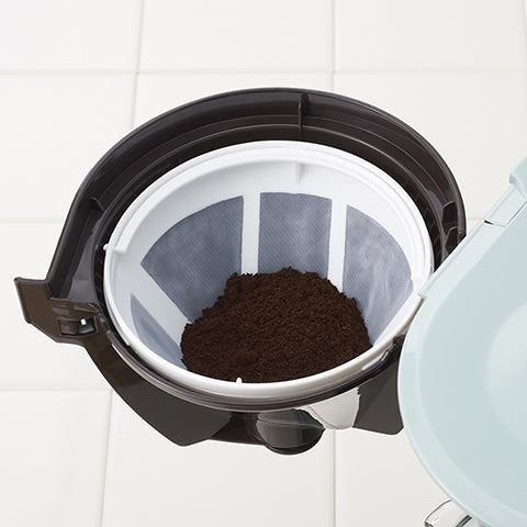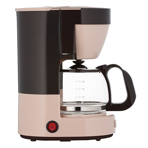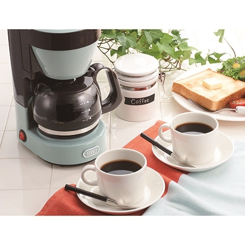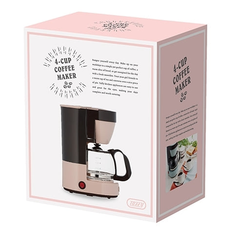 おうちで本格的なドリップコーヒーが楽しめるコーヒーメーカーです。レトロなデザインとおしゃれなペールカラーで、キッチンを彩り豊かに、もっとおいしく。たっぷり4杯分をドリップカップ数に応じたコーヒー粉をフィルターにセットし、タンクに水を入れてスイッチを押すだけ。一度に最大4杯分のコーヒーが簡単に淹れられます。丸洗いOKのメッシュフィルターだから紙フィルターは不要です。美味しさ逃さずしっかりキープコーヒー抽出後は保温モードに切り替わります。保温プレートが付属しているため美味しい温度をしっかりキープ。抽出後40分で自動的に電源が切れる安心設計です。見せたくなるようなデザイン毎日使うアイテムだからルックスにもこだわりたい。クラシックなデザインとキュートなカラーリングは、キッチンやテーブルに並んでいるだけでうきうきするような可愛さです。手ごろなお値段でギフトにもぴったり。