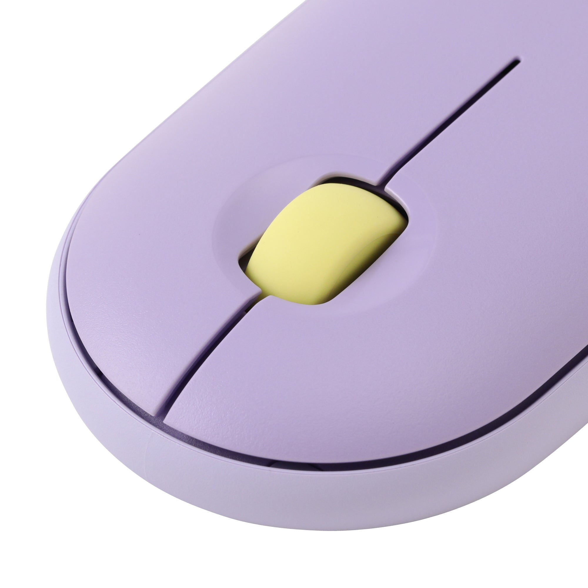 モダン、スリム、静かなワイヤレス&Bluetooth®マウスです。静かな操作音クリック感覚はそのままに、従来と比べてクリック音を90%も削減しました。会議室や図書館といった、わずかな音が響く場所でも、静かに作業できます。また、マウスとしては世界で初めて国際的なノイズ低減技術の認定Quiet Markを取得しており、ホイールでスクロールする音も気になりません。小石(Pebble)のように丸っこいデザインマウスの上に手を置くと自然となじむ26.5mmの薄い形状。玉砂利のように滑らかで、手にフィットします。持ち運びに便利、ワイヤレス接続ポケットの中に入れても気になりません。
