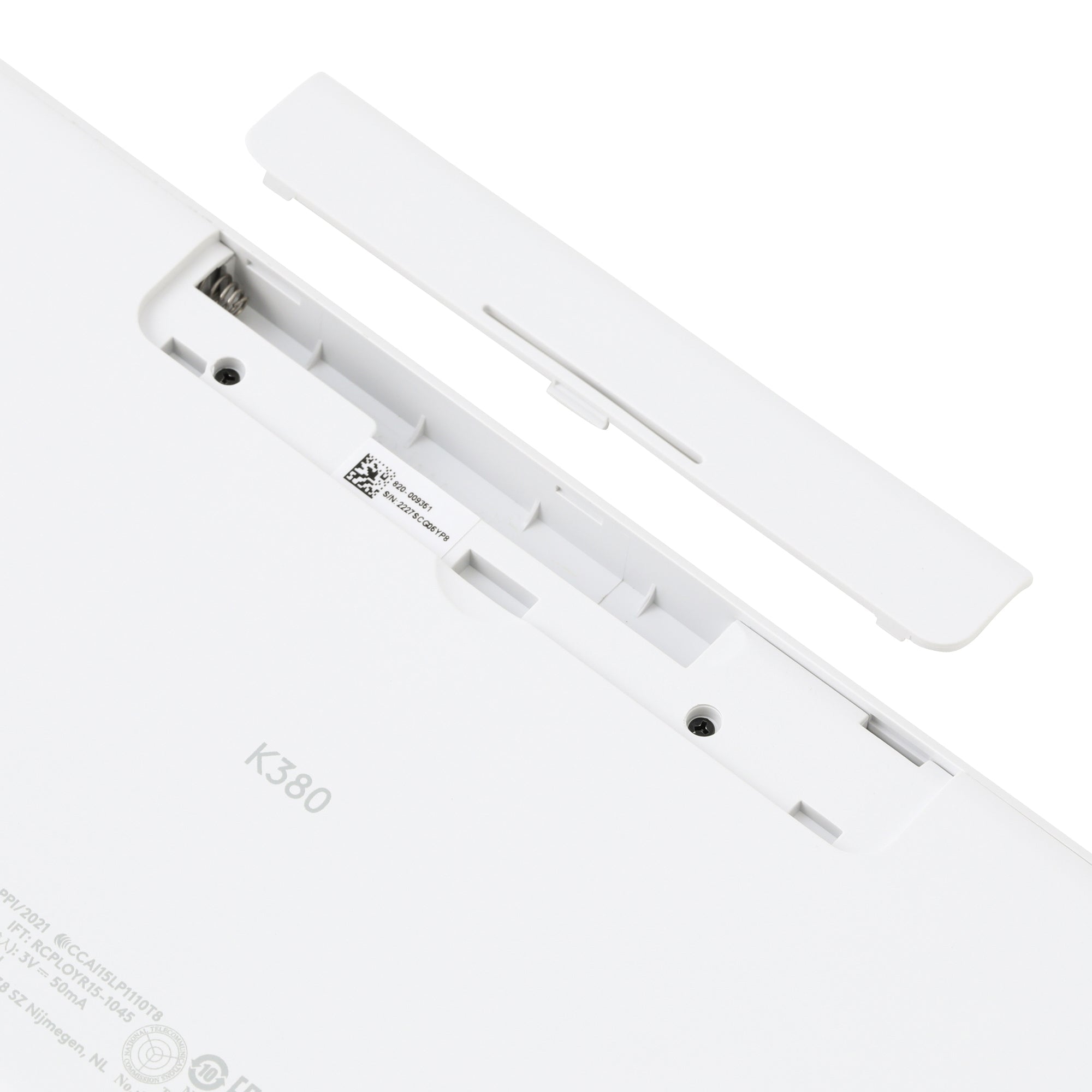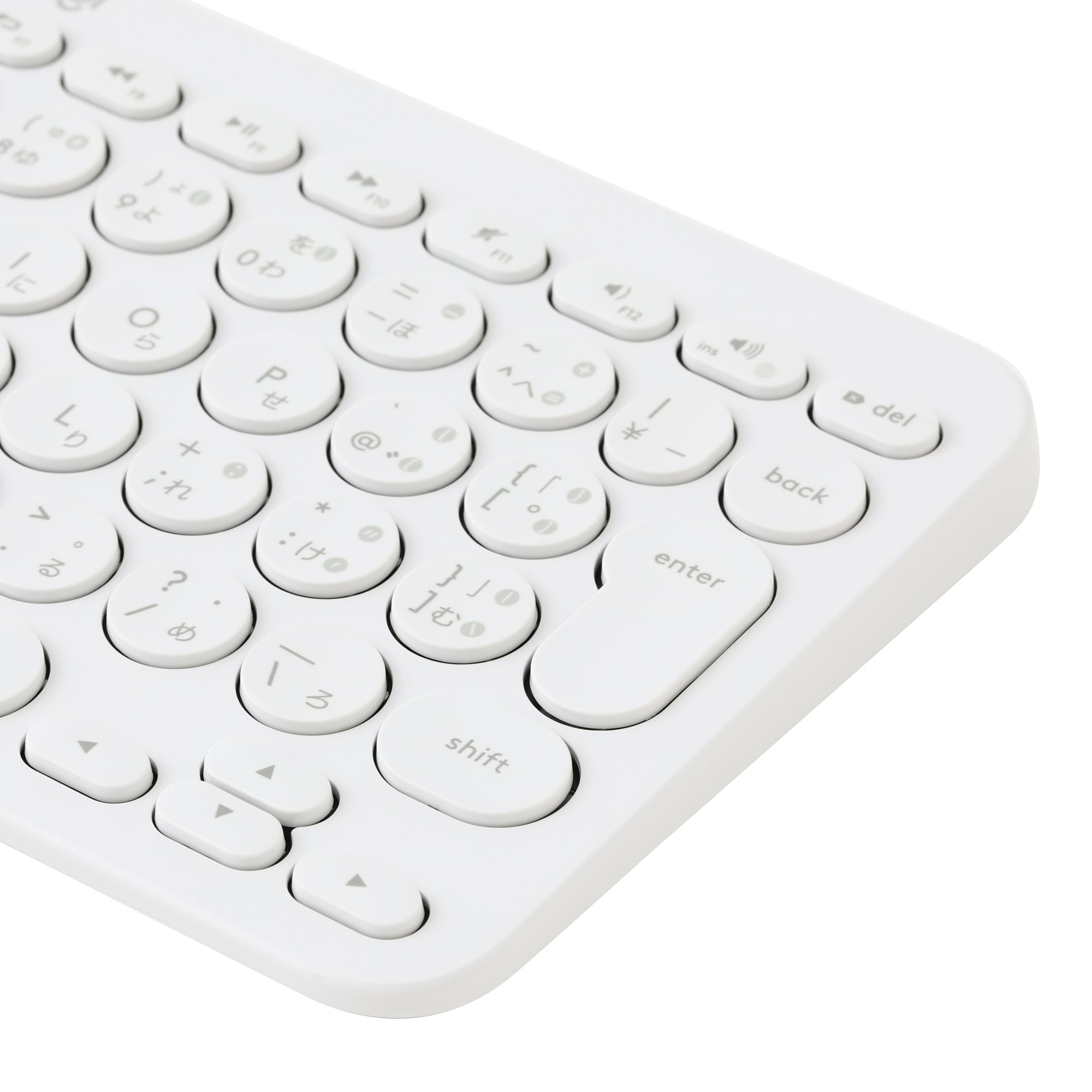 モダン、スリムで軽量なK380マルチデバイス キーボードです。モバイルでどこへでも持っていけて、自分だけのスペースにフィットします。Bluetoothが装備されているため、自宅、移動中、またはお気に入りのカフェでマルチタスクをこなせます。ノートパソコン、スマートフォンまたはタブレットでタイピングも可能。場所を問わず自分だけのスペースを作り出すことができます。様々なデバイスでタイピングでき、様々なOSに対応。K380マルチデバイスは、外付けキーボードをサポートするすべてのBluetoothワイヤレスデバイスに接続できるため、Windows、Mac、Chrome OS、Android、iOS、およびApple TVでもシームレスに作業ができます。キーを自動的にマッピングし、ショートカットを記憶し、お好みのプラットフォーム用のなじみのあるレイアウトを提供します。様々なオペレーティングシステムを搭載した最大3台のデバイスに接続可能。タップしてデバイス間を切り替え。タイピング、切り替え、タイピングを継続。コンパクトなレイアウトにすべてのキーを配置。設置面積が非常に小さく、マウスを自分の近くに配置できるため、腕を伸ばす必要がなく、より快適な姿勢を保つことが可能。くぼんだ薄型のシザーキーは指先の形状に合い、スムーズで静かな、なじみのあるノートパソコンのようなタイピング体験を提供します。また、バッグにも簡単に収まります。